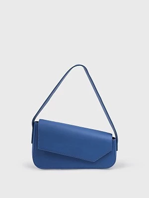 Асимметричная сумка глубокого синего оттенка — находка для любительниц нестандартных решений. Стильный аксессуар с удлиненной широкой ручкой изготовлен из мягкой матовой экокожи. Фигурный клапан с магнитной застежкой завершает образ и добавляет графичности вытянутой форме. Внутреннее отделение с подкладкой из плотного текстиля и карманом на молнии легко вместит кошелек, смартфон, очки и небольшой флакон любимых духов. Размер: 26*6*14,5 см