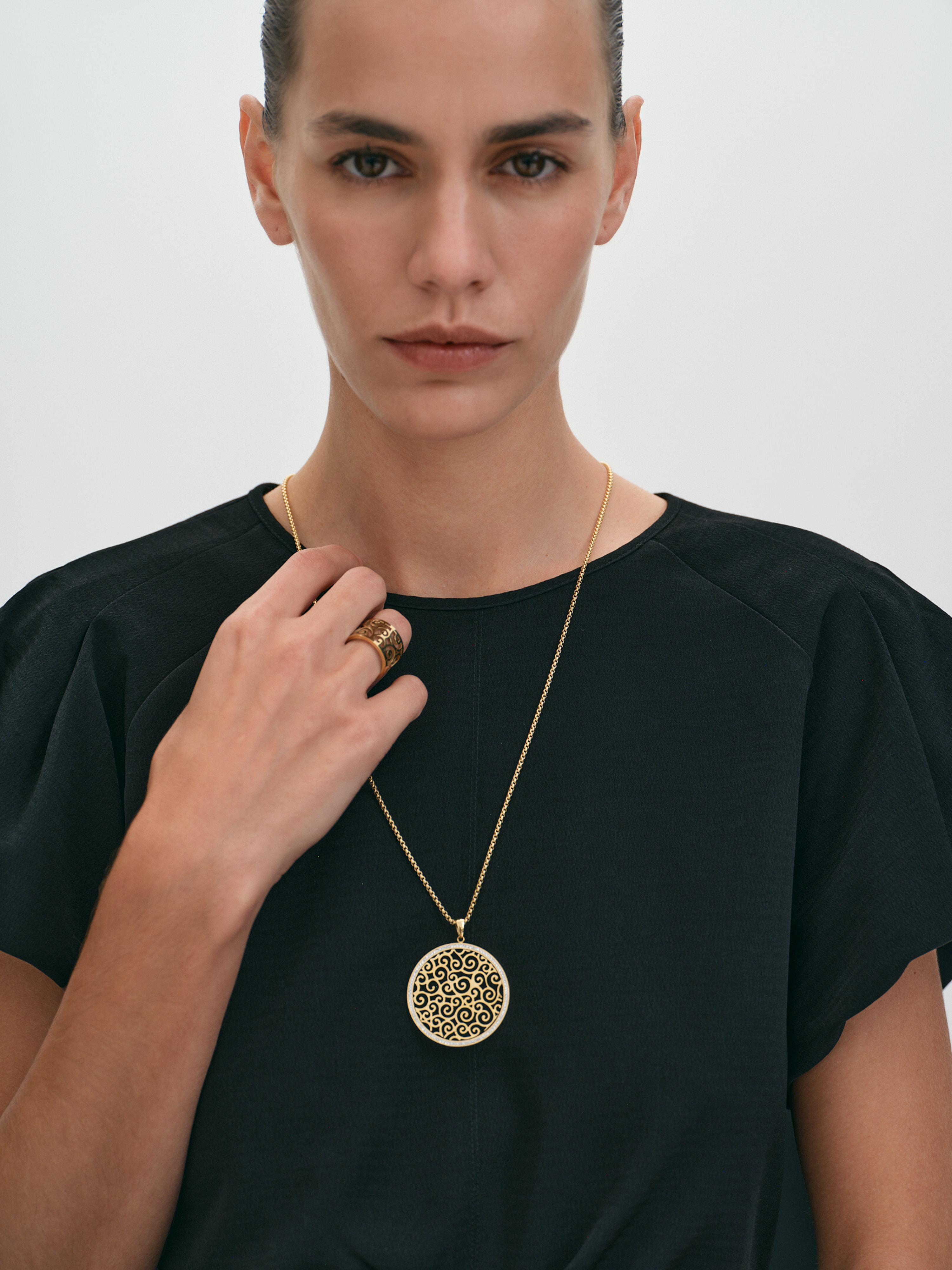 Кулон на на тонкой цепочке - одно из самых любимых украшений прекрасной половины человечества. Золотистая цепочка с подвеской из стали с ионным покрытием устойчива к воде и гипоаллергенна. Украшение без застежки, механизм регулировки длины позаимствован у колье-галстука и дает возможность дополнительной стилизации с размещением длинных концов впереди. Ионное покрытие - это один из самых современных способов обработки поверхности, оно делает золотое напыление более износостойким, прочным и ярким. Инкрустация кристаллами Пресиоса придает эффектному украшению привлекательное мерцание. Presiosa - прочные и долговечные кристаллы, произведенные из граненого стекла. Такое стекло изготавливается из особого расплавленного песка, найденного в Хрустальной долине Богемии. Ажурный сверкающий круглый кулон станет ярким акцентом и вечернего, и повседневного образа, а также дополнит нарядный новогодний комплект.
