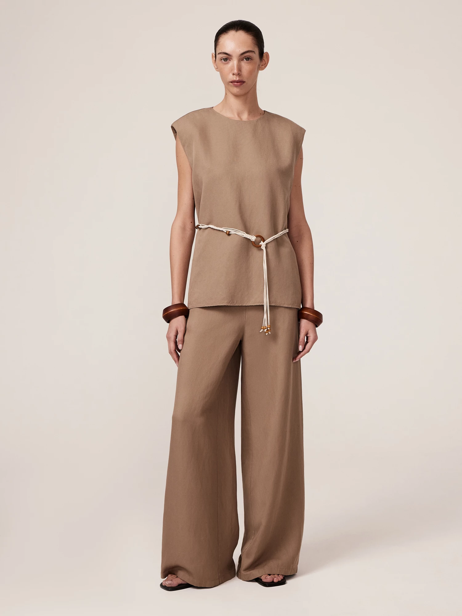Созданная из турецкой ткани на основе льна и тенселя, блузка сочетает в себе мягкость, шелковистость и натуральную текстуру, создает ощущение легкости и комфорта. Лиоцелл (тенсель), полученный из эвкалиптовой целлюлозы, придает модели воздухопроницаемость и шелковистый блеск, а лен добавляет прочность и способность сохранять прохладу, делая модель идеальной для теплого времени года. Блузка хорошо впишется в гардероб благодаря стилю smart casual с элементами рустикального шика. Она одинаково органично смотрится в городской среде и на загородном отдыхе, сочетая в себе практичность и эко-эстетику. Круглый вырез горловины подчёркивает лаконичность дизайна, создавая аккуратный и завершённый силуэт, в то время как структурированная линия плеча с лёгкими подплечниками дисциплинирует образ, деликатно корректируя пропорции без излишнего объёма. Неповторимое очарование блузе придают детали: боковые разрезы, которые обеспечивают свободу движений и визуально вытягивают силуэт, и пояс в технике "макраме" — он не просто позволяет регулировать степень прилегания, подчёркивая талию или бёдра по вашему желанию, но и своей техникой плетения подчеркивает рустикальный стиль, контрастируя с гладкостью ткани. Песочный беж с золотистым подтоном добавляет образу теплоту и универсальность, легко сочетаясь как с нейтральной, в виде брюк TR0591 или шорт SH0046, так и с насыщенной палитрой Вашего гардероба.