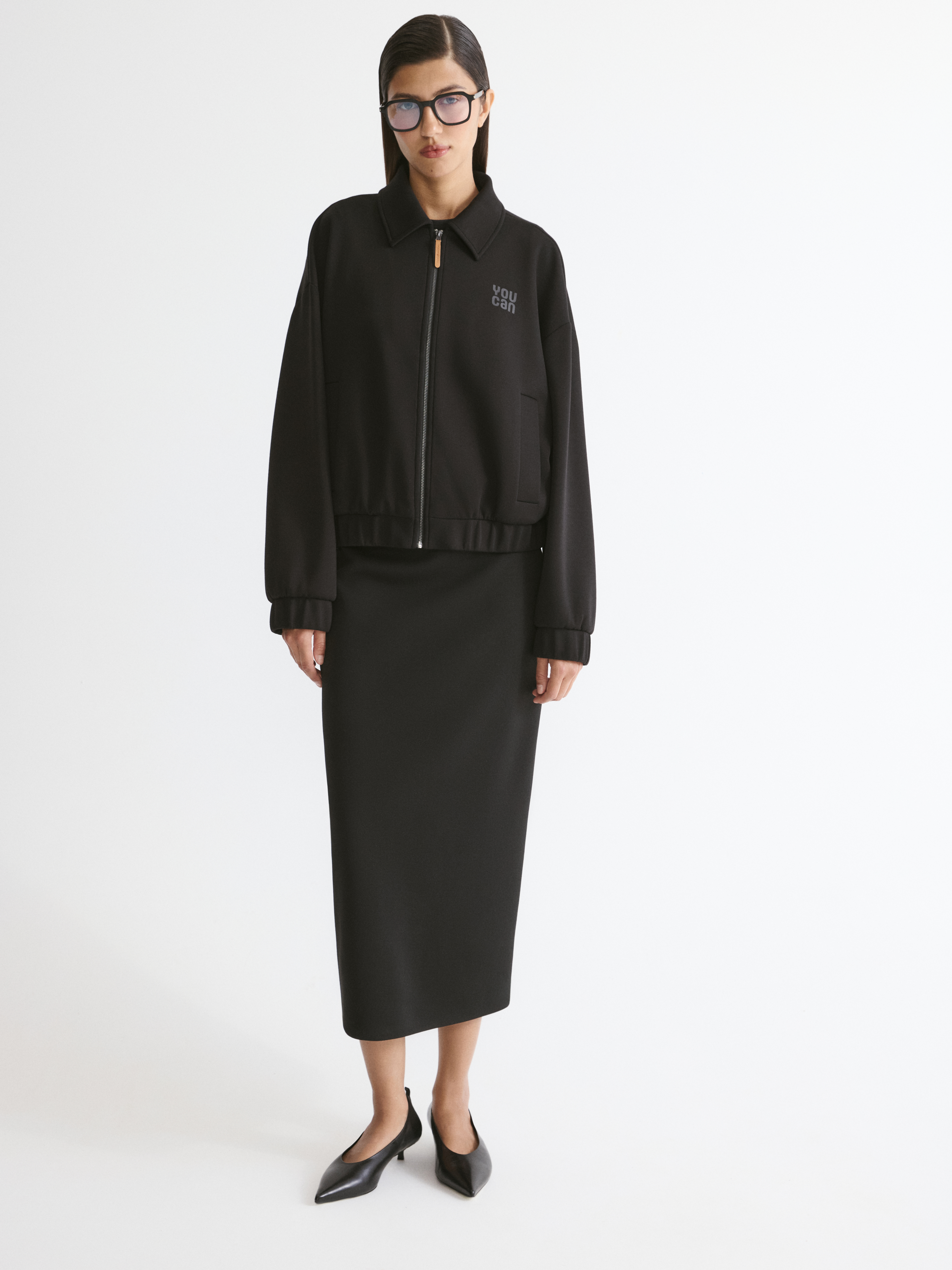 Бомбер будет прекрасным дополнением к юбкам SK0454K5 и SK0509K5 и брюкам PT0606K из коллекции.