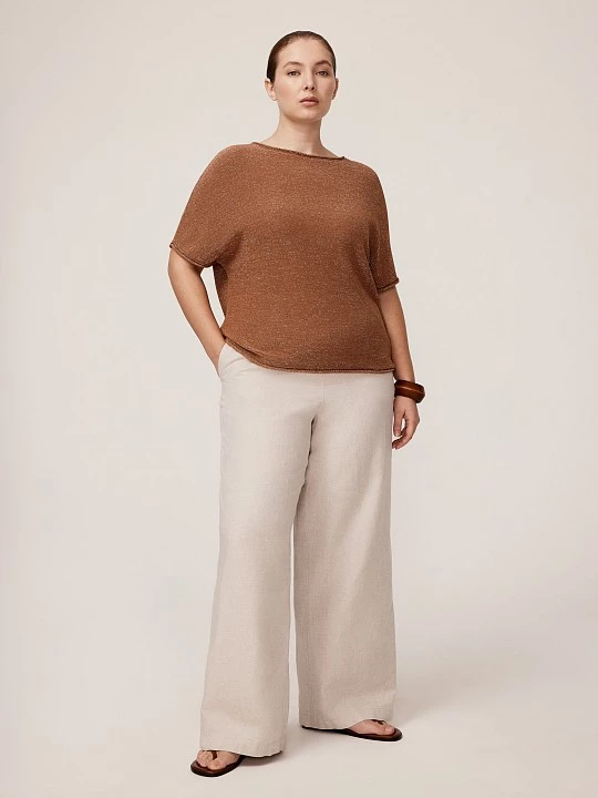 Брюки из натуральных льна и хлопка совмещают в себе стиль эко-минимализма с элементами тихой роскоши. Прямой крой брюк сочетает в себе практичность и элегантность, даря полную свободу движений и делая силуэт легким. Притачной пояс с деликатной резинкой обеспечивает идеальное прилегание, исключая любой дискомфорт, а интегрированные карманы сохраняют чистоту линий, делая брюки универсальными — от офиса до вечернего выхода. Благодаря идеальному сочетанию натуральных материалов, брюки обеспечивают непревзойдённое ощущение лёгкости даже в самый жаркий день — лён гарантирует воздушную прохладу и благородную структуру ткани, а хлопок добавляет мягкость и совершенную воздухопроницаемость, создавая микроклимат идеального комфорта для Вашей кожи. Терморегуляционные свойства такого натурального полотна турецкого производства поддерживают комфортную температуру тела, охлаждая или согревая в зависимости от условий. Теплый цвет "жемчуг" - это цвет тихой роскоши, особенно хорошо это выражается в сочетании брюк с блузой BL1586, ведь монохромные ансамбли, состоящие из одного цвета, выглядят невероятно согласованно. Молочно-бежевый оттенок с перламутровым подтоном создаёт эффект внутреннего свечения, мягко подчеркивая естественную красоту. "Жемчуг" — идеальная основа для создания луков в эстетике quiet luxury, где каждая деталь говорит о внимании к качеству и гармонии. Такие брюки одинаково уместны и на деловой встрече, и на вечернем мероприятии, особенно в сочетании с блузой-кимоно BL1586.