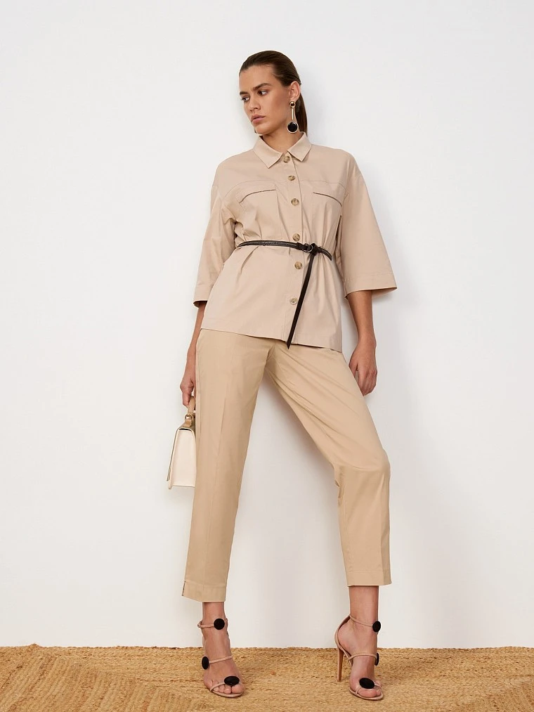 Бренд: ElisЦвет: БежевыйСостав: Хлопок - 65%, Полиэстер - 33%, Спандекс - 2%Артикул: TR0271Размер на модели: 44Коллекция: ENJOY EVERY MOMENT