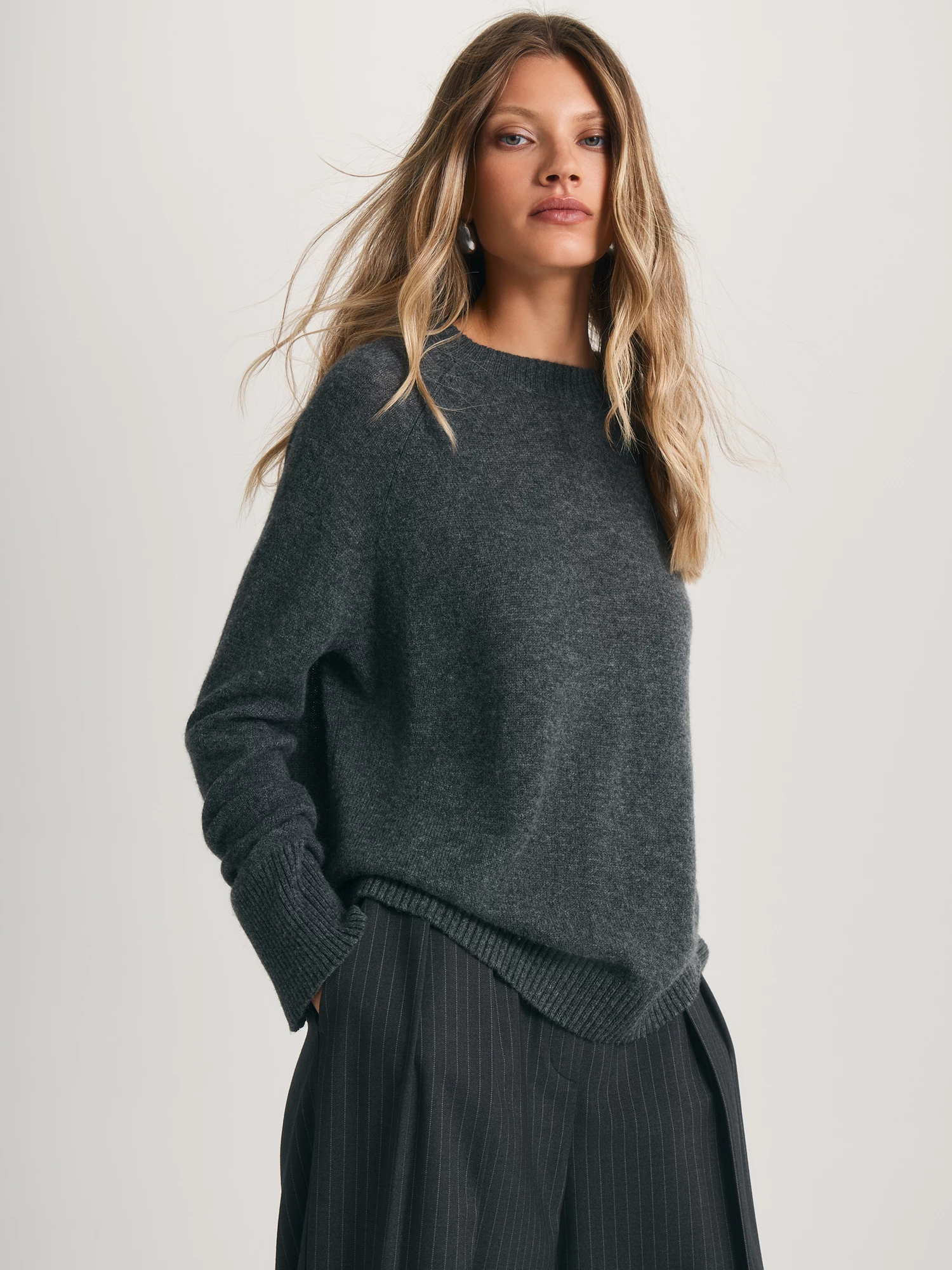 Oversize универсален, подходит и для офисных образов, и для повседневных. За счет своей длины модель хорошо сочетается с брюками-палаццо TR0576 и расклешенными юбками.