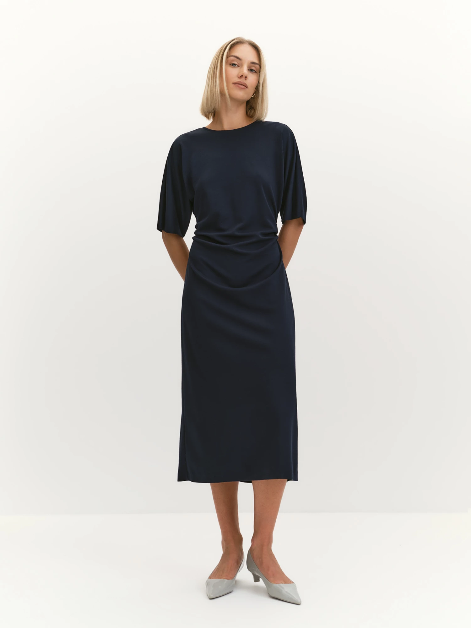 Практичная модель со съемным поясом и английским воротником выполнена без застежки, что создает дополнительные возможности для стилизации. Рукав особенной формы, реглан, способствует занижению проймы, что позволяет сочетать пальто с объемными моделями легкого ассортимента. Пальто дополнено комфортными прорезными карманами с широкой листочкой и шлевками из основной ткани. Модель выполнена из качественного меланжевого шерстяного полотна на дышащей вискозной подкладке. Меланжевые ткани всегда имеют базовый цвет, к которому подбираются нити оттенков, близких к основному. Выбирая модели из таких тканей, Вы поддерживаете тренд экологической устойчивости, ведь при их производстве используется меньше воды и энергии, чем при традиционных методах окрашивания. Серый меланж хорошо сочетается с классическими оттенками. Наши фавориты сочетаний с пальто в капсуле NOT SO CLASSIC 1 - вязаный джемпер из 100% хлопка JM0189V и джинсы из сырого денима DJ0168, а также синее платье с цельнокроеным рукавом DR0835K. Пальто-халат является базовым и уместно в деловом, кэжуал и спортивном стиле.