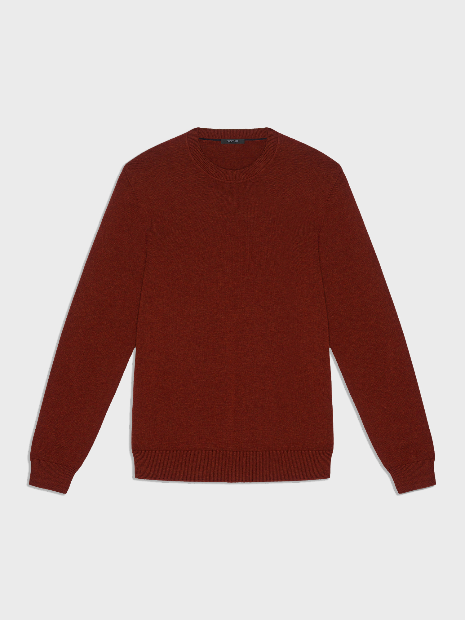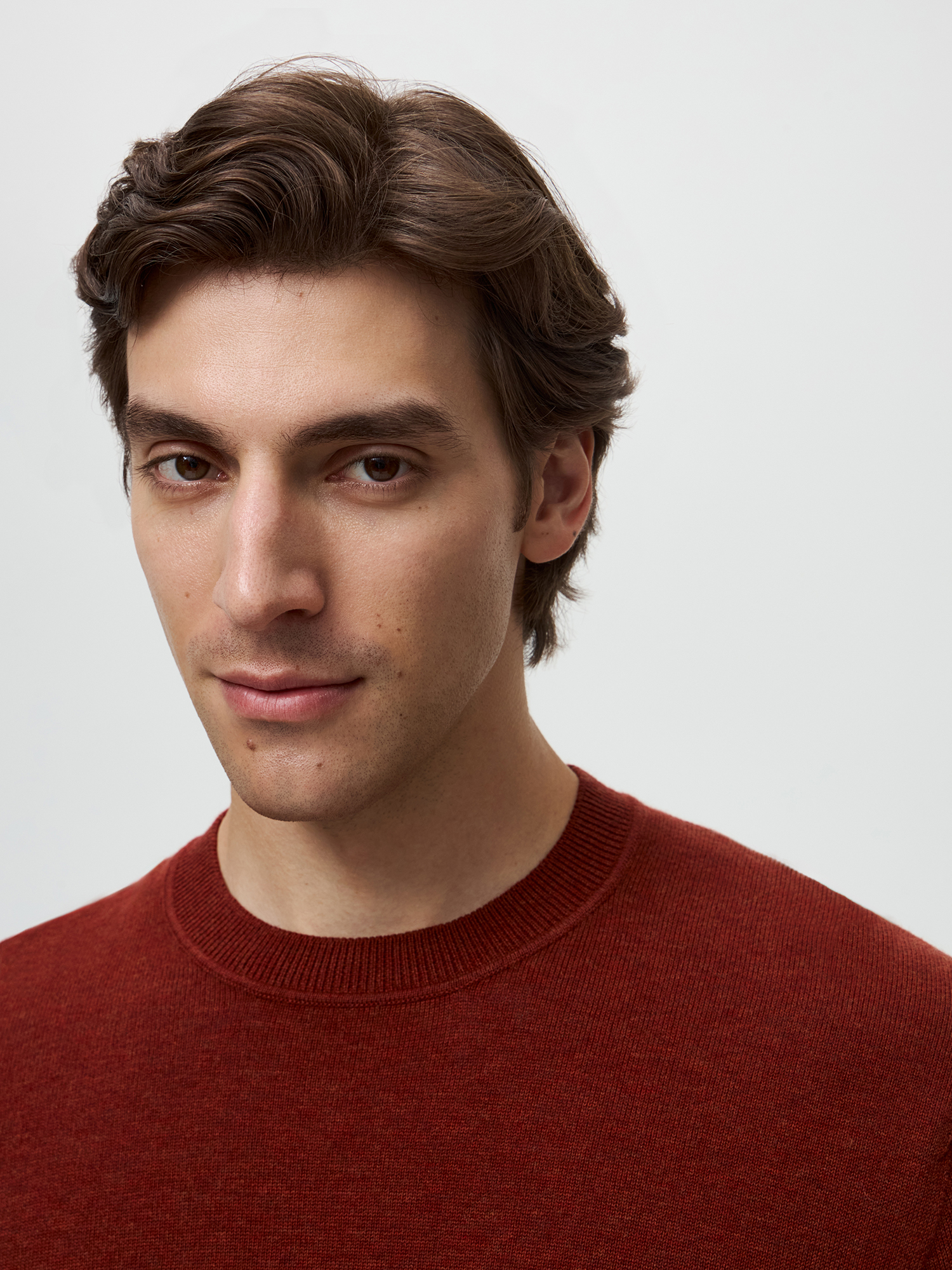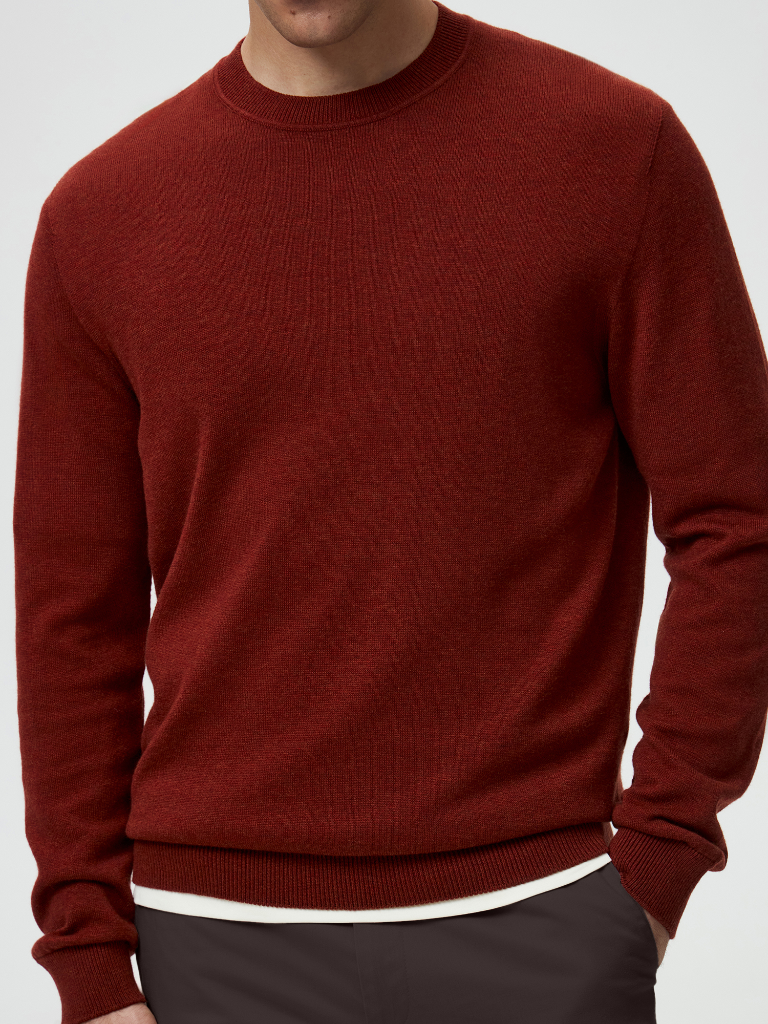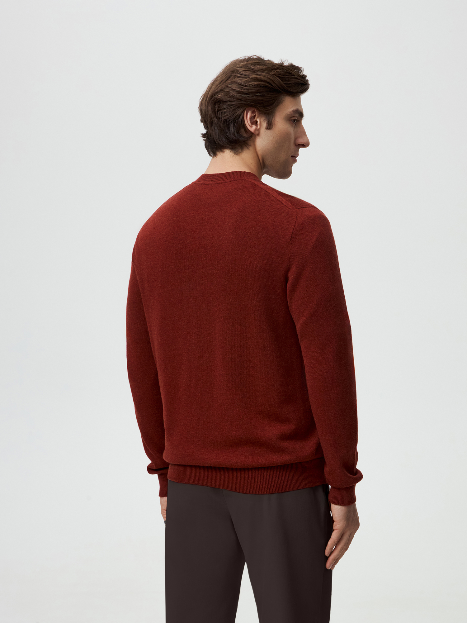 Вязаный джемпер в актуальном терракотовом оттенке гармонично сочетает комфорт и стиль. Связанный из мягкой пряжи, состоящей только из хлопка и шерсти мериноса, свитер обладает прекрасной терморегуляцией и высокими тактильным качеством. Выполнили модель с аккуратным круглым вырезом и длинным рукавом.