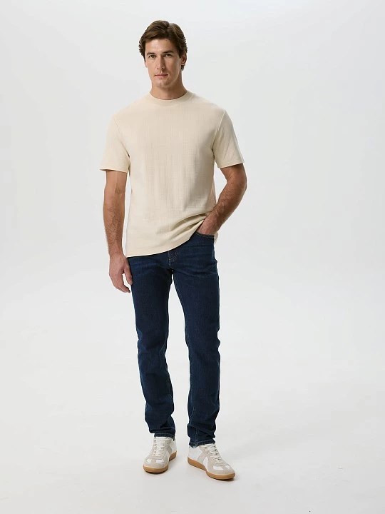 Джинсы силуэта slim выполнены из хлопкового денима с добавлением поливолокон и эластана и обладают отличной эластичностью, что обеспечивает свободу движений и комфорт в носке. Они прекрасно облегают фигуру, подчеркивая достоинства, и при этом не сковывают движения, что делает их идеальными для повседневной носки. Эти джинсы имеют зауженный крой, что придаёт образу современный вид. Модель выполнена в классическом 5-карманном дизайне, что добавляет функциональности и стиля. Застежка-гульфик на молнию и брендированный болт обеспечивают надежную фиксацию и удобство при носке. Сзади на поясе расположена брендированная нашивка с эффектом peach, что придаёт джинсам уникальность и стильный акцент. Выразительный темно-синий оттенок денима позволяет легко сочетать джинсы с различными предметами гардероба. Вы можете носить их как с футболками и поло для создания непринужденного образа, так и с рубашками для более элегантного стиля. Эти джинсы отлично подойдут как для работы, так и для встреч с друзьями или вечерних выходов. Выбирая супер-эластичные джинсы силуэта slim, Вы получаете не только стильный, но и практичный элемент гардероба, который будет радовать вас своим внешним видом и долговечностью на протяжении долгого времени. Это идеальный выбор для мужчин, стремящихся к удобству и современному стилю в повседневной жизни.