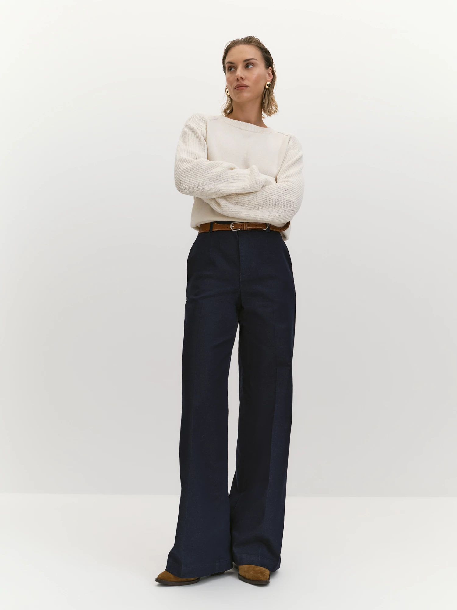 Джинсы raw denim, one wash выполнены из сырого, необработанного денима. Истинные ценители raw denim знают, что модели такого качества сначала кажутся жесткими, затем трансформируются. Выбрали для модели высокую посадку, подчеркивающую талию, и крой, скорее характерный для брюк - талиевые вытачки служат альтернативой традиционной кокетке. Заутюженные стрелки, легкое расклешение от колена и задние декоративные карманы с листочкой гарантируют привлекательные силуэт и посадку по бедрам. Джинсы пошиты из хлопка с добавлением полиэстера и эластана, что делает их тактильно приятными и долговечными.
