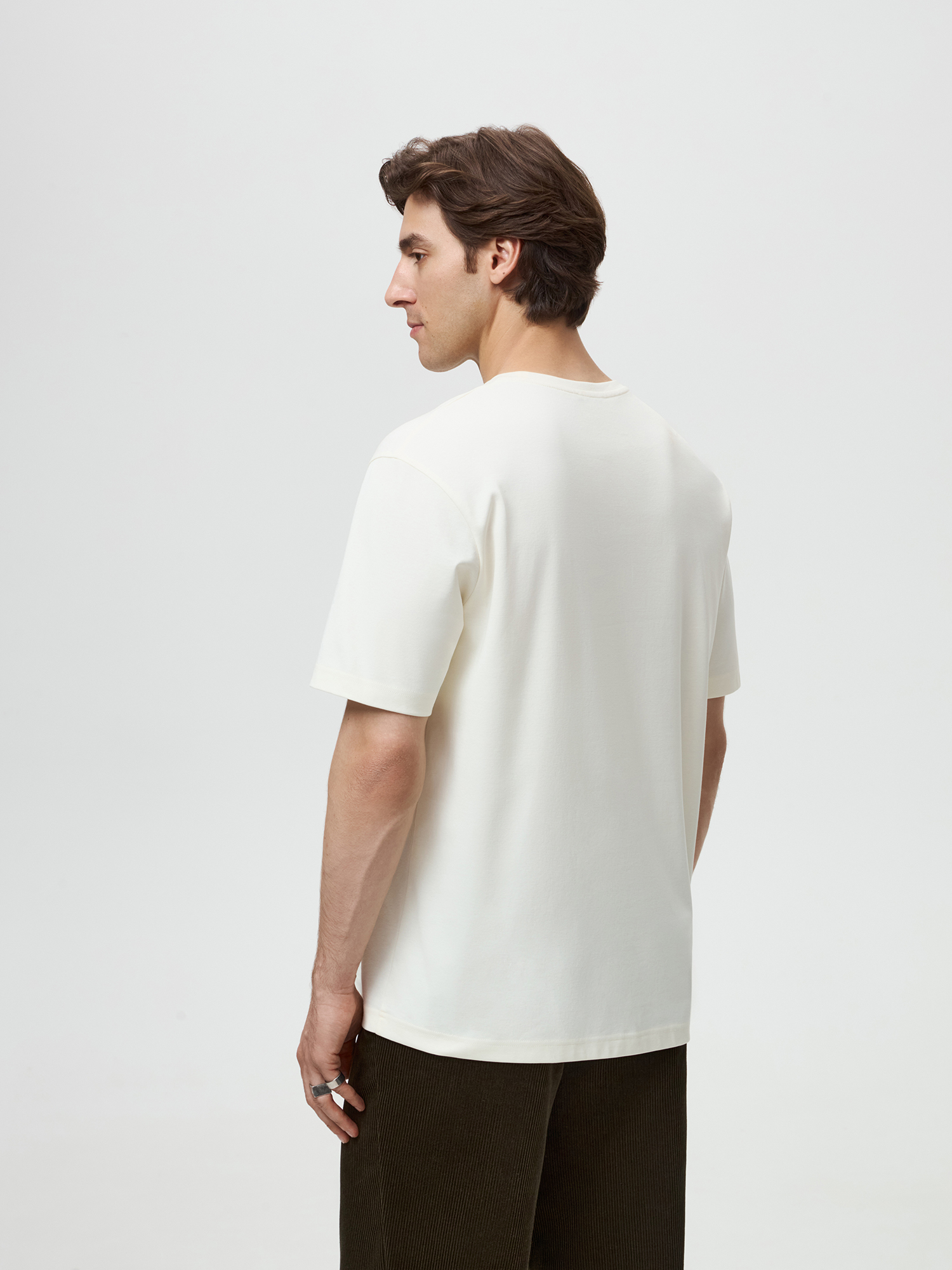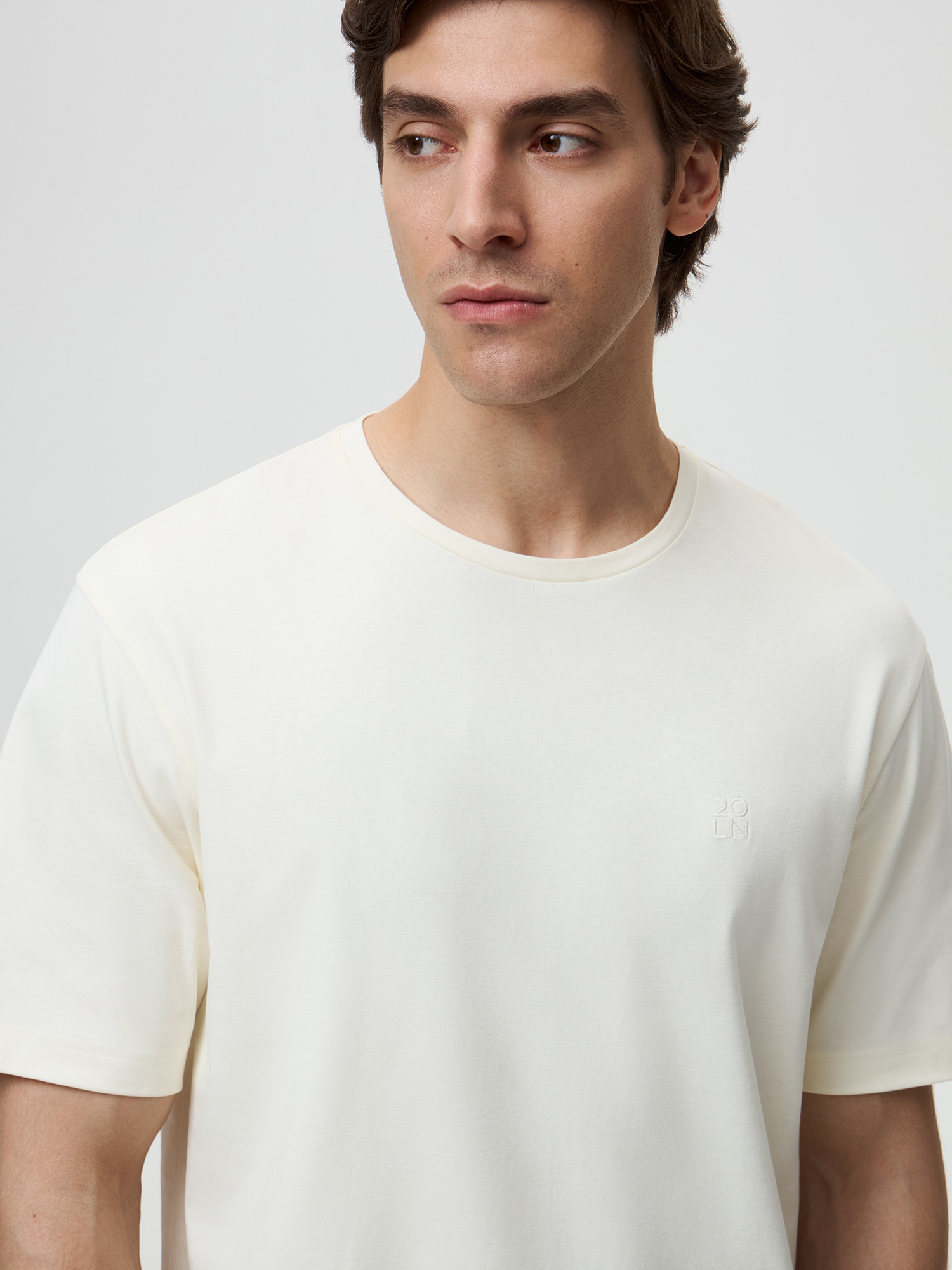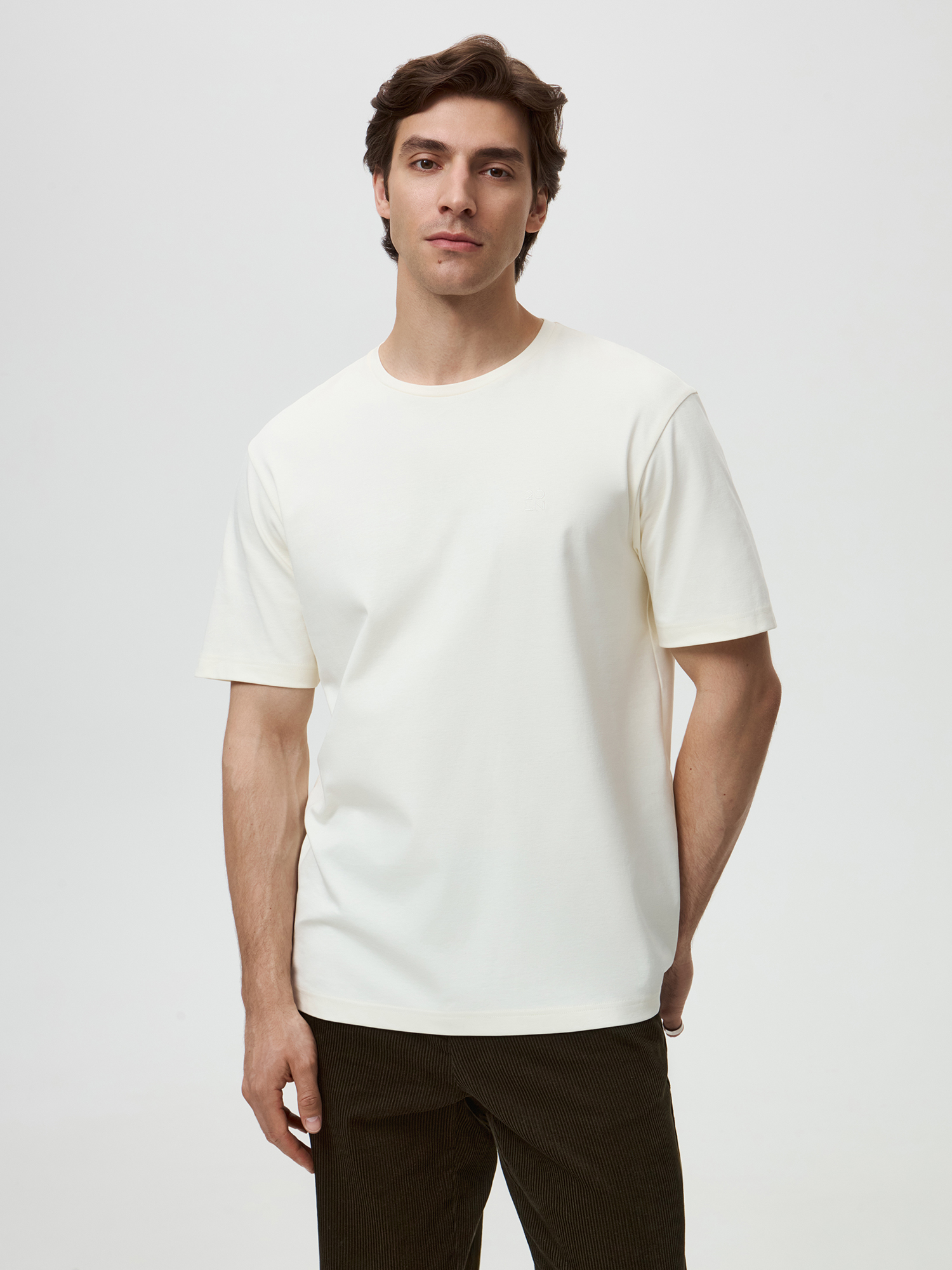 Стильная футболка с коротким рукавом в силуэте regular и базовом молочном оттенке станет отличным дополнением гардероба. Футболка выполнена из тактильно приятного трикотажа, состоящего на 100% из хлопка. Этот материал обеспечивает отличную воздухопроницаемость и комфорт в носке, что делает футболку идеальным выбором для повседневной жизни.