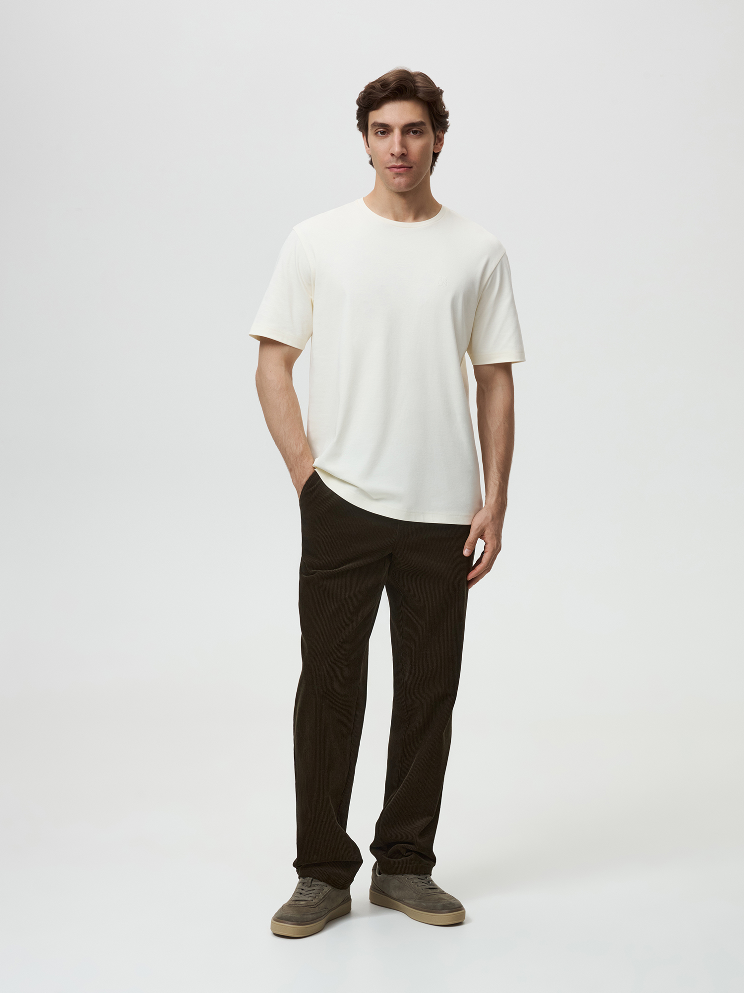 Лаконичная футболка легко комбинируется с различными стилями одежды. Вы можете носить ее с джинсами для создания непринужденного образа или сочетать с брюками-чинос для смарт кэжуал.