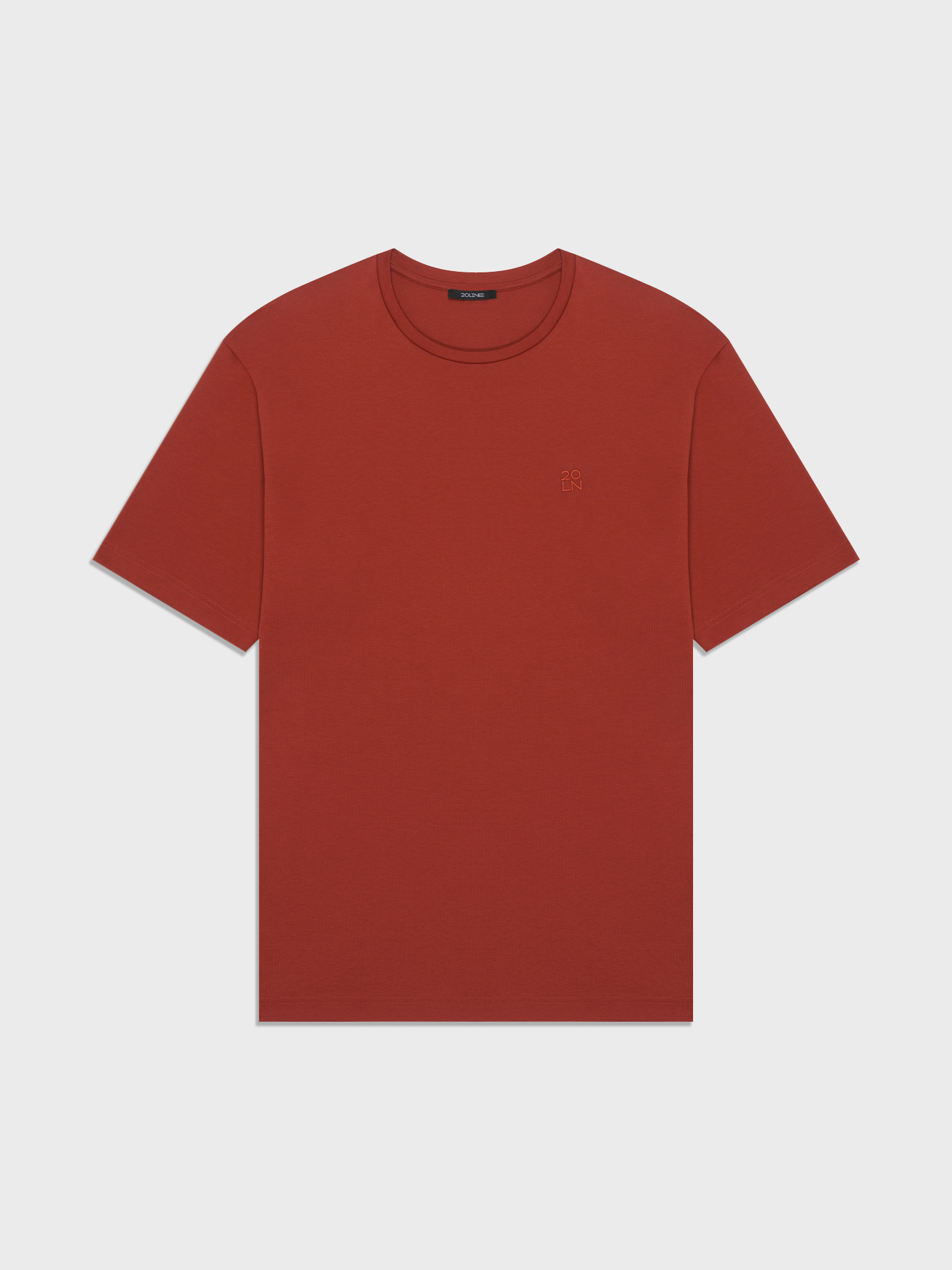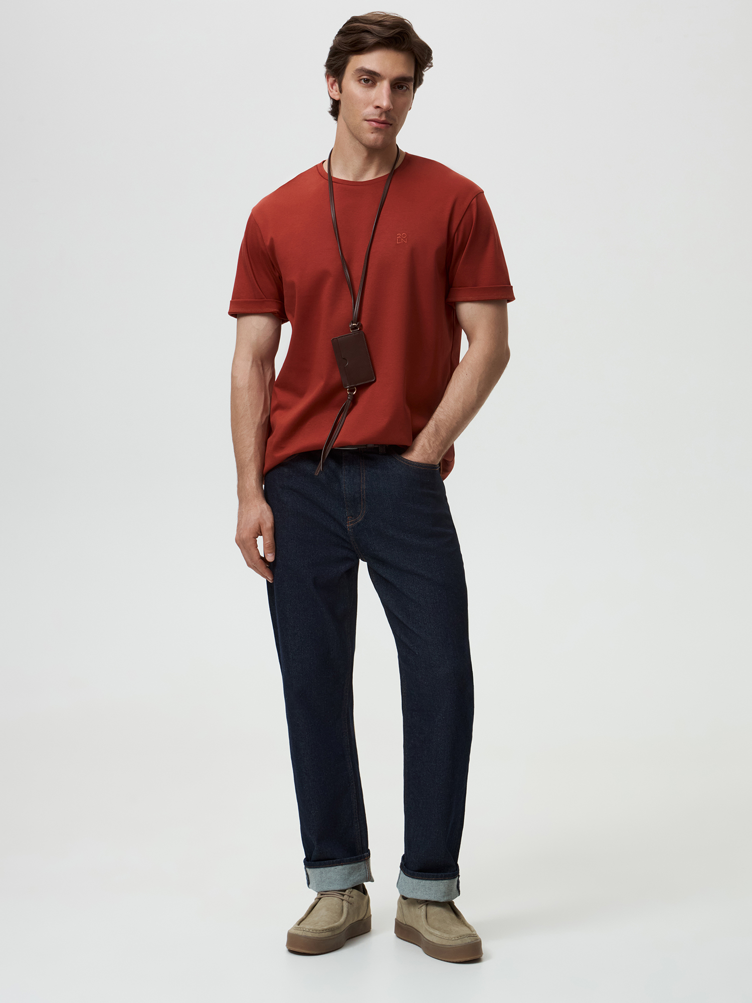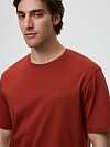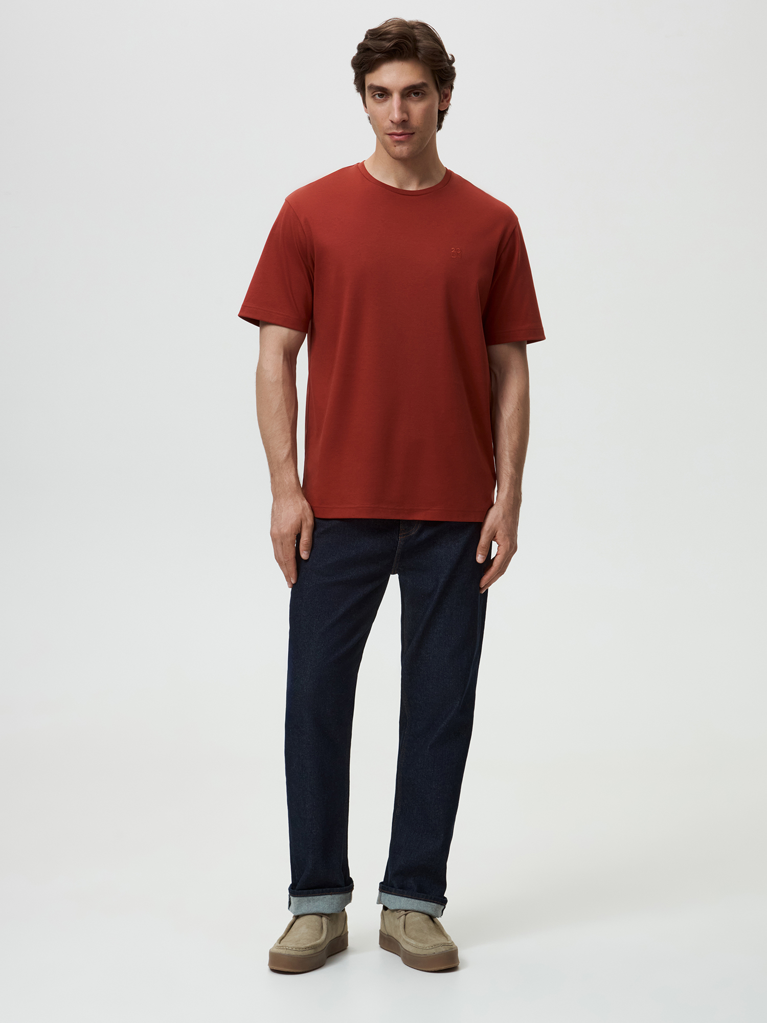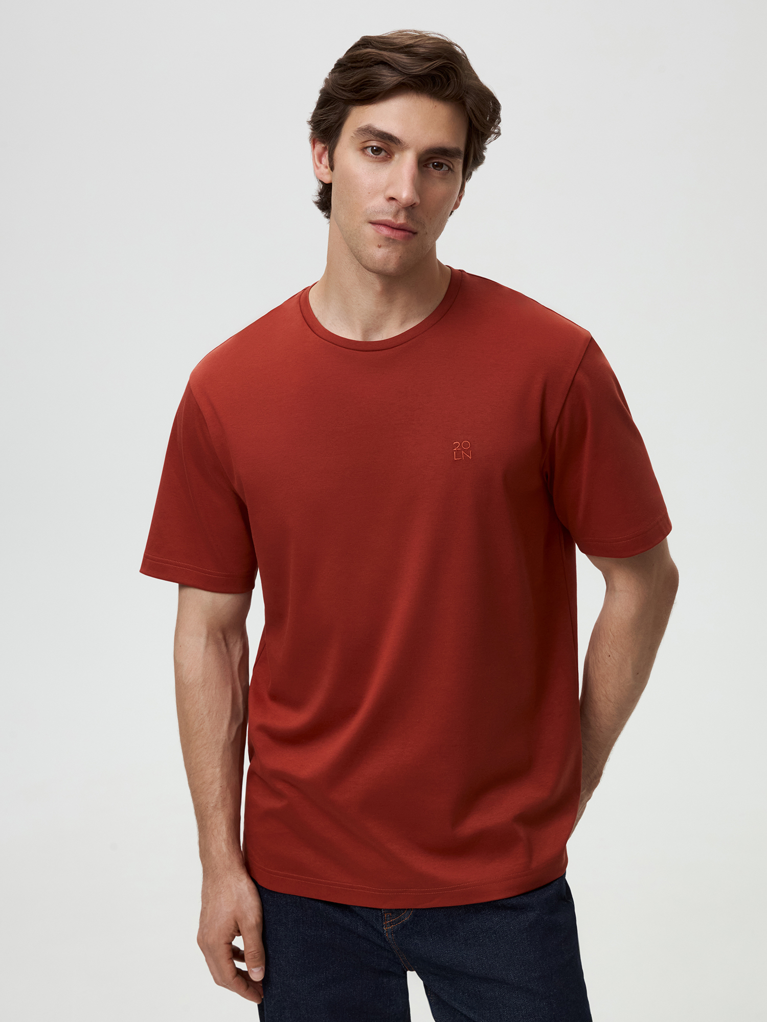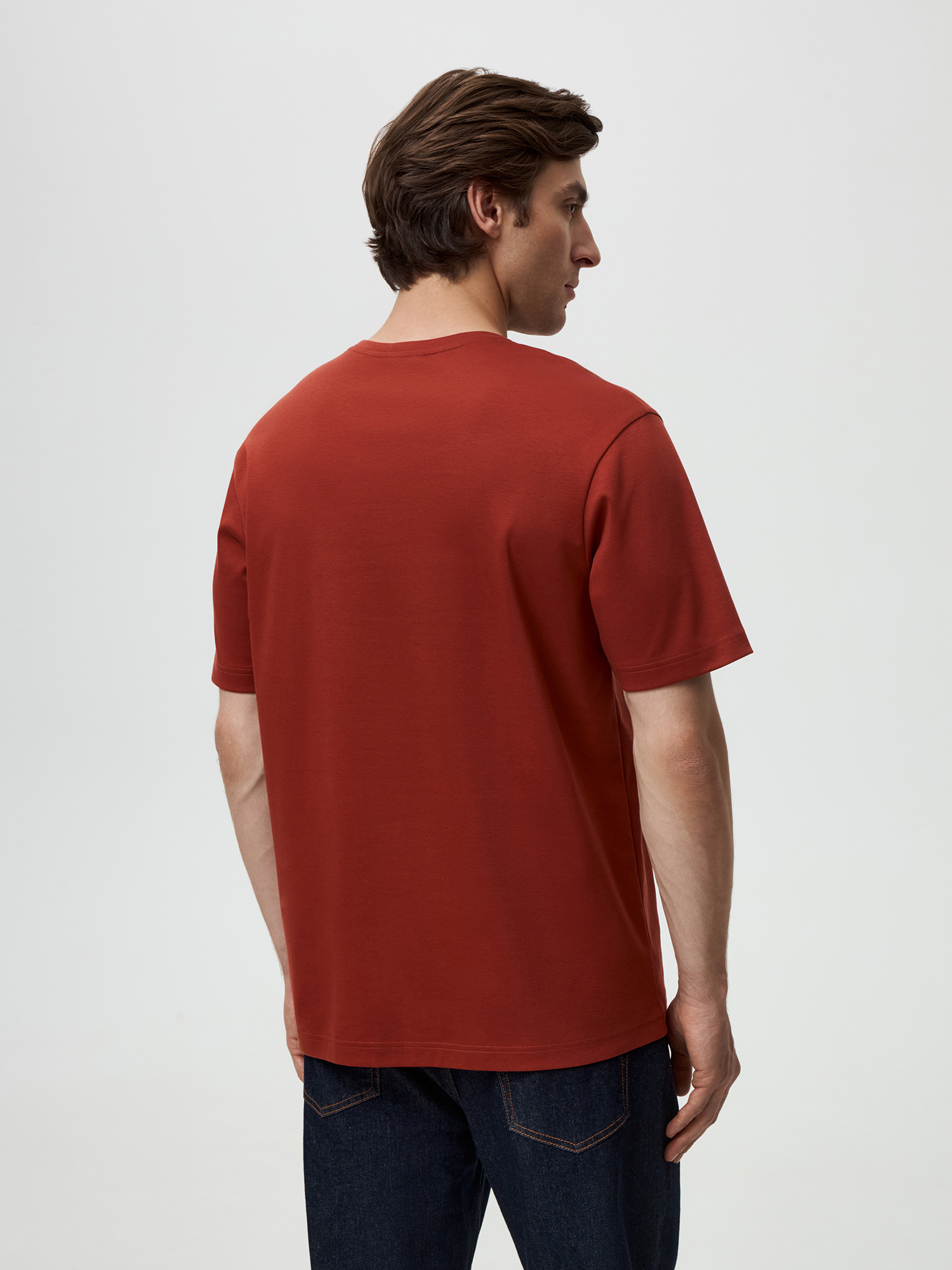 Стильная футболка с коротким рукавом в силуэте regular и оттенке "красная земля" станет отличным дополнением гардероба. Футболка выполнена из тактильно приятного трикотажа, состоящего на 100% из хлопка. Этот материал обеспечивает отличную воздухопроницаемость и комфорт в носке, что делает футболку идеальным выбором для повседневной жизни.