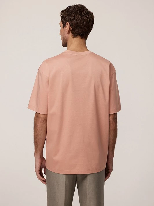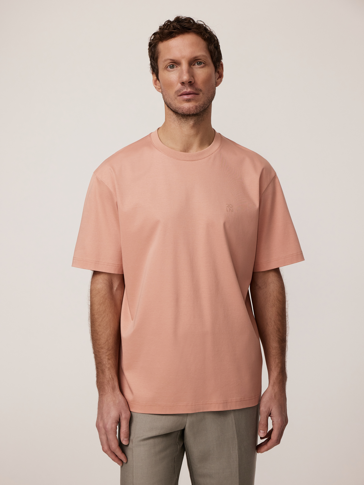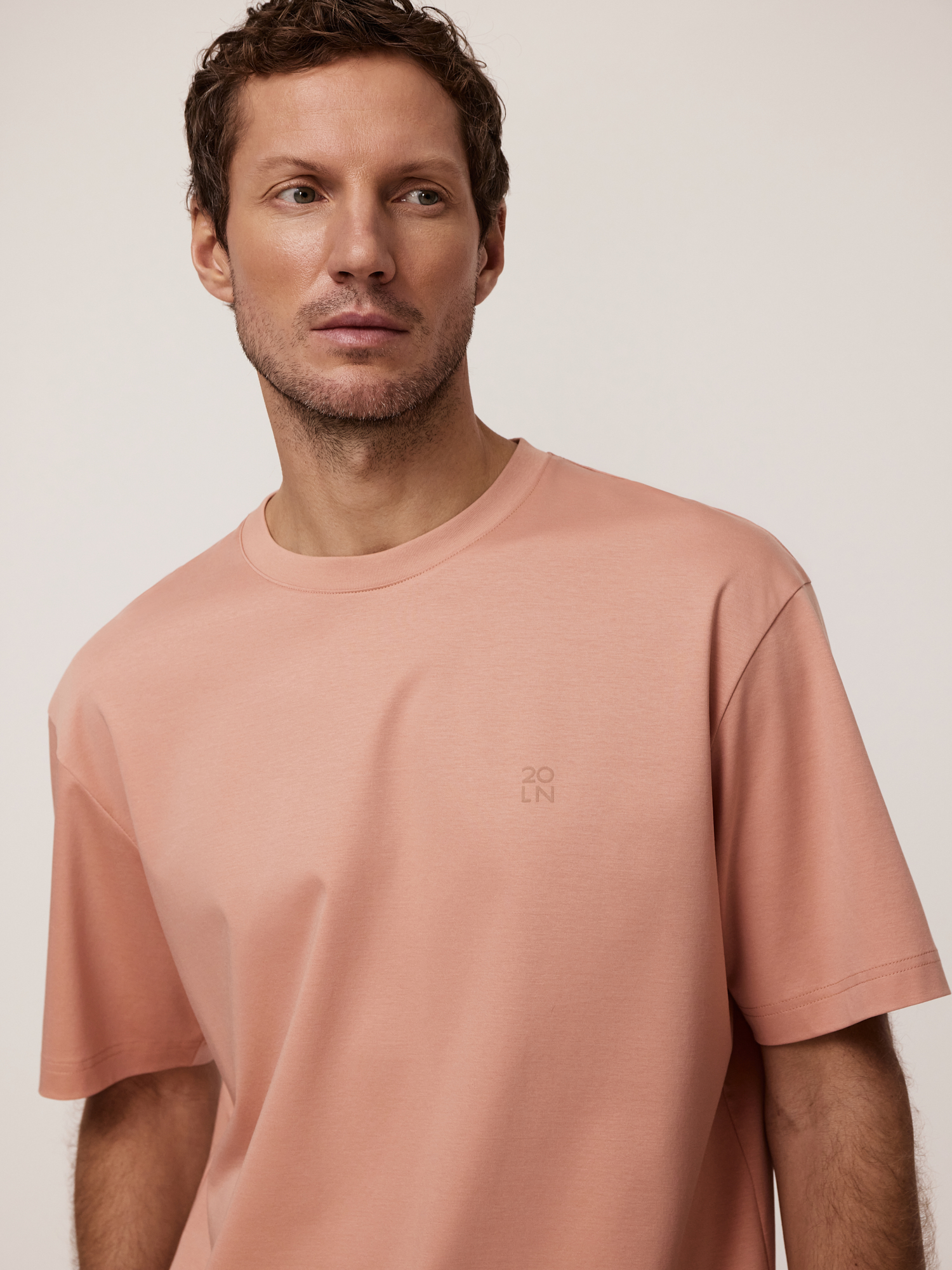 Непринужденность кэжуал эстетики и достижения современной текстильной промышленности повлияли на создание универсальной базовой модели. Выбрали для футболки смесовый персиковый трикотаж с премиальным составом, демонстрирующим высокие эксплуатационные качества. Сочетание мерсеризованного хлопка, люксового шелка и модала из буковой целлюлозы - это идеальный баланс натуральности, комфорта и практичности. Мерсеризованный хлопок – это хлопок премиум-класса, прошедший специальную обработку. Он приобретает особый глянцевый блеск, становится прочнее и устойчивее к износу, сохраняя при этом все достоинства натурального хлопка: безупречную воздухопроницаемость и гипоаллергенность. Такая ткань необыкновенно приятна на ощупь – мягкая, гладкая и удивительно нежная к коже. Шёлк – эталон роскоши среди тканей. Он придаёт материалу струящуюся лёгкость, изысканный благородный блеск и способность красиво драпироваться. Шёлк обладает природной терморегуляцией – в жару дарит прохладу, а в прохладную погоду сохраняет тепло. Кроме того, он гипоаллергенен и невероятно прочен, несмотря на кажущуюся хрупкость. Модал – современное высокотехнологичное волокно, получаемое из натуральной целлюлозы. Оно сочетает в себе лучшие свойства натуральных тканей: мягче хлопка, впитывает на 50% больше влаги, чем хлопок, обладает антибактериальными свойствами и при этом совершенно не мнётся. Модал придаёт ткани дополнительную эластичность, делает её приятно прохладной на ощупь и обеспечивает идеальную посадку по фигуре. Крой regular обеспечивает комфортную посадку, подходящую для каждой фигуры. Круглый вырез с отделкой из хлопкового трикотажа «рибана» лаконичен и подходит для многослойных образов. Короткие рукава обеспечивают комфорт и идеальны для теплой погоды. Особое внимание привлекает брендированный принт, нанесенный на собственном производстве с помощью высокоточного оборудования для печати по ткани — такая деталь добавляет образу индивидуальности, без ущерба общей гармонии образа. Модель для мужчин, которые ценят комфортную и универсальную одежду, созданную с вниманием к деталям.
