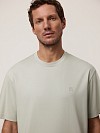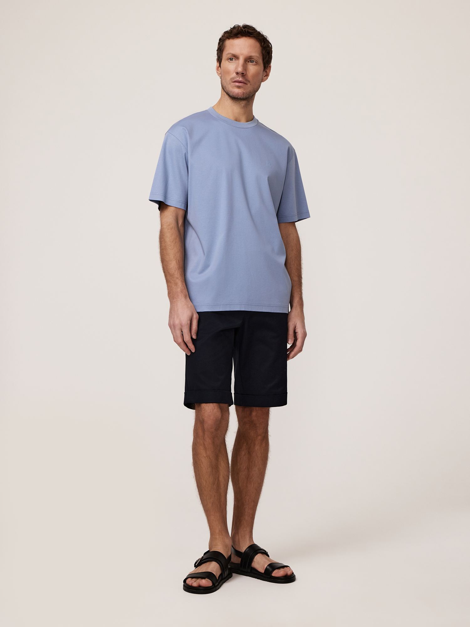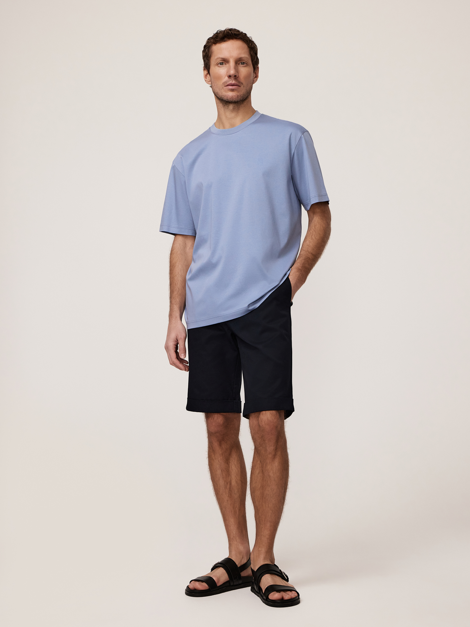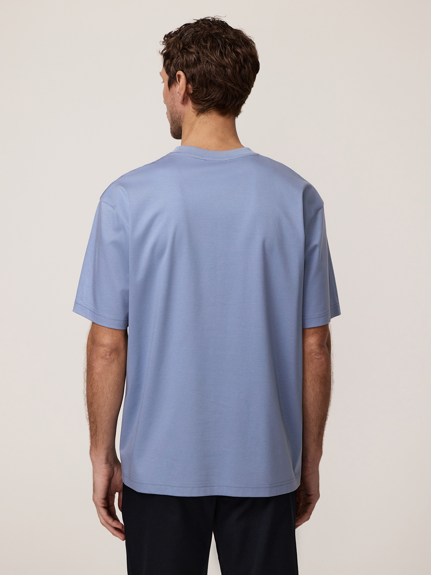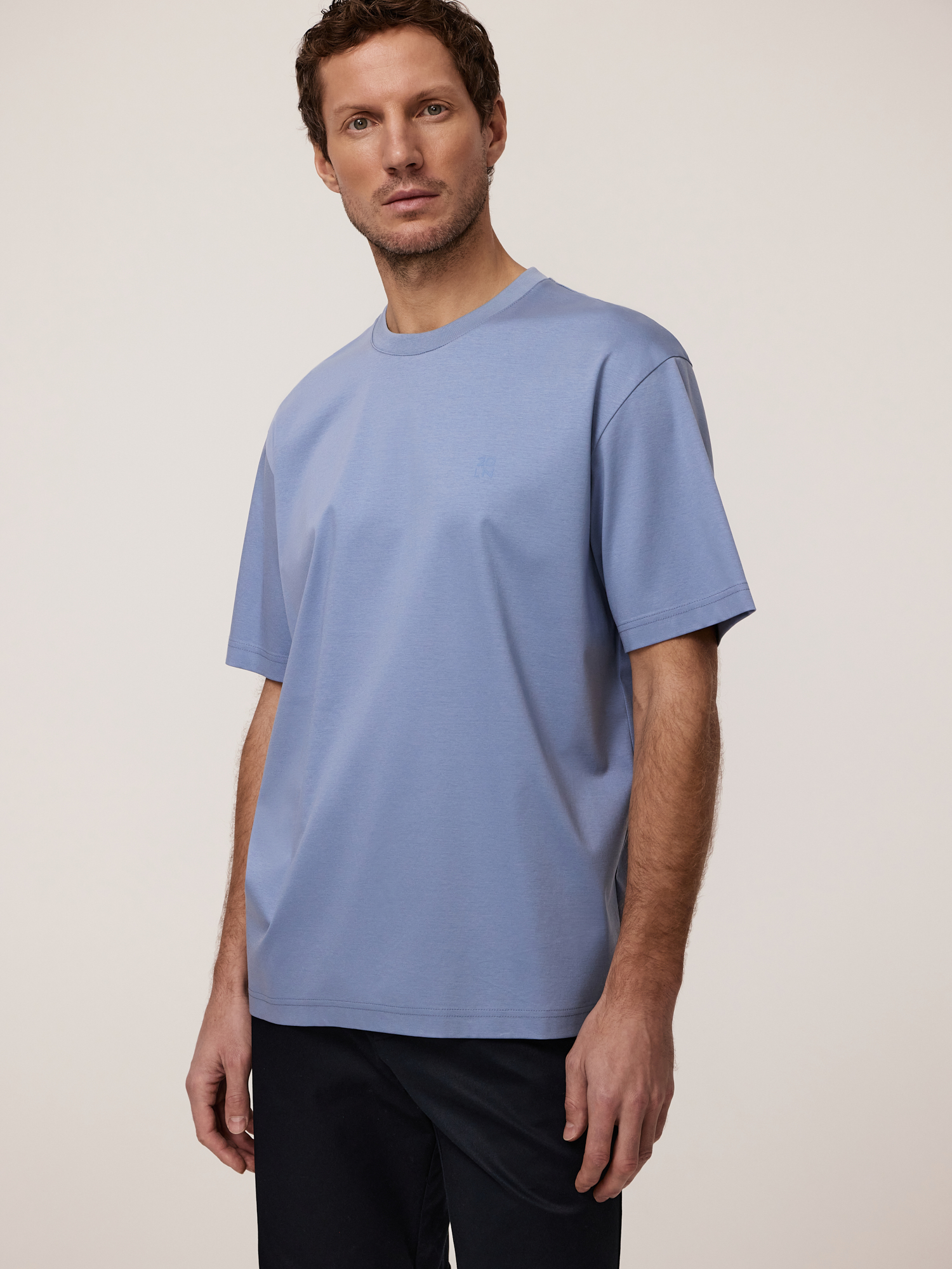 Непринужденность кэжуал эстетики и достижения современной текстильной промышленности повлияли на создание универсальной базовой модели. Выбрали для футболки смесовый трикотаж в выразительном голубом цвете с премиальным составом, демонстрирующим высокие эксплуатационные качества. Сочетание мерсеризованного хлопка, люксового шелка и модала из буковой целлюлозы - это идеальный баланс натуральности, комфорта и практичности. Мерсеризованный хлопок – это хлопок премиум-класса, прошедший специальную обработку. Он приобретает особый глянцевый блеск, становится прочнее и устойчивее к износу, сохраняя при этом все достоинства натурального хлопка: безупречную воздухопроницаемость и гипоаллергенность. Такая ткань необыкновенно приятна на ощупь – мягкая, гладкая и удивительно нежная к коже. Шёлк – эталон роскоши среди тканей. Он придаёт материалу струящуюся лёгкость, изысканный благородный блеск и способность красиво драпироваться. Шёлк обладает природной терморегуляцией – в жару дарит прохладу, а в прохладную погоду сохраняет тепло. Кроме того, он гипоаллергенен и невероятно прочен, несмотря на кажущуюся хрупкость. Модал – современное высокотехнологичное волокно, получаемое из натуральной целлюлозы. Оно сочетает в себе лучшие свойства натуральных тканей: мягче хлопка, впитывает на 50% больше влаги, чем хлопок, обладает антибактериальными свойствами и при этом совершенно не мнётся. Модал придаёт ткани дополнительную эластичность, делает её приятно прохладной на ощупь и обеспечивает идеальную посадку по фигуре. Крой regular обеспечивает комфортную посадку, подходящую для каждой фигуры. Круглый вырез с отделкой из хлопкового трикотажа «рибана» лаконичен и подходит для многослойных образов. Короткие рукава обеспечивают комфорт и идеальны для теплой погоды. Особое внимание привлекает брендированный принт, нанесенный на собственном производстве с помощью высокоточного оборудования для печати по ткани — такая деталь добавляет образу индивидуальности, без ущерба общей гармонии образа. Модель для мужчин, которые ценят комфортную и универсальную одежду, созданную с вниманием к деталям.