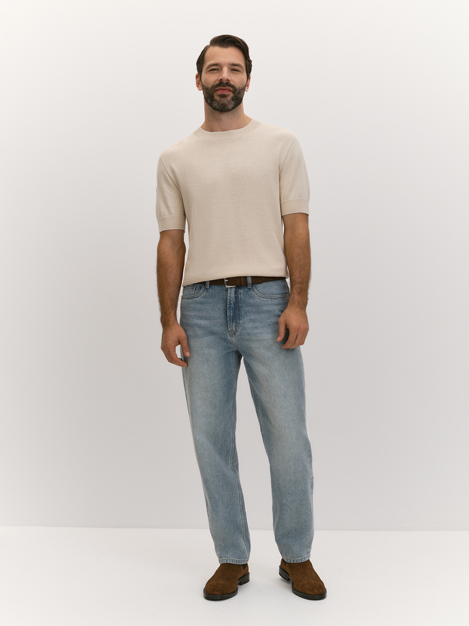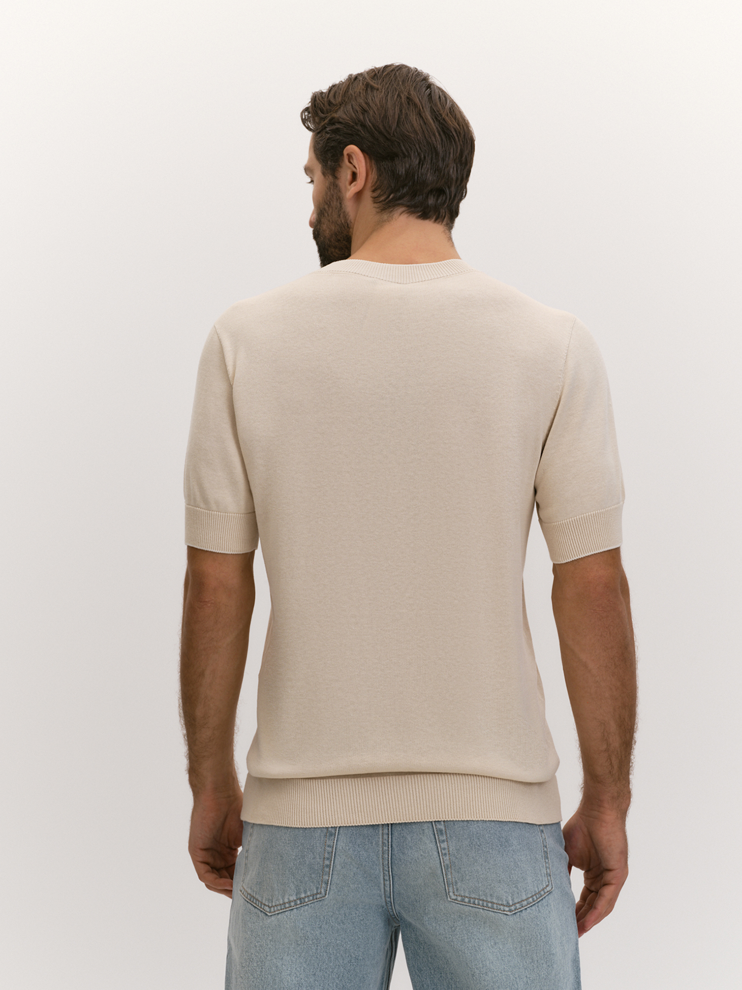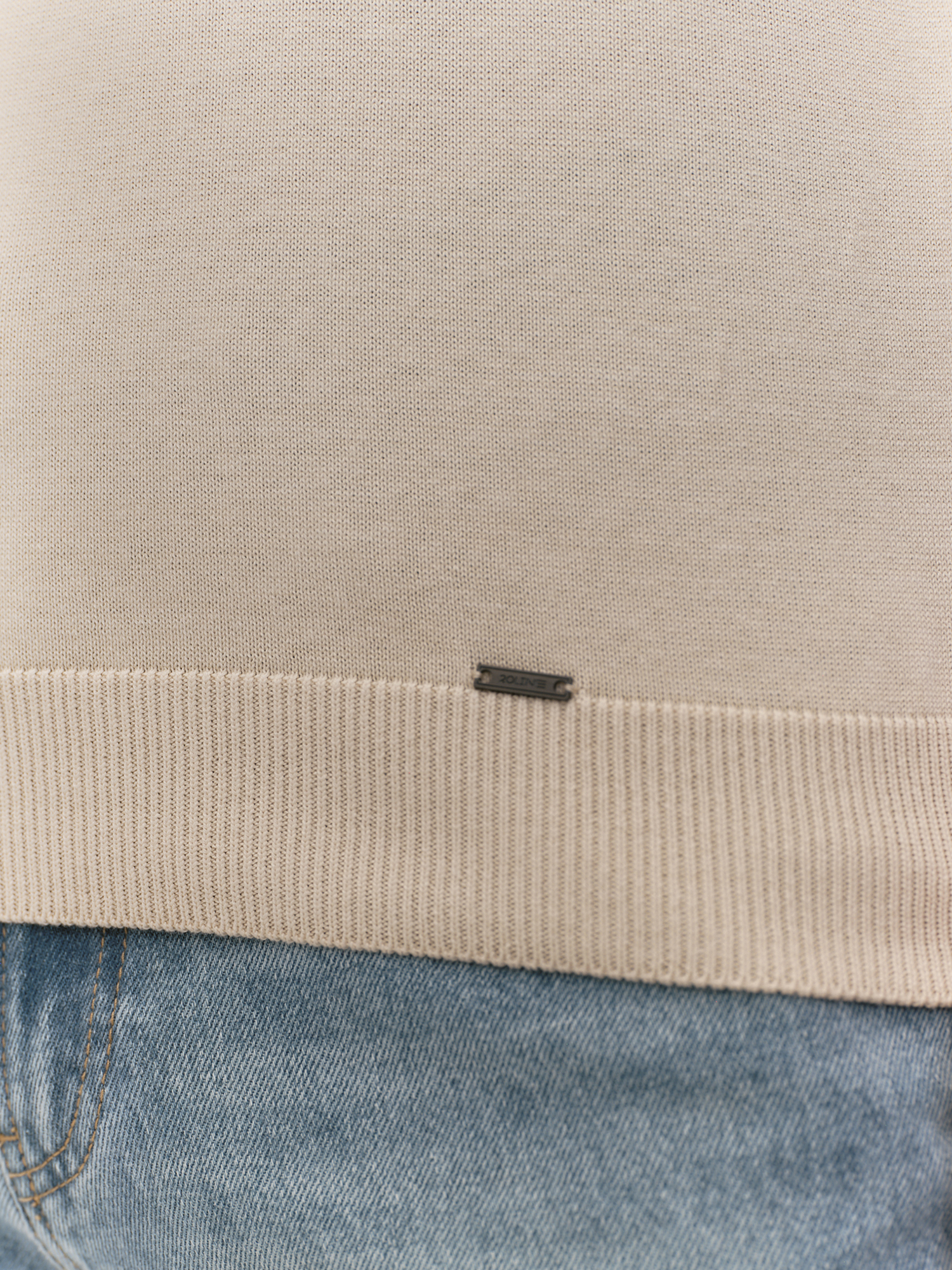 Выбрали для базовой модели премиального качества пряжу с полностью натуральным составом из шелка и хлопка. Футболка, декорированная брендированным украшением, выполнена на японской плосковязальной машине Shima Seiki и отличается 12-м классом вязки . Чем выше класс вязки, тем более тонкое, ценное вязаное изделие мы получаем. 12-й класс – один из самых высоких и доступен нам благодаря современному оборудованию фабрики. Футболка связана по бесшовной технологии - это значит, что она создается как единое целое, хорошо держит форму и долго прослужит. Резинка горловины присоединена к цельновязаной модели на кеттельном оборудовании. Эта премиальная, практически незаметная обработка с высокой долей ручного труда и вниманием к деталям, отличается высокой эластичностью, что способствует формоустойчивости изделия. Базовый светло-бежевый оттенок универсален и подойдет для офиса, праздника, прогулки, повседневной носки.