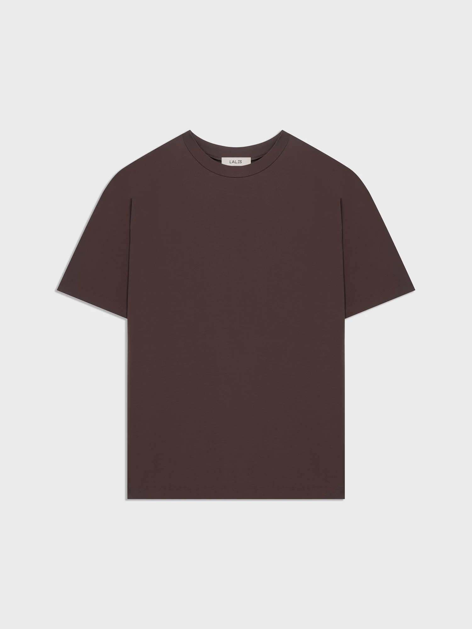 Футболка в благородном оттенке "коричневая печать" будет прекрасным дополнением к джинсам и брюкам из коллекции, а также под пиджак