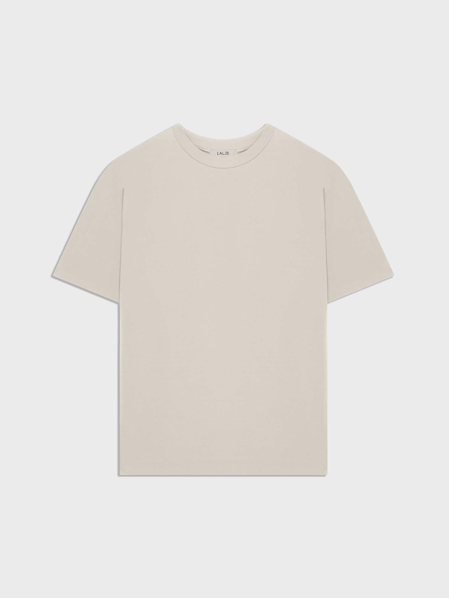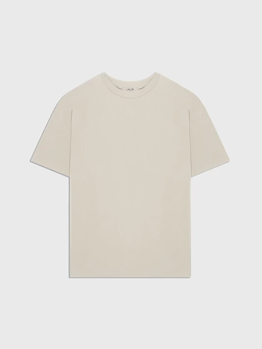 Футболка в универсальном молочном оттенке будет прекрасным дополнением к джинсам и брюкам из коллекции, а также под пиджак