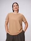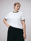 Полуприлегающая футболка с коротким рукавом зайдет в гардероб как базовая, как единственный слой, и в качестве первого под жакеты и кардиганы. Привлекает внимание брендированная вышивка в тон основной ткани, выполненная на собственном производстве полного цикла на японском оборудовании Tajima. Модель выполнена из вискозного трикотажа с высоким тактильным качеством, тонкого, но плотного. Это полотно износостойкое и эластичное. Такая модель в базовом белом цвете создает основу образа и не зависит от сезонов и трендов, контрастный кант футболки достойно завершит образ.