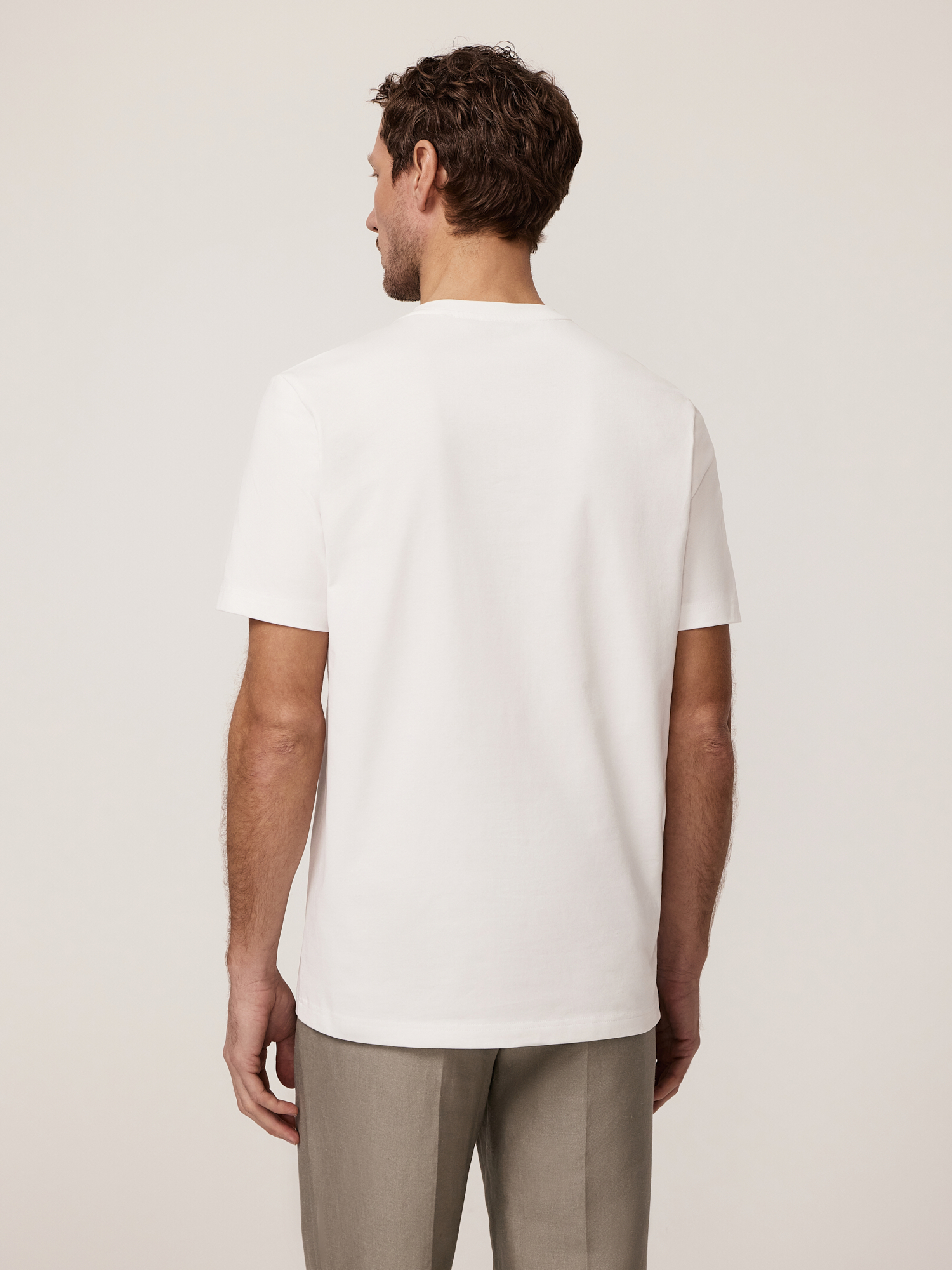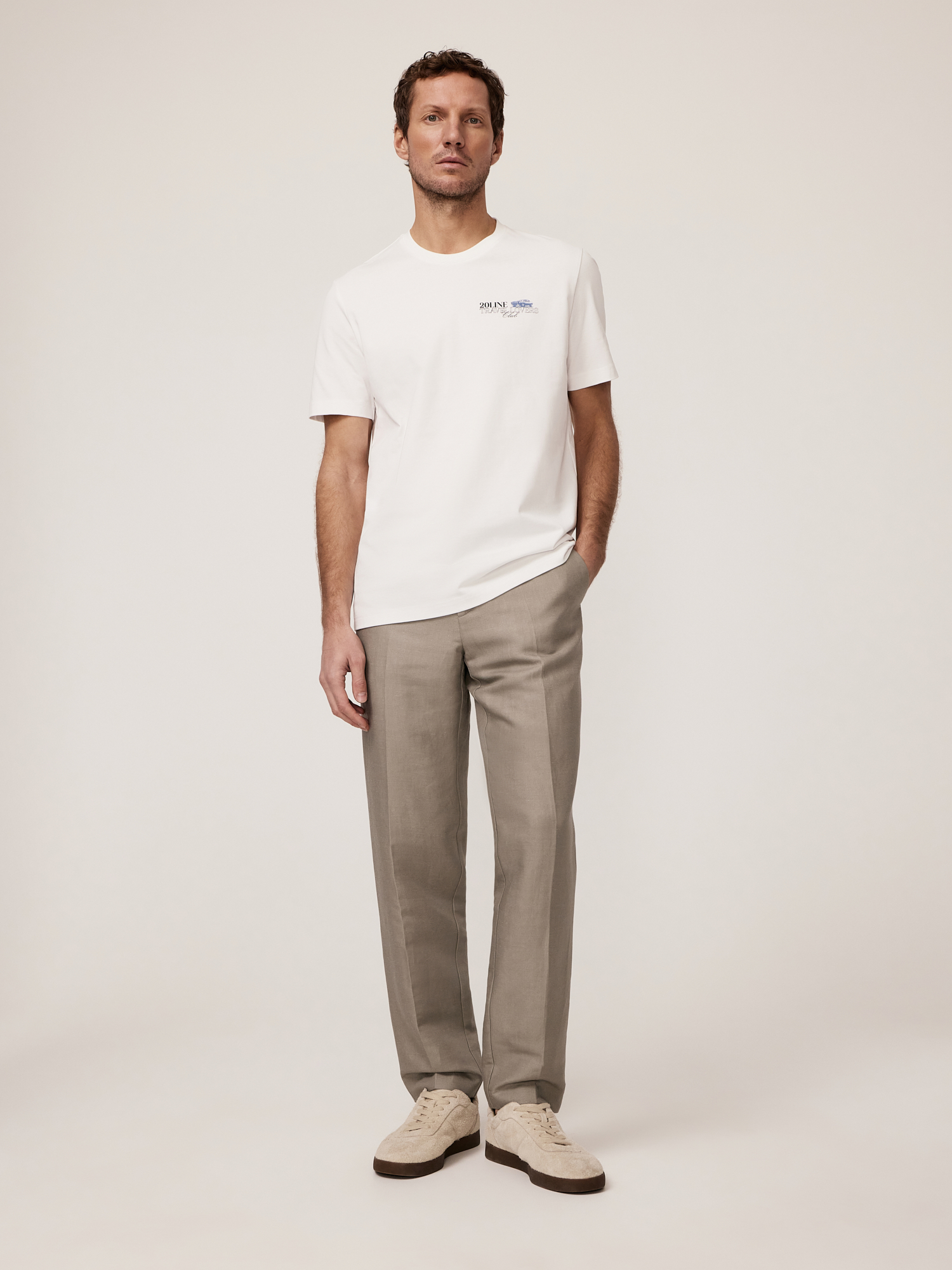 Футболка из натурального хлопка — представитель минималистичного повседневного стиля, где брендированный принт становится главным акцентом. Круглый вырез с отделкой из хлопкового трикотажа «рибана» лаконичен и подходит для многослойных образов. Короткие рукава обеспечивают комфорт и идеальны для теплой погоды. Сшитая из 100% хлопка, футболка гарантирует натуральность, воздухопроницаемость и тактильную мягкость, что делает ее приятной для ношения в течение всего дня. Дополнительный комфорт для чувствительной кожи обеспечивает гипоаллергенность хлопка. Белый цвет, способный отражать солнечные лучи, один из лучших вариантов для теплого весенне-летнего периода. Крой regular обеспечивает комфортную посадку, подходящую для каждой фигуры, а круглый вырез и короткие рукава транслируют лаконичность и комфорт, особенно в теплую погоду. Лого-принт “20LINE. TRAVEL LOVERS CLUB" (рус. «20LINE. Клуб любителей путешествий») отражает динамику бренда и общее настроение капсульной коллекции.