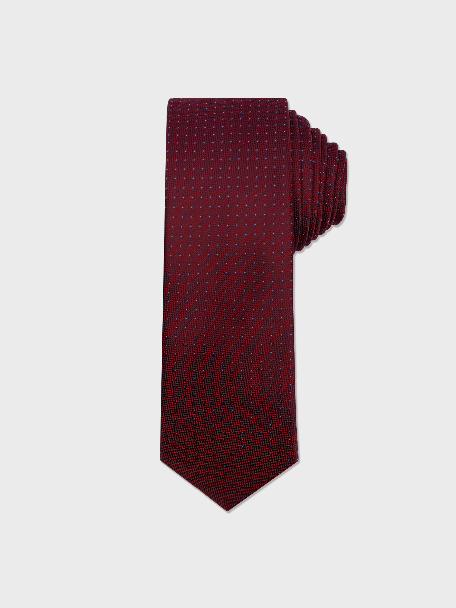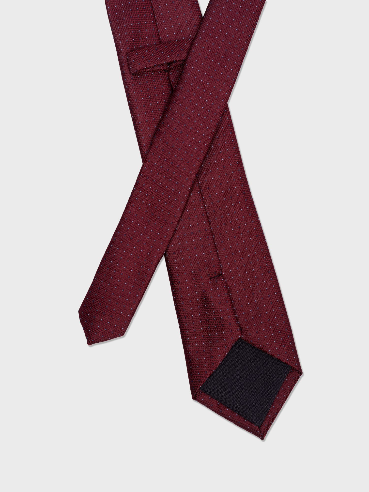 Галстук выполнен из бордового искусственного шелка с точечным узором. Подчеркнет индивидуальный стиль современного делового мужчины
