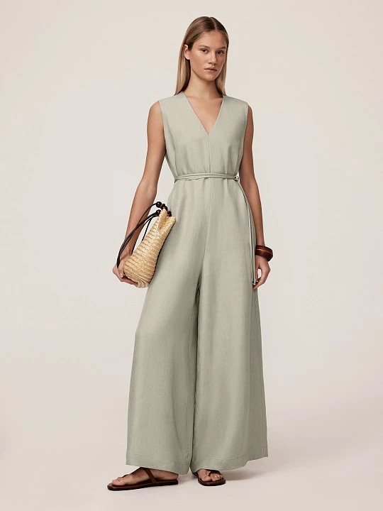 Комбинезон, как воплощение сдержанной роскоши и практичности. Лаконичный дизайн модели призван обратить внимание на фактуру ткани и необычный цвет, создавая незабываемый образ. Крой комбинезона только подчеркивает его минималистичный стиль: необрамленный V-вырез визуально удлиняет шею и изящно смотрится, а потайная молния обеспечивает аккуратность и комфорт при надевании, сохраняя простоту линий. Карманы в швах минималистичны, повышая функциональность, они также расширяют стилистические возможности изделия. Комбинезон выполнен из ткани плотного переплетения на основе вискозы с добавлением благородного льна. Вискоза обеспечивает мягкость, легкость и приятные тактильные ощущения, а также отличную воздухопроницаемость, что делает модель комфортной для носки. Лен добавляет натуральность, экологичность, износостойкость и способность хорошо держать форму. Нельзя не отметить терморегуляционные свойства льна, ведь он поддерживает комфортную температуру, охлаждая или согревая тело в зависимости от условий. Хлопковая подкладка в области лифа закрывает швы обработки срезов, обеспечивая дополнительный комфорт и добавляя комбинезону долговечность. Плотное переплетение ткани обеспечивает структурированность и устойчивость полотна, а также подчеркивает натуральное происхождение волокон, ведь мы знаем, что вискоза также производится из натурального сырья, качественной древесной целлюлозы. Необычный оттенок «камень» привносит в гардероб гармонию, делая комбинезон актуальным и легко сочетаемым с другими элементами одежды.