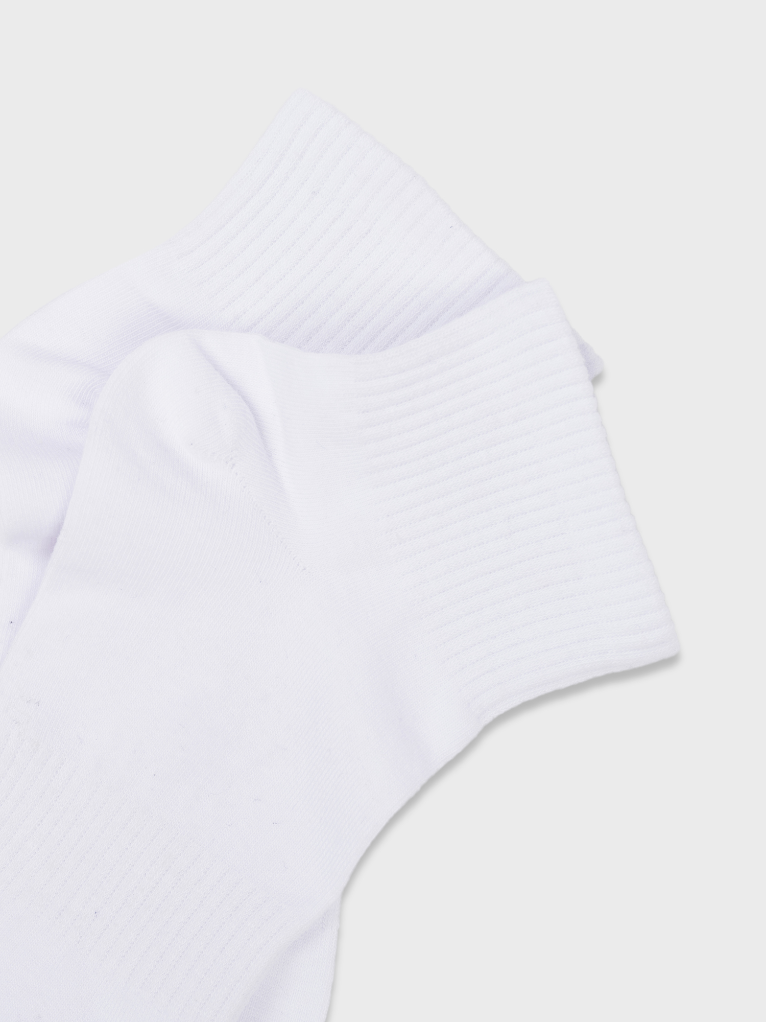Мужские короткие носки белого цвета обеспечат непревзойденный комфорт благодаря мягкому и приятному на ощупь хлопку в составе. Добавление экстратонкой лайкры повышает прочность и долговечность модели, способствует идеальной посадке