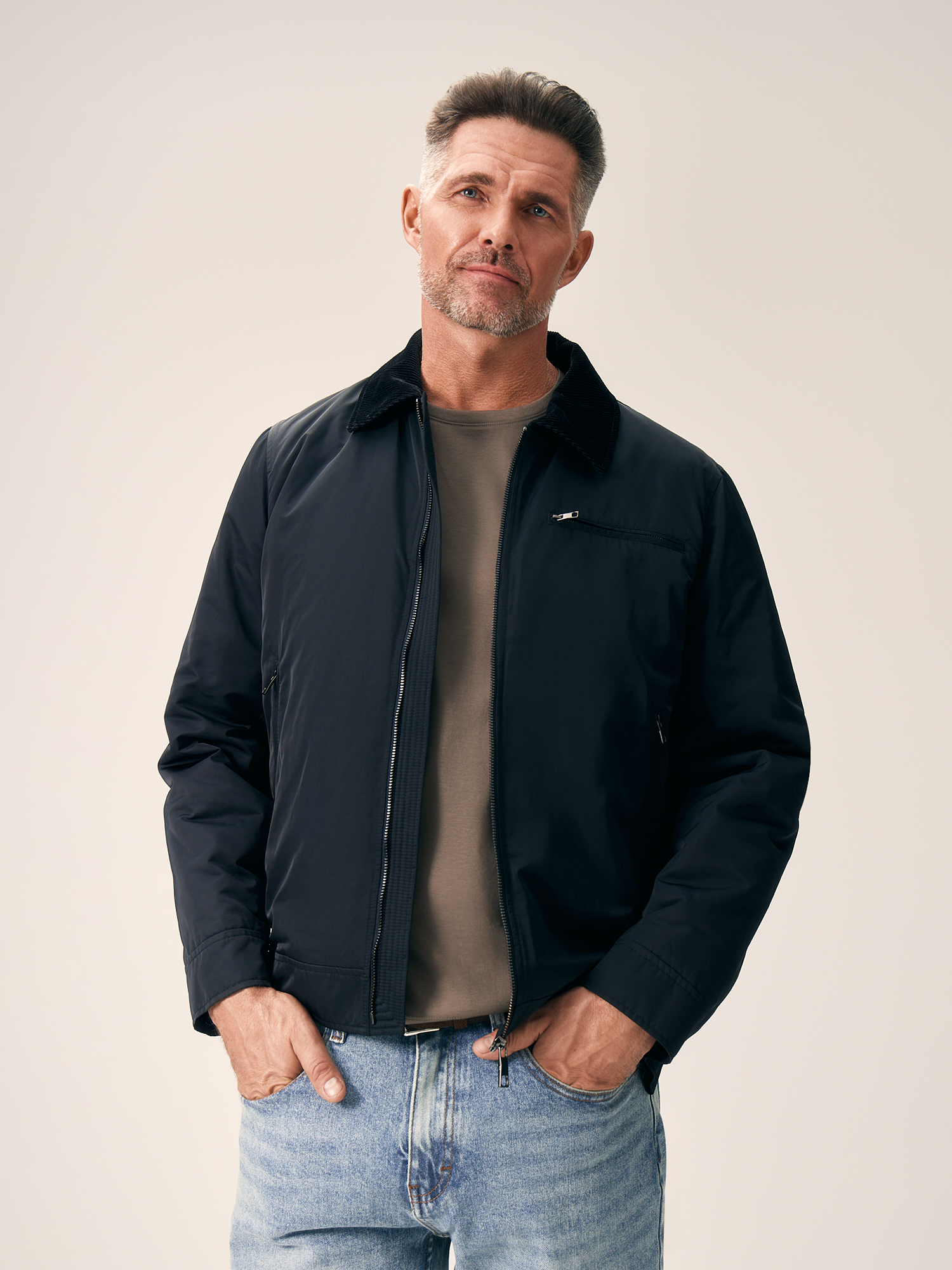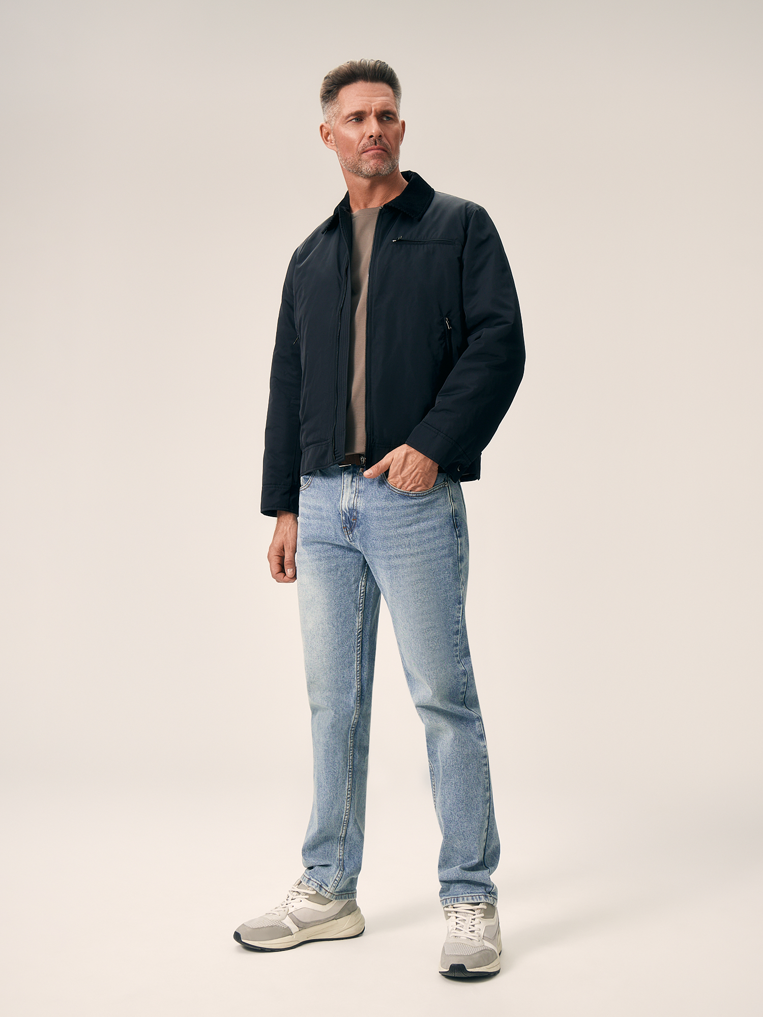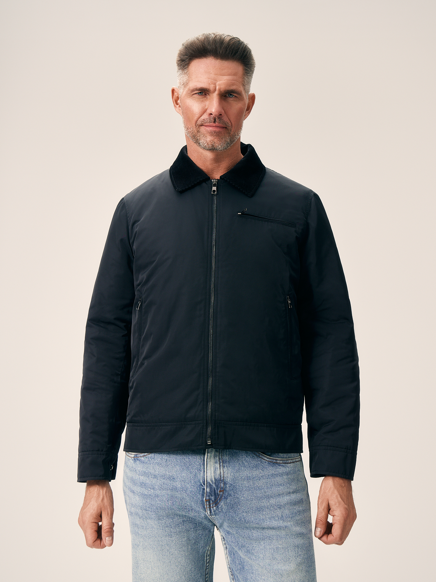 Черная куртка-бомбер полуприлегающего кроя с боковыми карманами на молнии – стильное решение для повседневного образа. Изделие хорошо защищает от ветра и превосходно подходит для осенних прогулок. Носить такой бомбер рекомендуем с минималистичными предметами гардероба в стиле