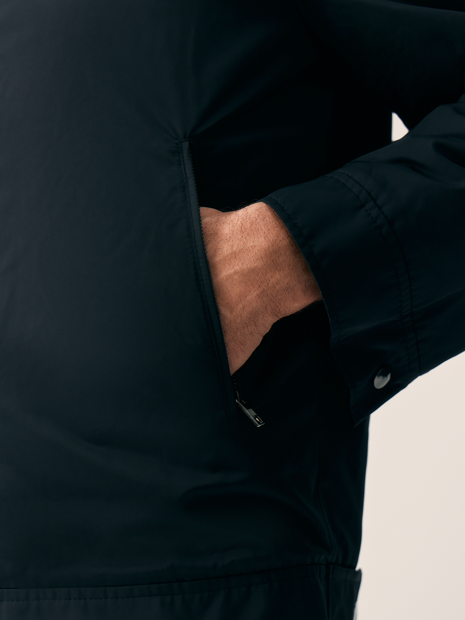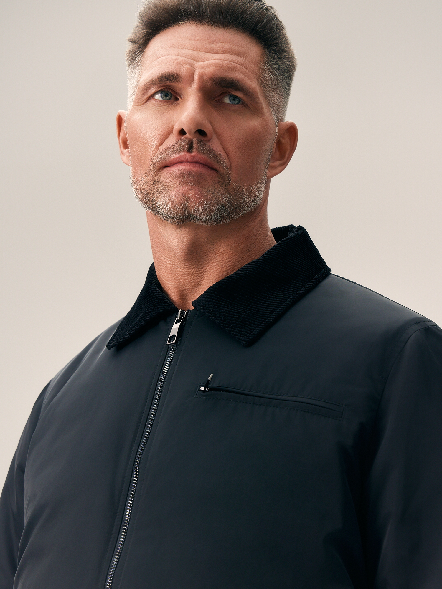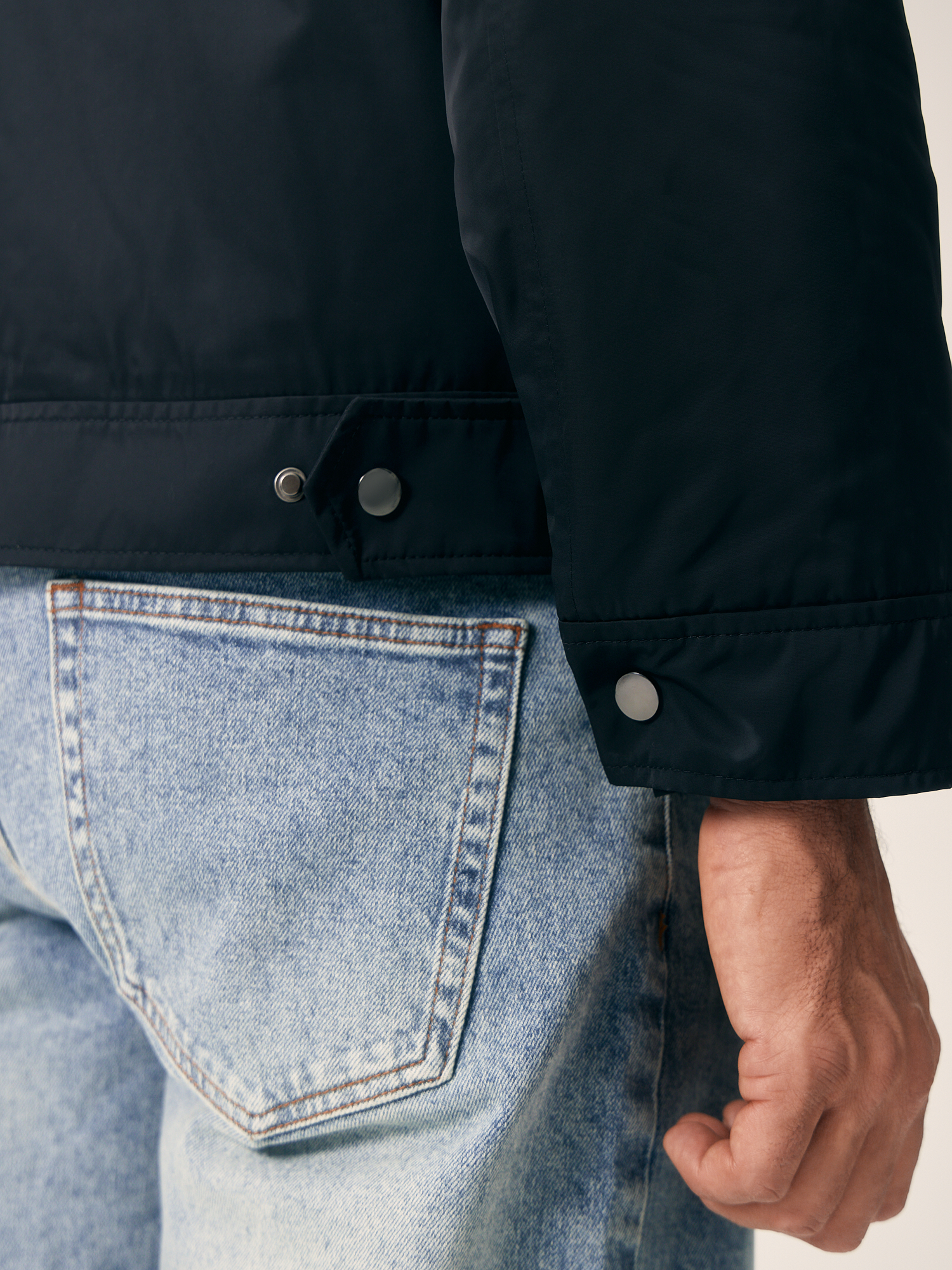 Черная куртка-бомбер полуприлегающего кроя с боковыми карманами на молнии – стильное решение для повседневного образа. Изделие хорошо защищает от ветра и превосходно подходит для осенних прогулок. Носить такой бомбер рекомендуем с минималистичными предметами гардероба в стиле