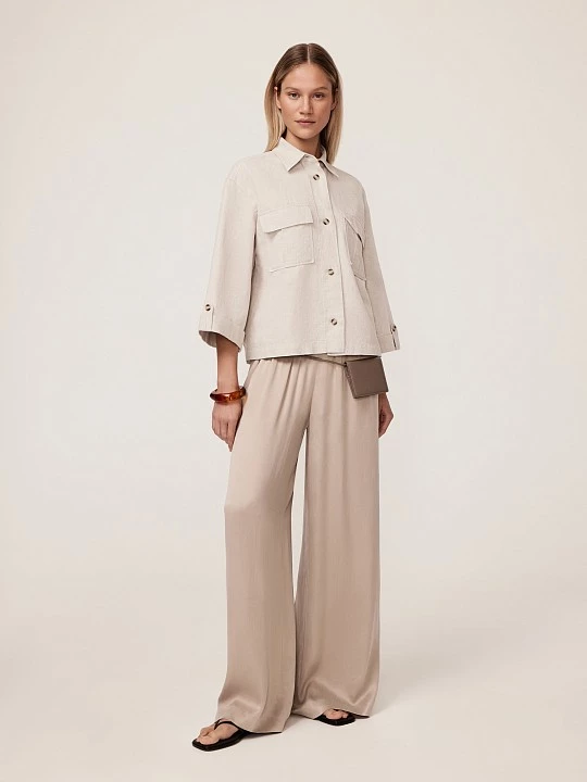 Бренд: ElisЦвет: БежевыйСостав: Лен - 54%, Хлопок - 46%Рост: 177Артикул: KL0010Параметры модели: 85 - 61 - 89Размер на модели: 44Коллекция: MATCHA LATTE