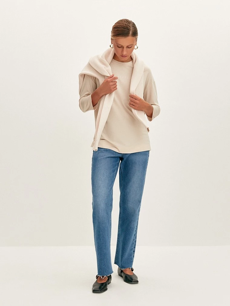 Лонгслив с минималистичным дизайнерским принтом выполнен из гладкой мягкой ткани на основе вискозного шёлка. Материал содержит эластичные волокна в составе, которые приятны телу и хорошо держат форму. Модель прямого силуэта и удобной длиной рукава обеспечит комфортную посадку по фигуре. Лёгкий лонгслив органично впишется в повседневный гардероб и освежит ваш образ благодаря насыщенным цветам: бирюзовому, лимонному и бежевому.