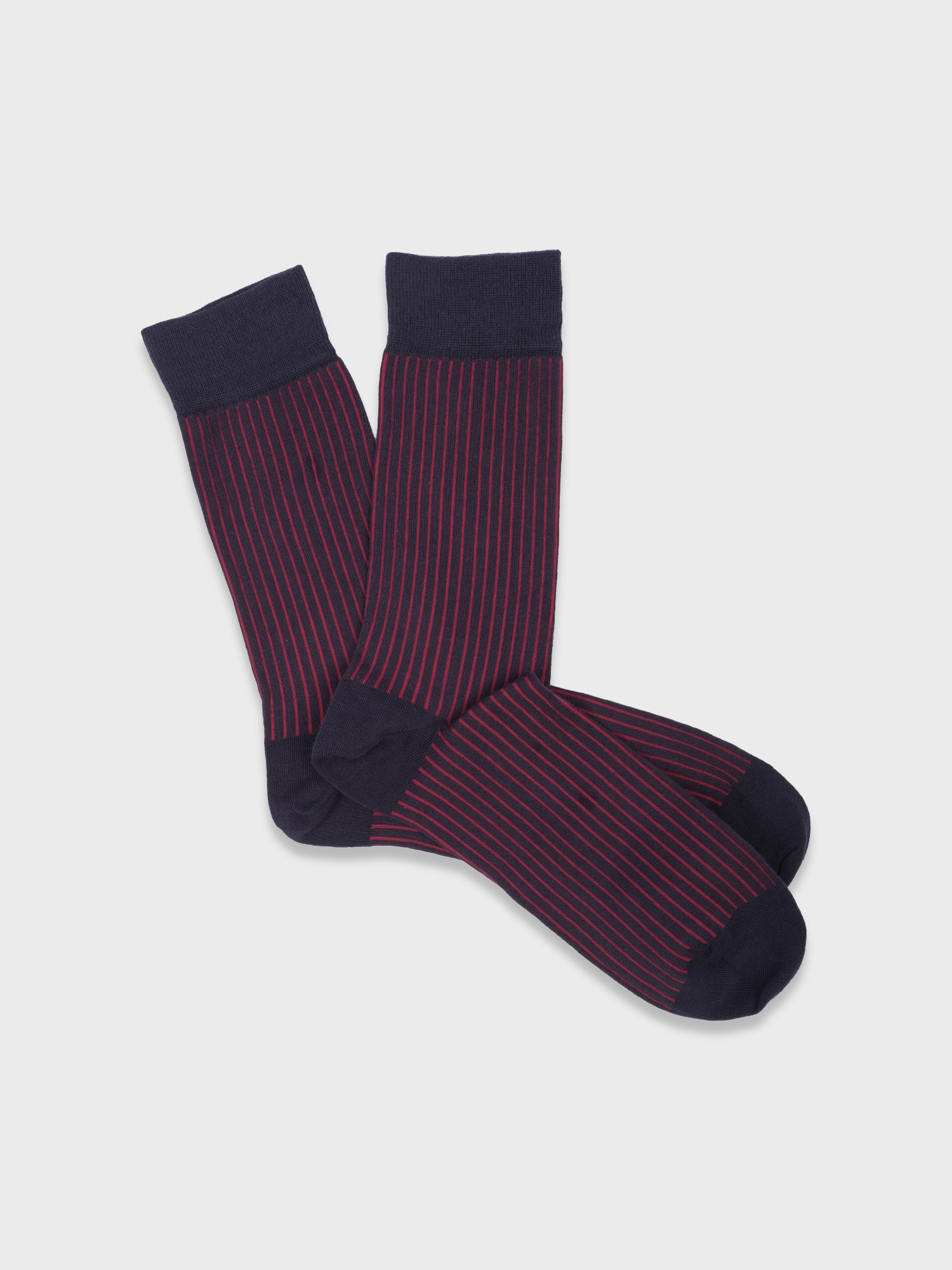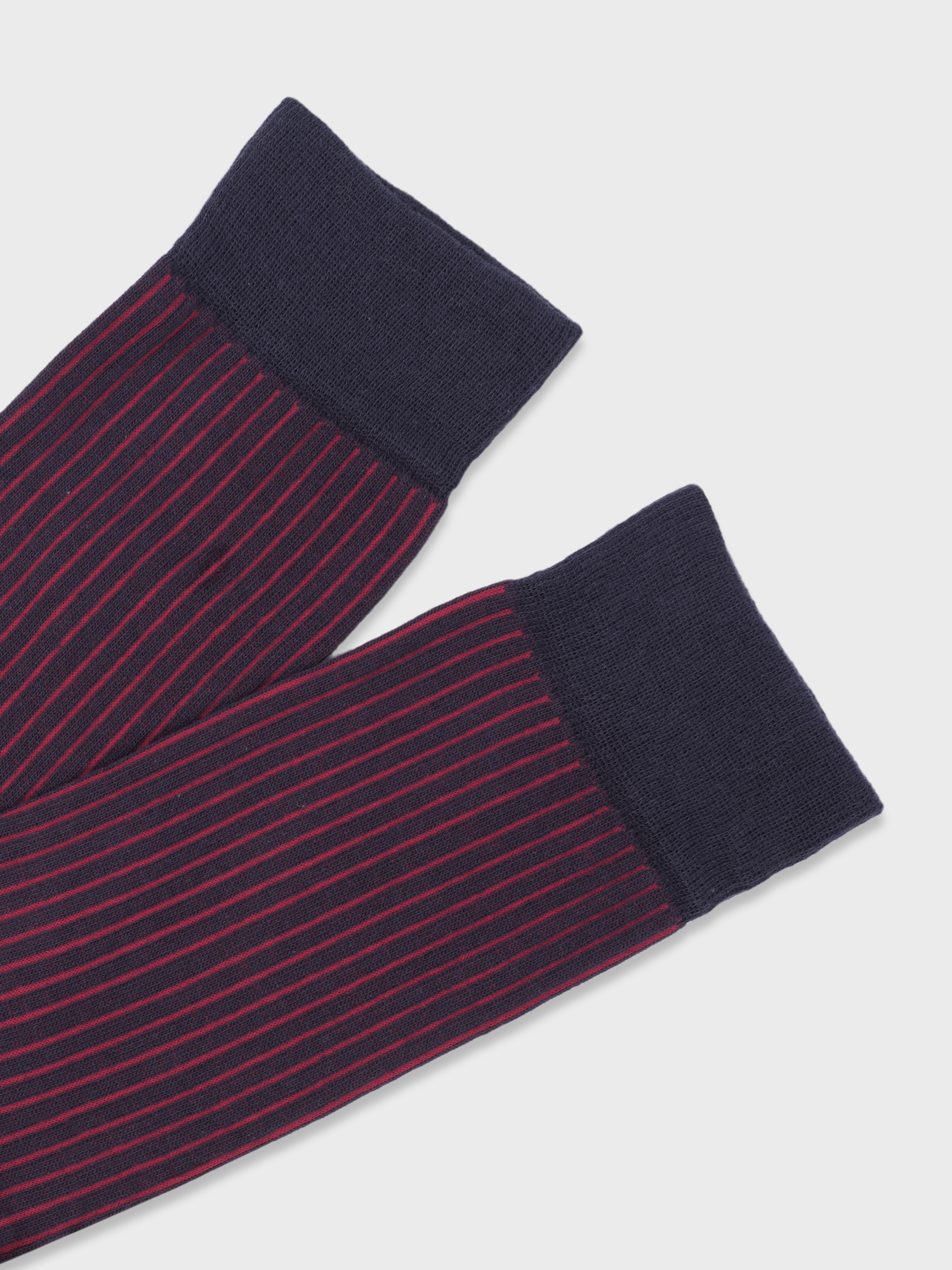 Мужские носки с узором в контрастную полоску произведены из хлопка, изделия из которого отличаются исключительной мягкостью. Добавление экстратонкой лайкры повышает прочность и долговечность модели, способствует идеальной посадке