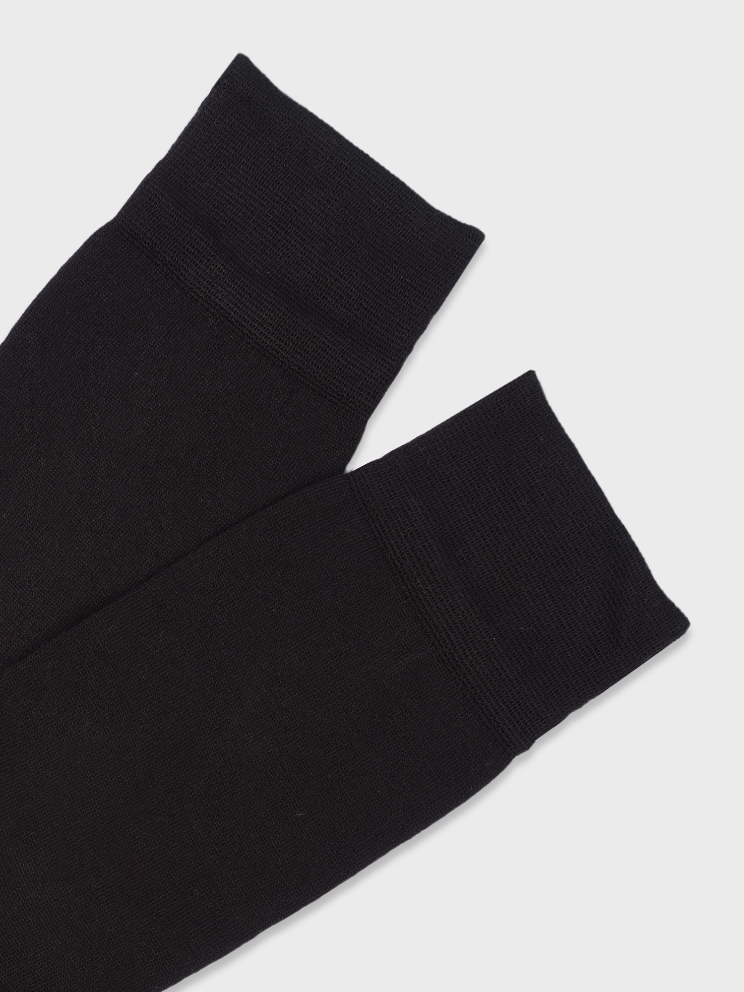 Мужские гладкие носки базового черного цвета произведены из бамбуковой пряжи, изделия из которой отличаются своими гиппоаллергенными свойствами, обладают охлаждающим и антибактериальным эффектом