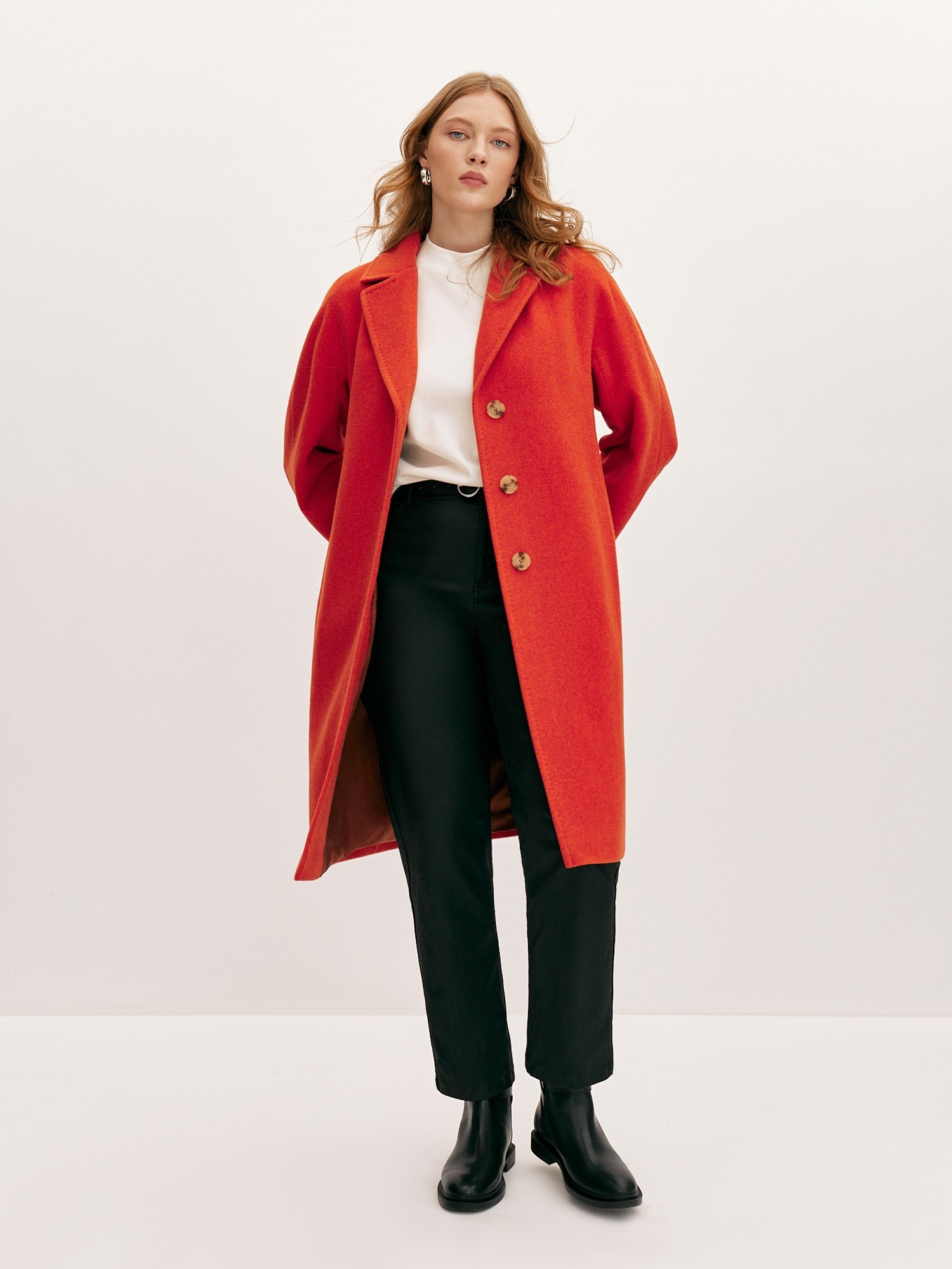 Однобортное пальто базового чёрного цвета. Тёплый полушерстяной материал отлично согреет в холодную погоду и защитит от дождя благодаря добавлению полиэстера. Лёгкая и комфортная подкладка на основе вискозы обеспечивает дополнительный комфорт. Прямой крой и длинный рукав со спущенным плечом обеспечивают комфорт, а отложной воротник с лацканами подчеркивает элегантный и стильный дизайн. Пальто прекрасно дополнит любой образ и станет верным спутником в холодное время года.