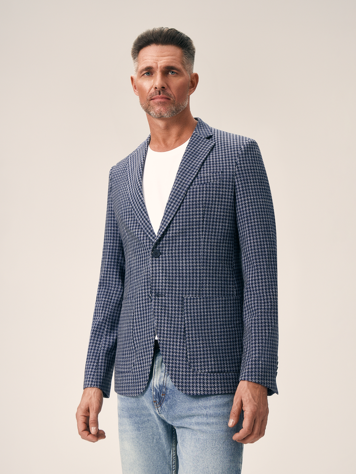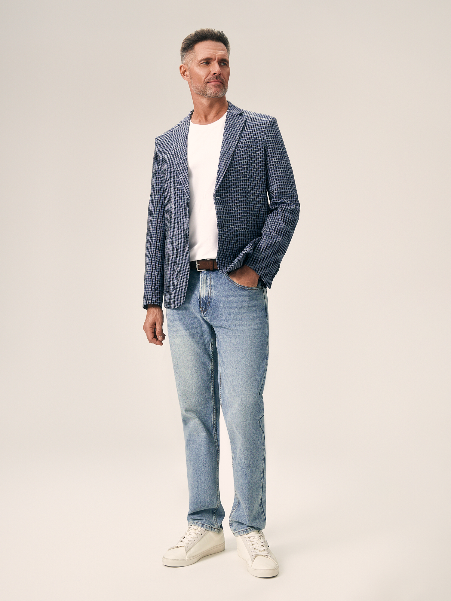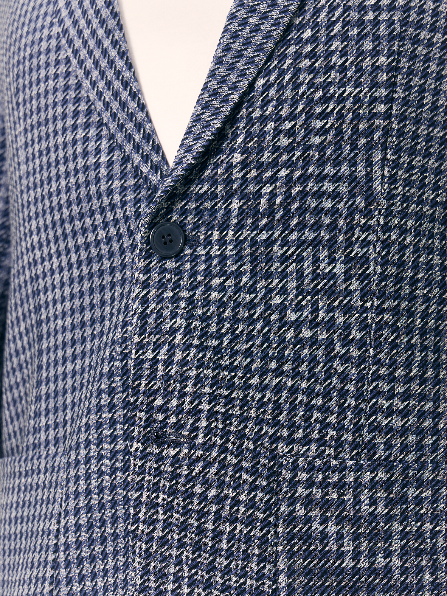 Однобортный, с классическим английским воротником, втачным рукавом с декоративной шлицей и пуговицами и закругленными бортами - блейзер с легендарным принтом pied-de-poule (рус. пье-де-пуль) исполнен в полуприлегающем силуэте. Правильная посадка обеспечена вертикальными вытачками и рельефами, а также небольшой шлицей по центральному шву спинки. В поддержку стиля смарт кэжуал модель дополнена боковыми накладными карманами и нагрудным карманом с листочкой. Особый комфорт изделию придает качественная вискозная ткань, она воздухопроницаема, долговечна и хорошо держит форму. Такой пиджак можно добавить в гардероб как блейзер, носить с джинсами, трикотажными брюками, а также создавать оригинальный многослойный образ с кардиганом ICG0023V. В то же время, классический принт "ломаная клетка" позволяет сочетать пиджак с костюмными брюками. Выбор наших стилистов для завершения костюмного образа - классическое бежевое пальто с дополнительным карманом IPD0018.