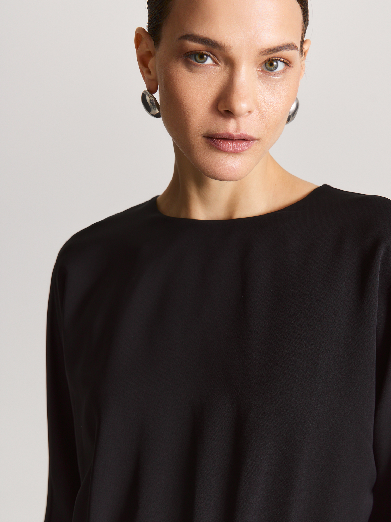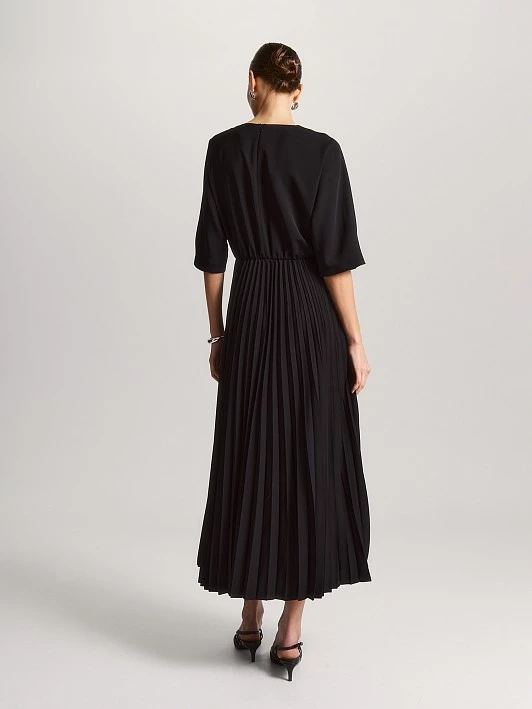 Универсальный черный цвет делает платье актуальным как для повседневной носки, так и для особых случаев.
