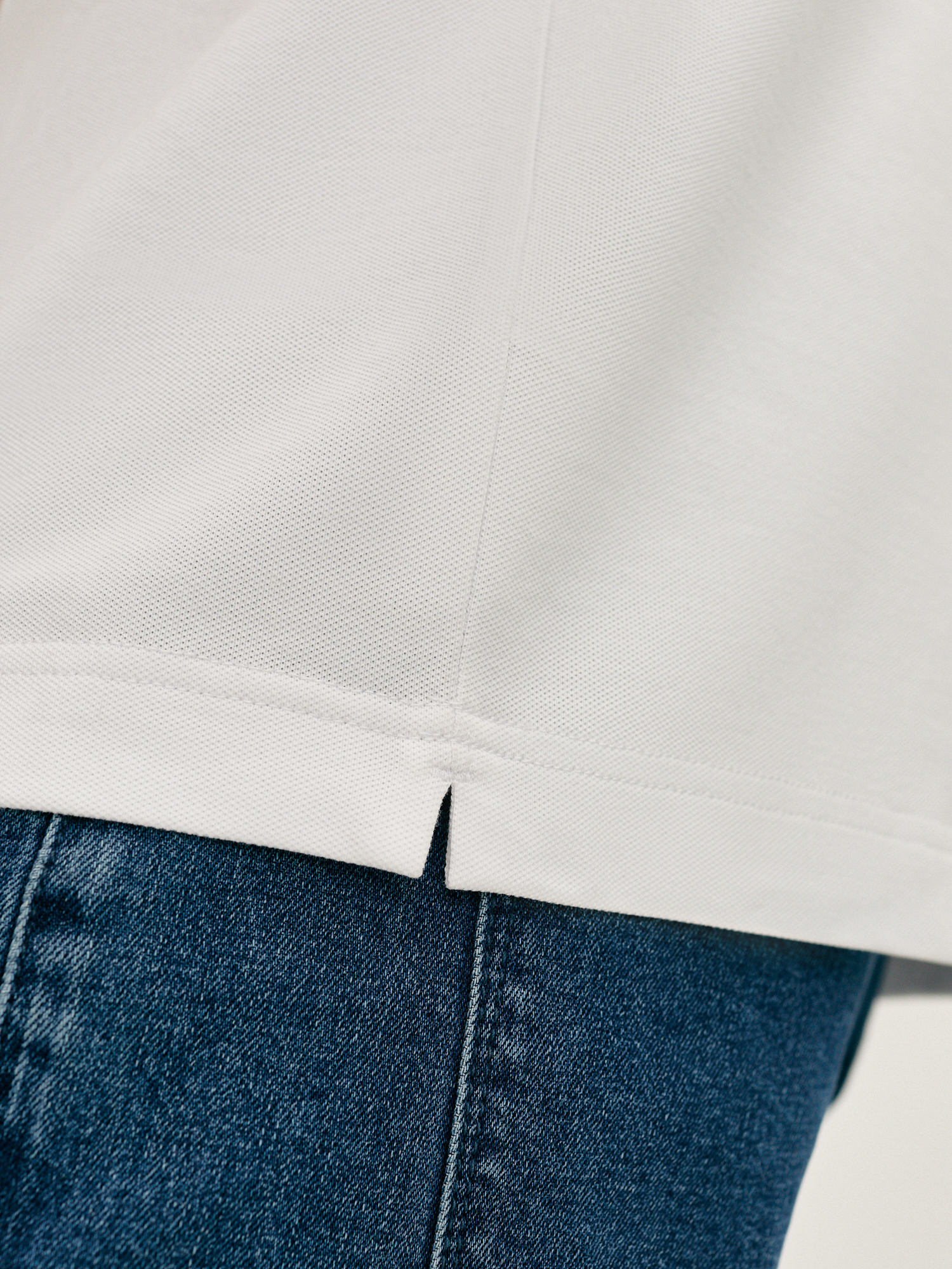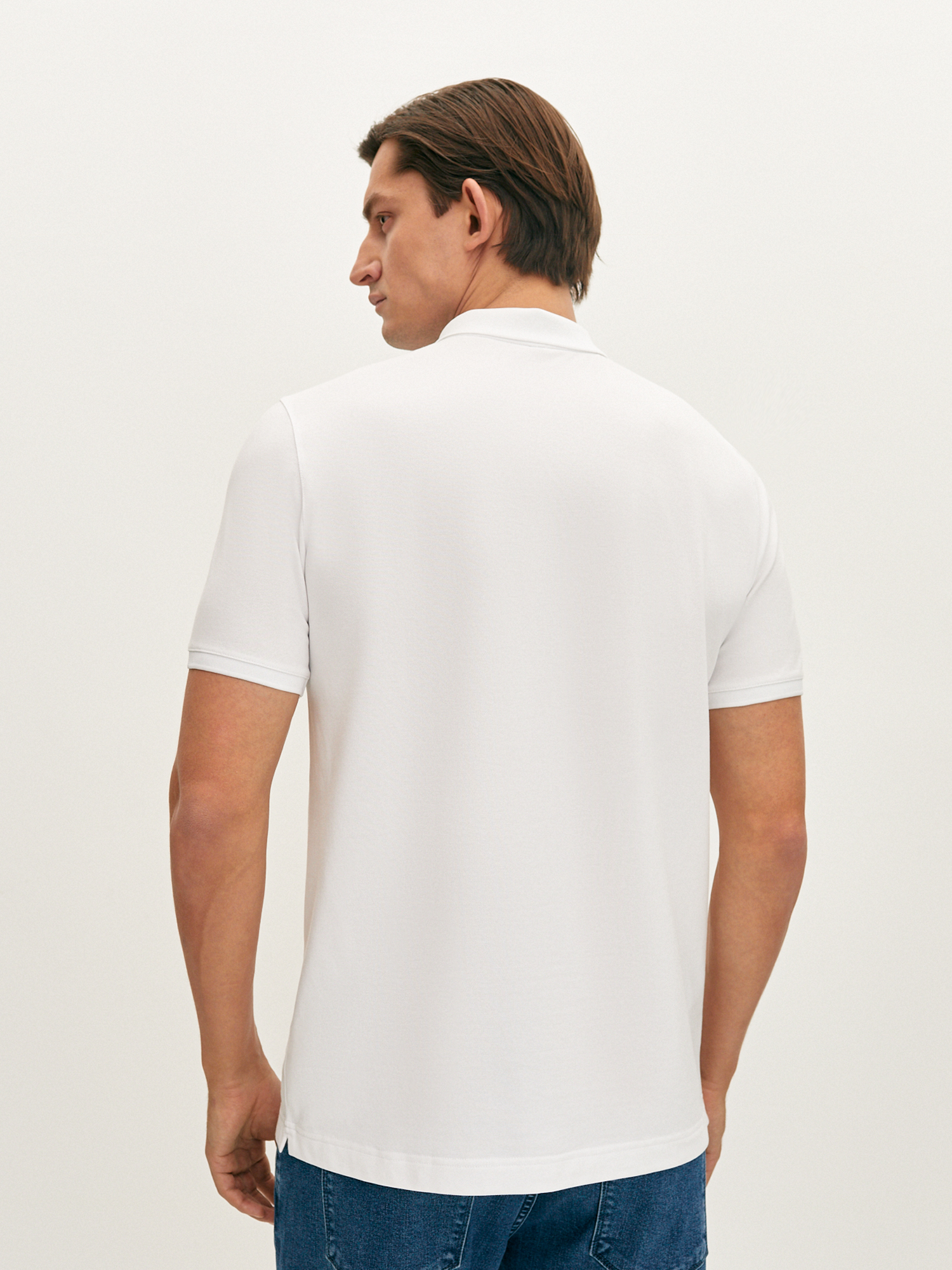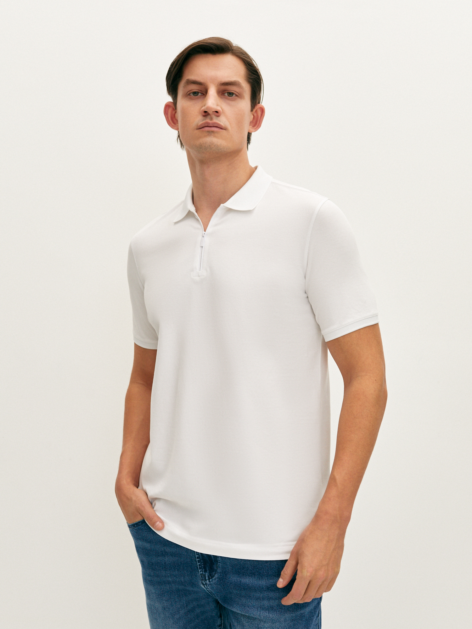 Базовое белое поло прямого силуэта с декоративными разрезами по бокам выполнено из мерсеризованного хлопка пике, обладающего гигроскопичными свойствами. Модель прямого силуэта с застёжкой на тесьму-молнию, коротким рукавом с манжетами и отложным воротником подойдет для всех типов фигур. Поло станет идеальной базой для гардероба современного мужчины, особенно в весенне-летний период. А в сочетании с джинсами и брюками составит стильный повседневный образ.