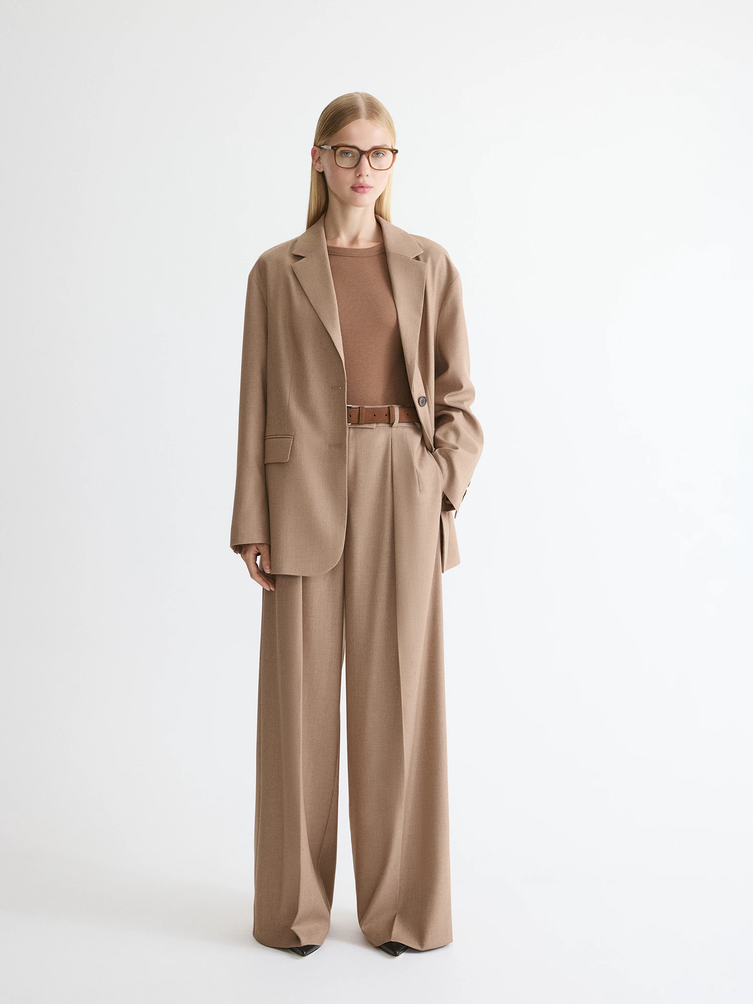 Бежевый кэмел универсален и позволяет брюкам стать основой базового гардероба, особенного в сочетании с пиджаком оверсайз JC016151. Отдельно или костюмом, такие модели одинаково уместны в офисе, на вечернем мероприятии, на прогулке.