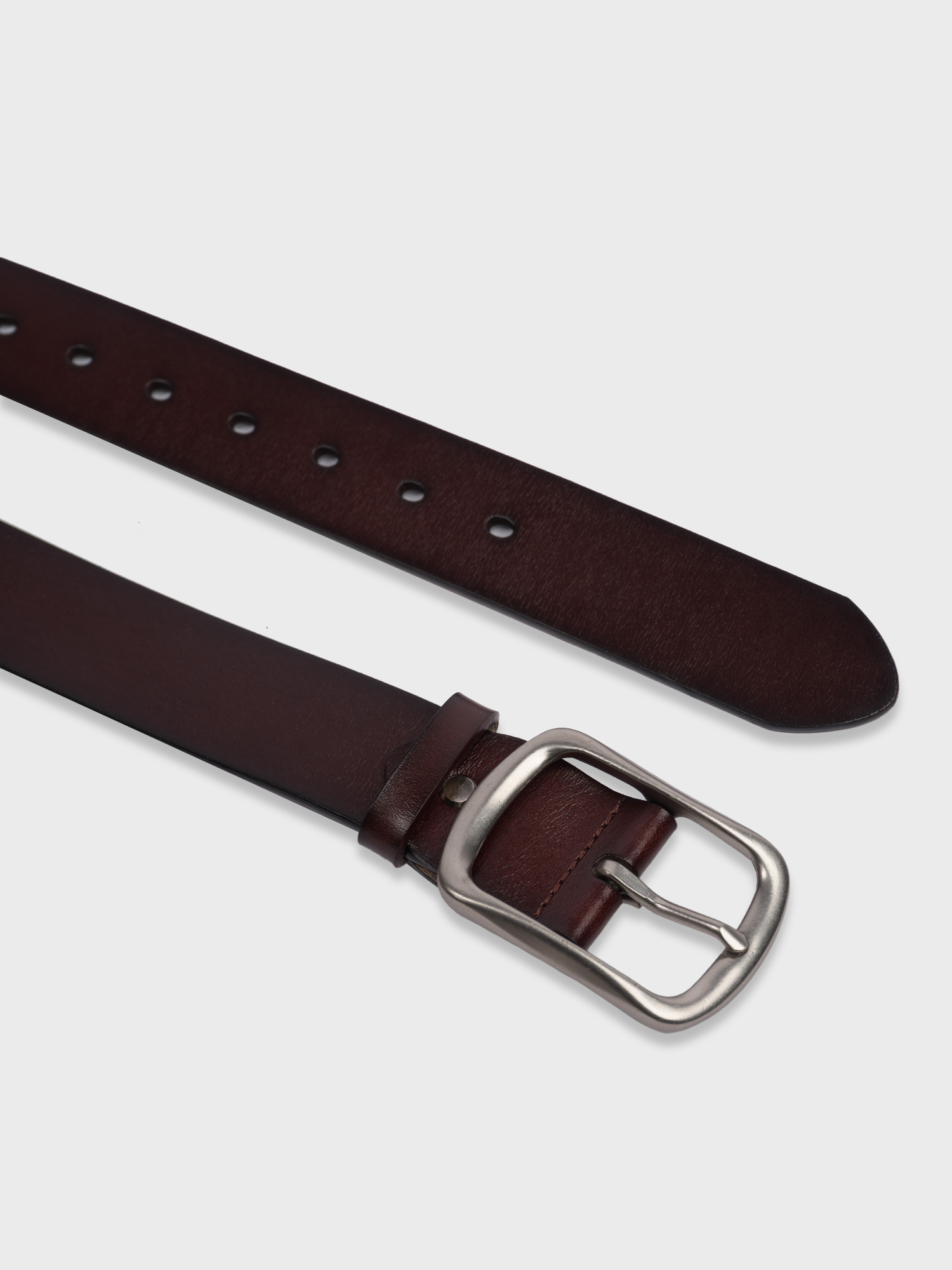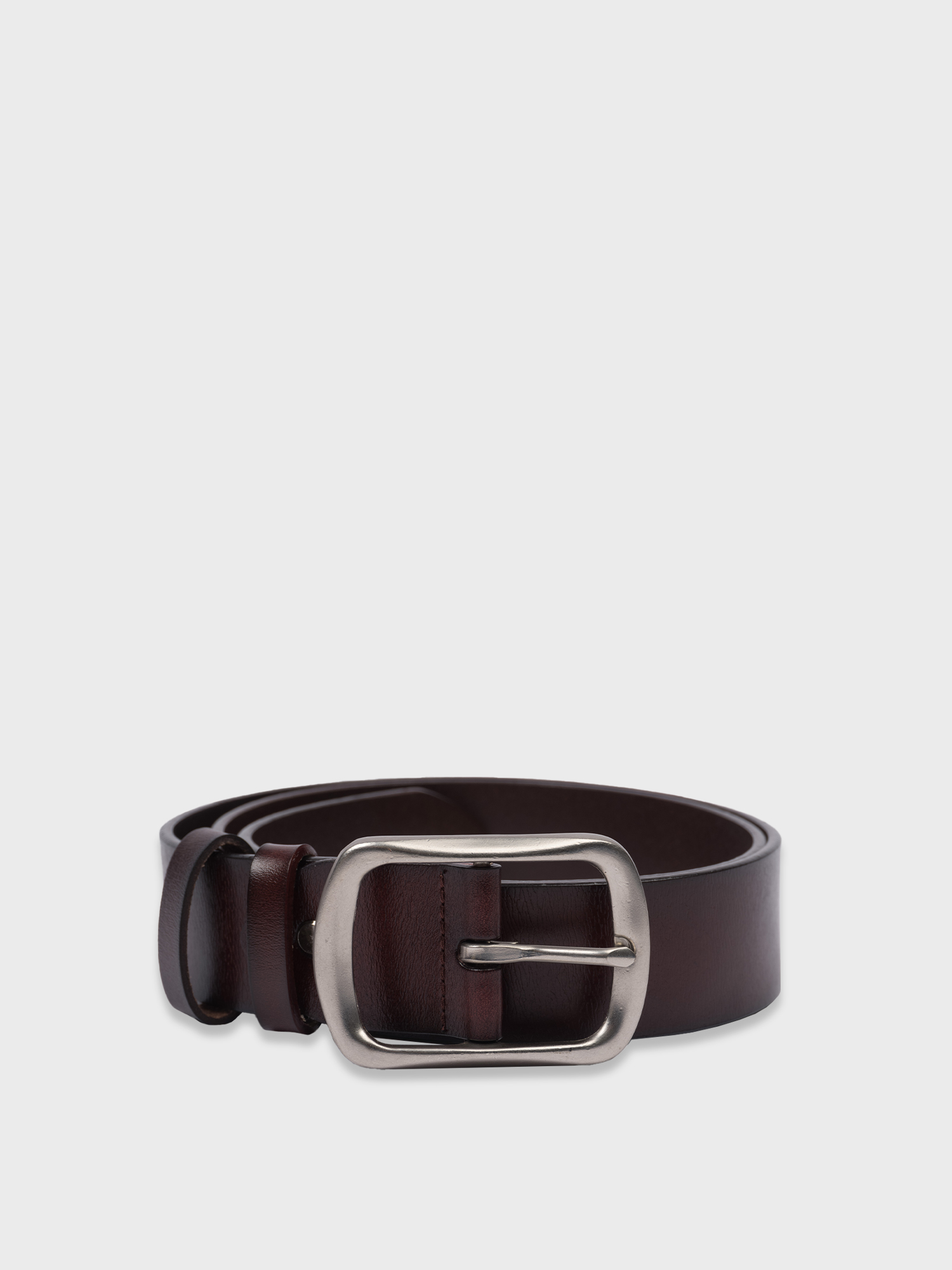Ремень из натуральной кожи коричневого цвета гармонично дополнит и классические брюки, и комфортные джинсы. Универсальный лаконичный дизайн с серебристой прямоугольной пряжкой. Ширина ремня 3,7 см