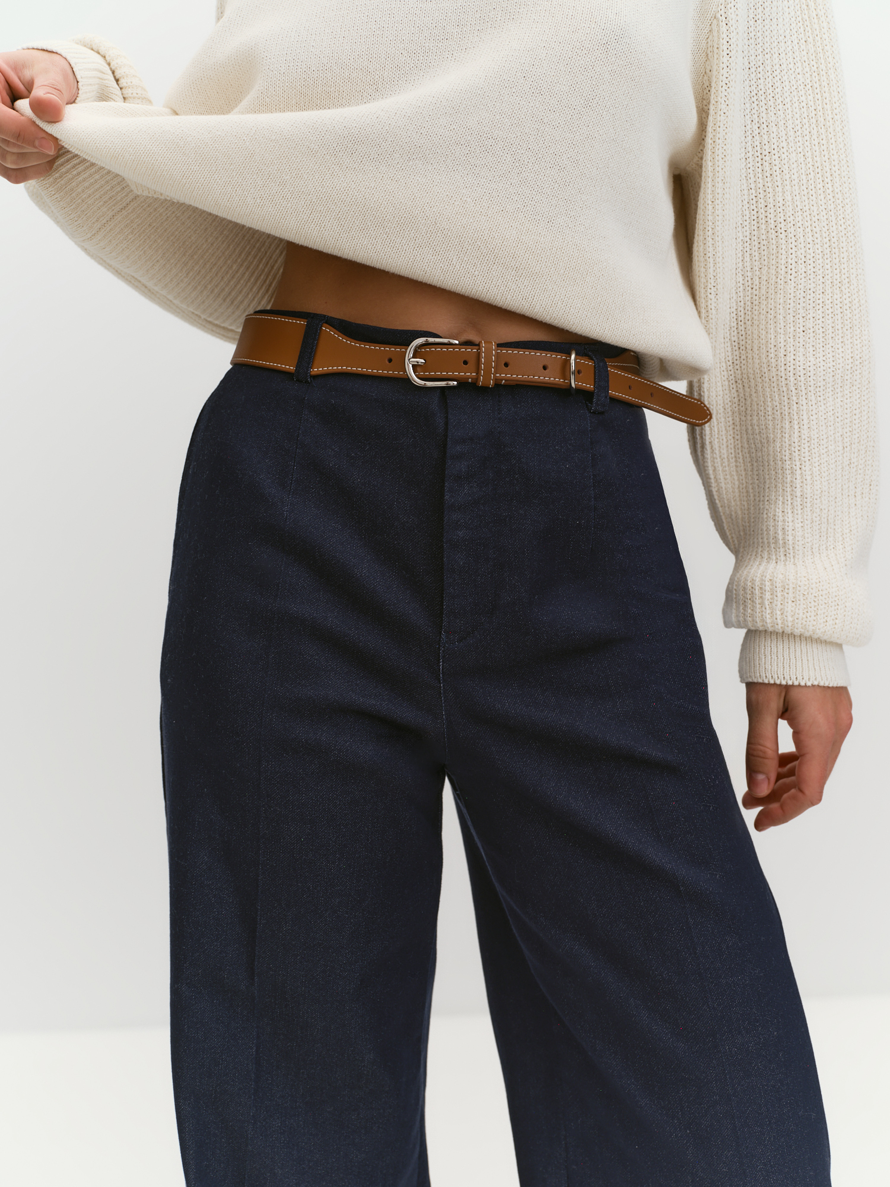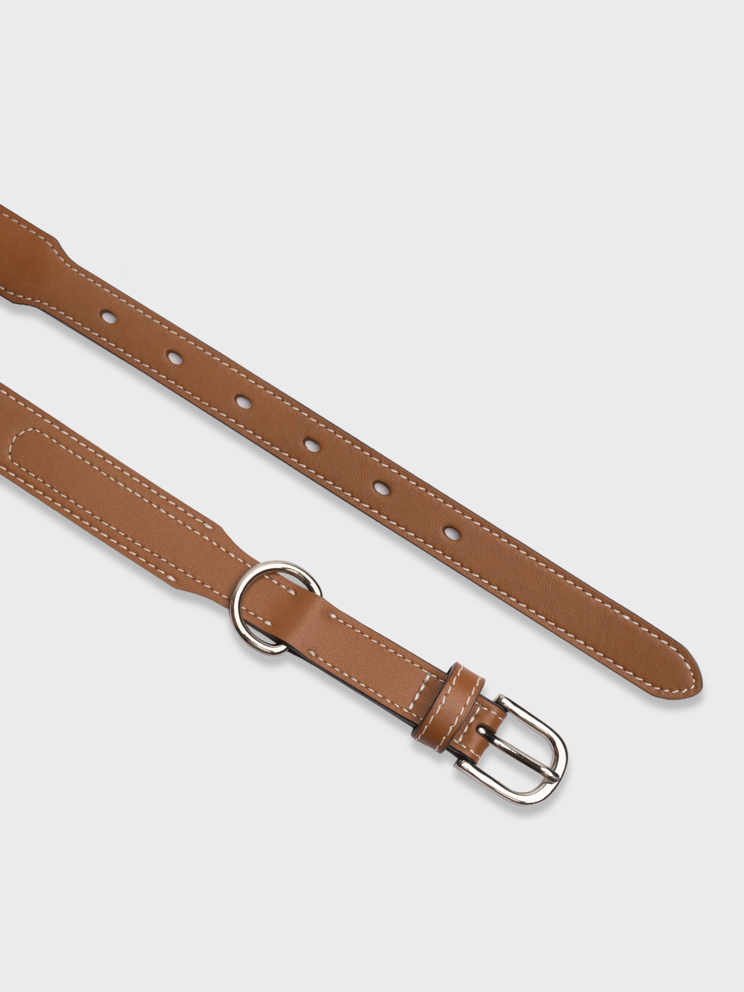 Ремень поможет расставить акценты, подчеркнет талию или бедра и логично завершит образ. Именно поэтому стилисты советуют носить этот аксессуар и тогда, когда брюки сидят идеально. Ремень из натуральной кожи в коричневом цвете с контрастной светлой строчкой, с неброской серебристой закругленной пряжкой и возможностью дополнительной фиксации наконечника - элемент базового гардероба. Ширина основной части ремня 2,1см, к пряжке он сужается, что визуально делает талию еще тоньше. Такой классический кожаный ремень легко подобрать под сумку, обувь, на весну, лето, осень, зиму, на подарок маме, сестре, подруге.