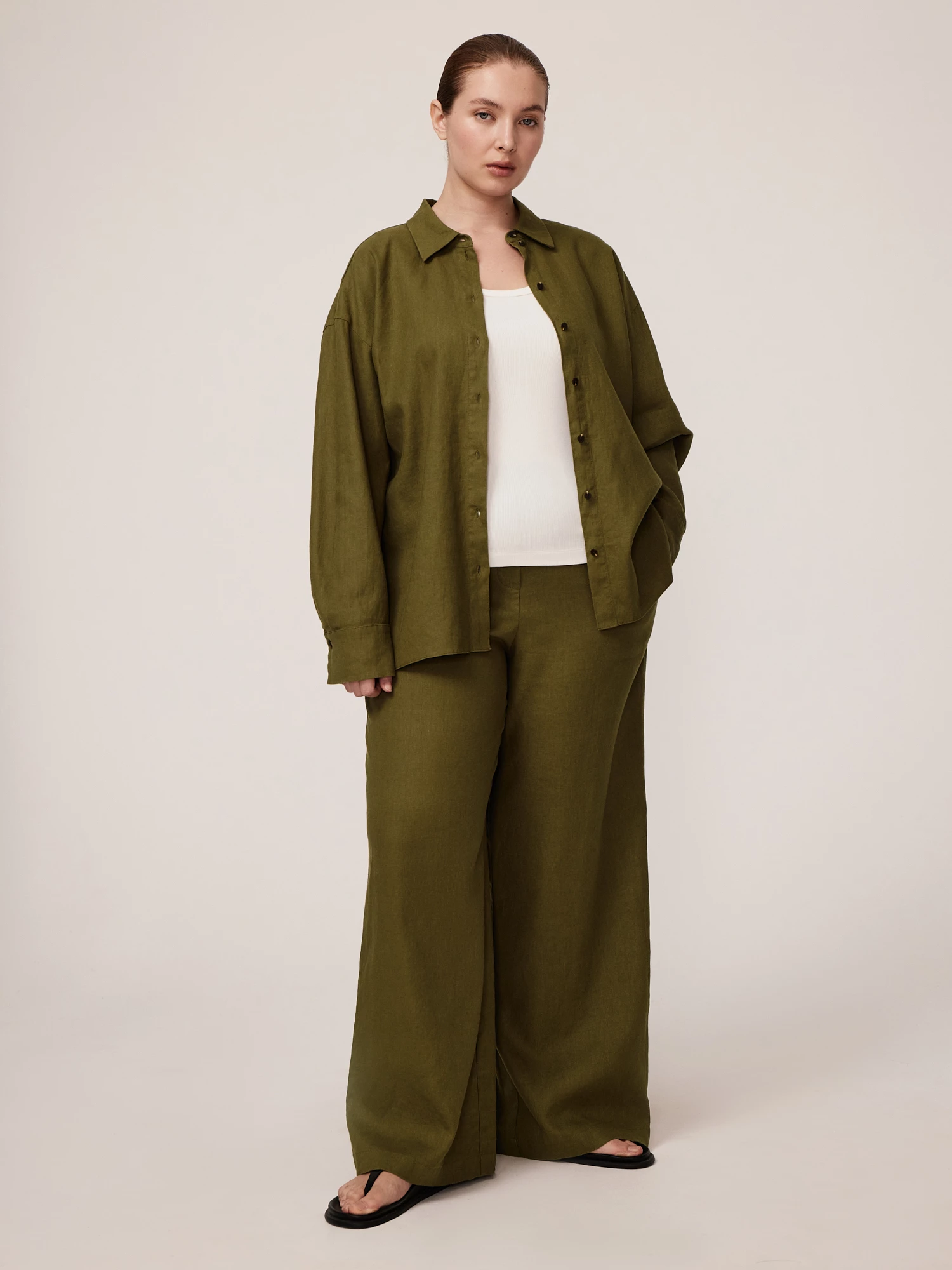 Бренд: LalisЦвет: ЗеленыйСостав: Лен - 100%Рост: 177Артикул: BL1593Параметры модели: 96 - 76 - 108Размер на модели: 50Коллекция: THE ENDLESS SEA