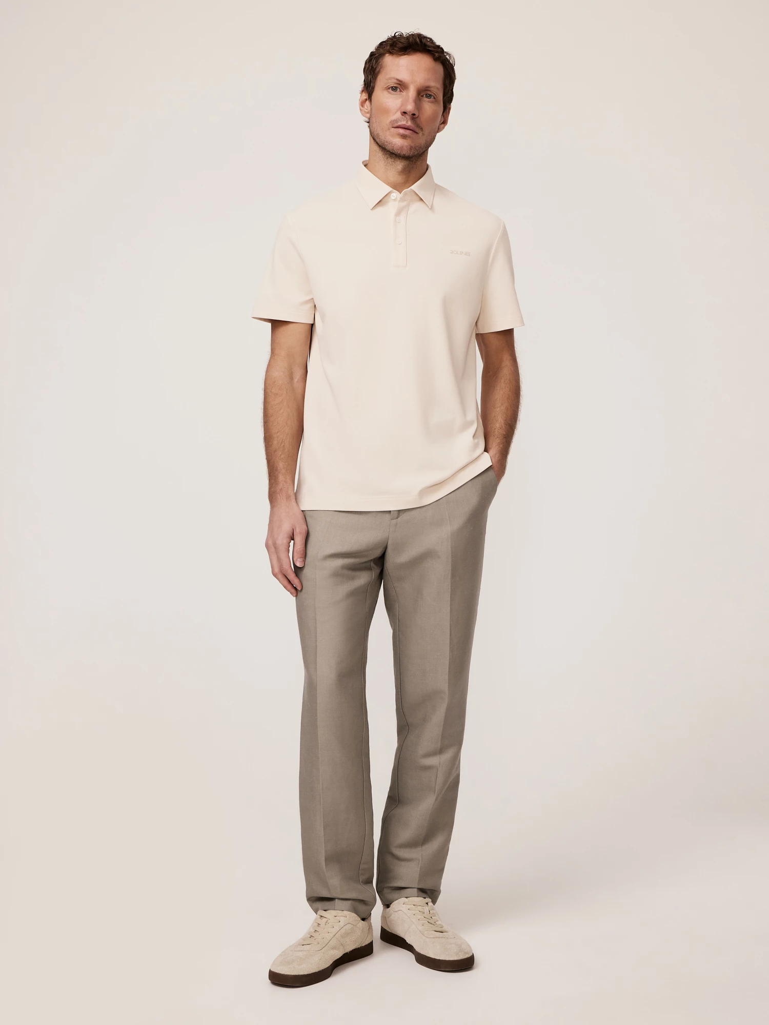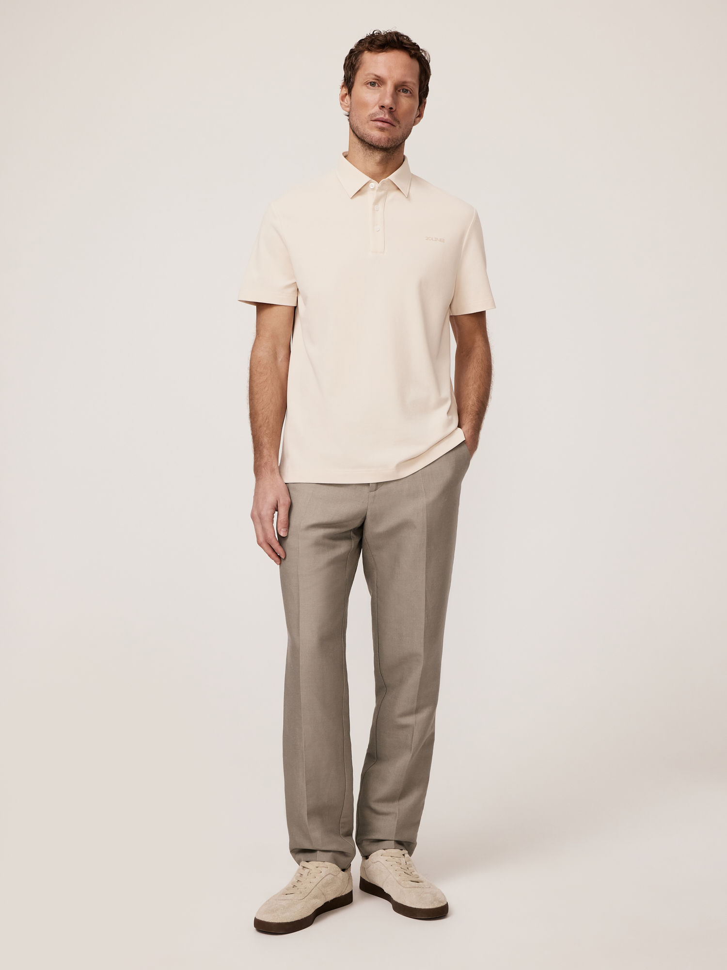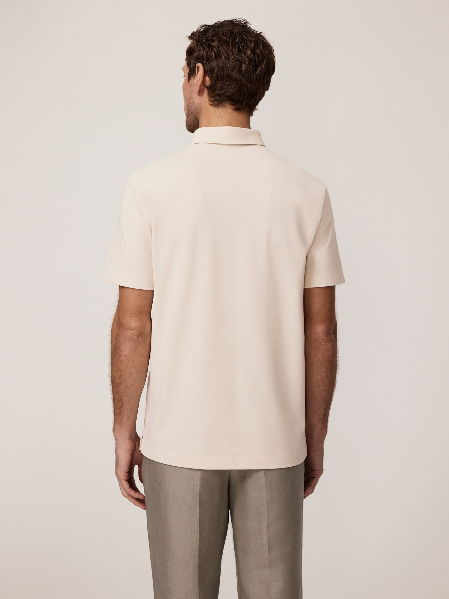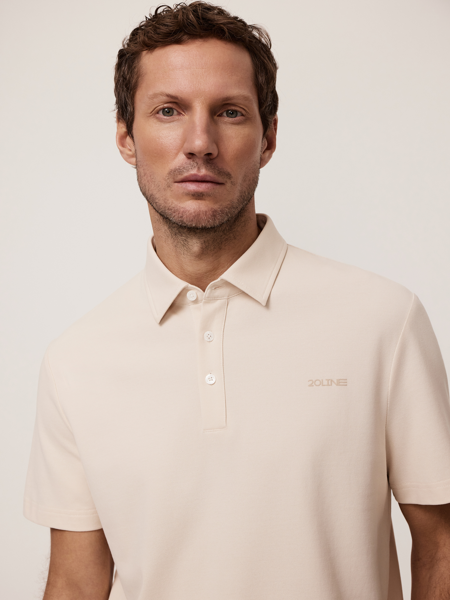 Рубашка-поло традиционно является олицетворением комфорта, стиля, благородной элегантности и непринужденности кэжуал эстетики. Благородный трикотаж-пике в актуальном светло-бежевом оттенке сочетает в себе лучшие качества природных и современных материалов: натуральный хлопок в составе обеспечивает воздухопроницаемость и мягкость, полиэстер добавляет прочность, а эластан формоустойчивость. Для ткани "пике" характерно уникальное переплетение "соты", создающее объемную текстуру и придающее полотну особый характер и респектабельный вид. У трикотажа пике высокие эксплуатационные характеристики – он прочный, износостойкий, очень хорошо пропускает воздух и впитывает влагу за счет высокого содержания хлопка. Классический крой с отложным воротником на аккуратной стойке и застежкой на три пуговицы придает модели собранный и узнаваемый вид. Короткий рукав обеспечивает комфорт в теплую погоду, а брендированный принт, нанесенный с помощью высокоточной печати по ткани на собственном производстве, добавляет образу индивидуальности, без ущерба общей гармонии. Поло одинаково хорошо дополнит и повседневный образ с джинсами, и более формальный ансамбль с брюками чинос, а также послужит альтернативой классической рубашке, завершив костюмный look. Модель для мужчин, которые ценят комфортную и универсальную одежду, созданную с вниманием к деталям.