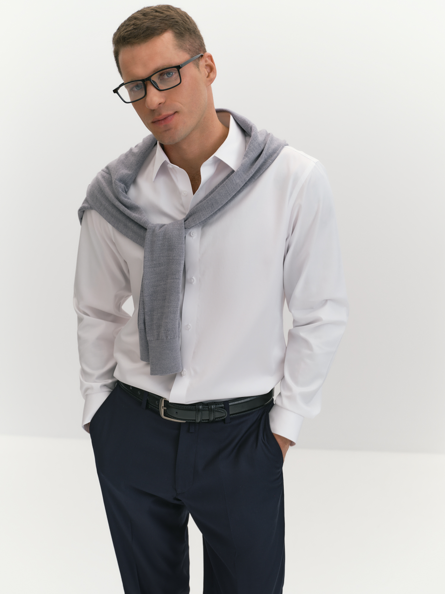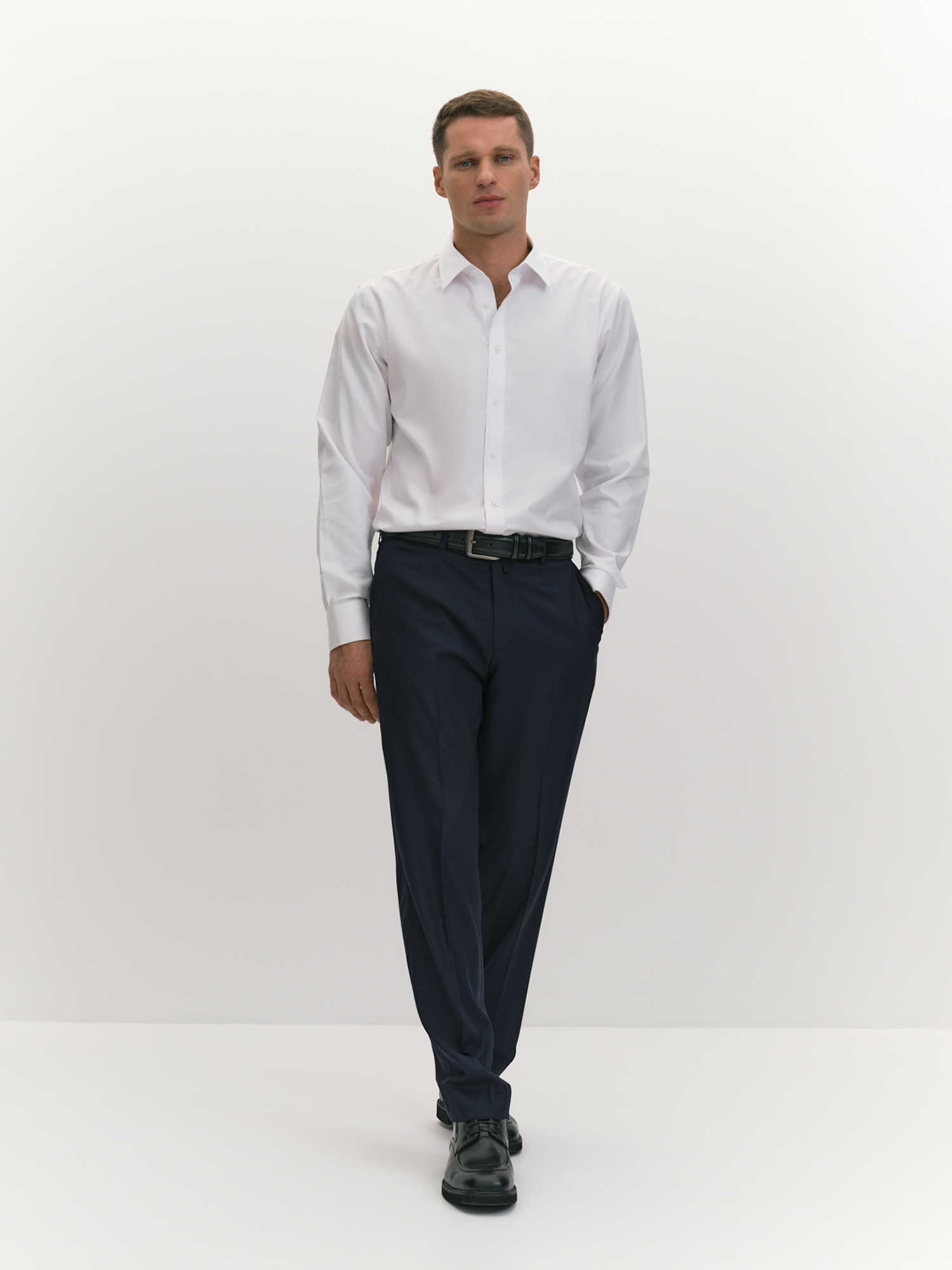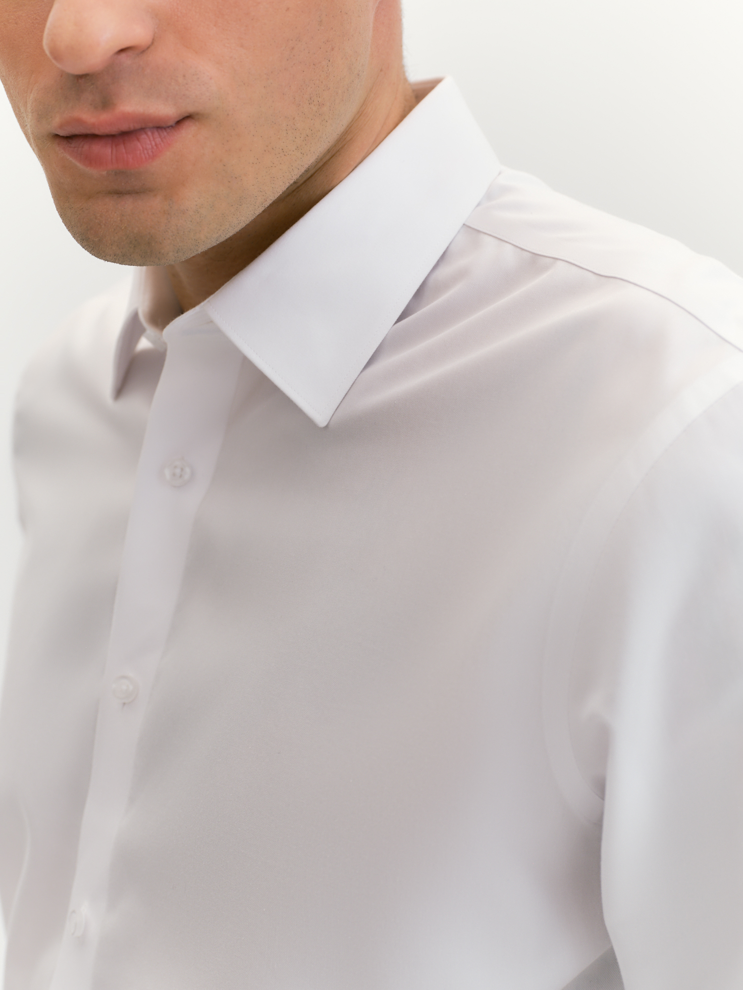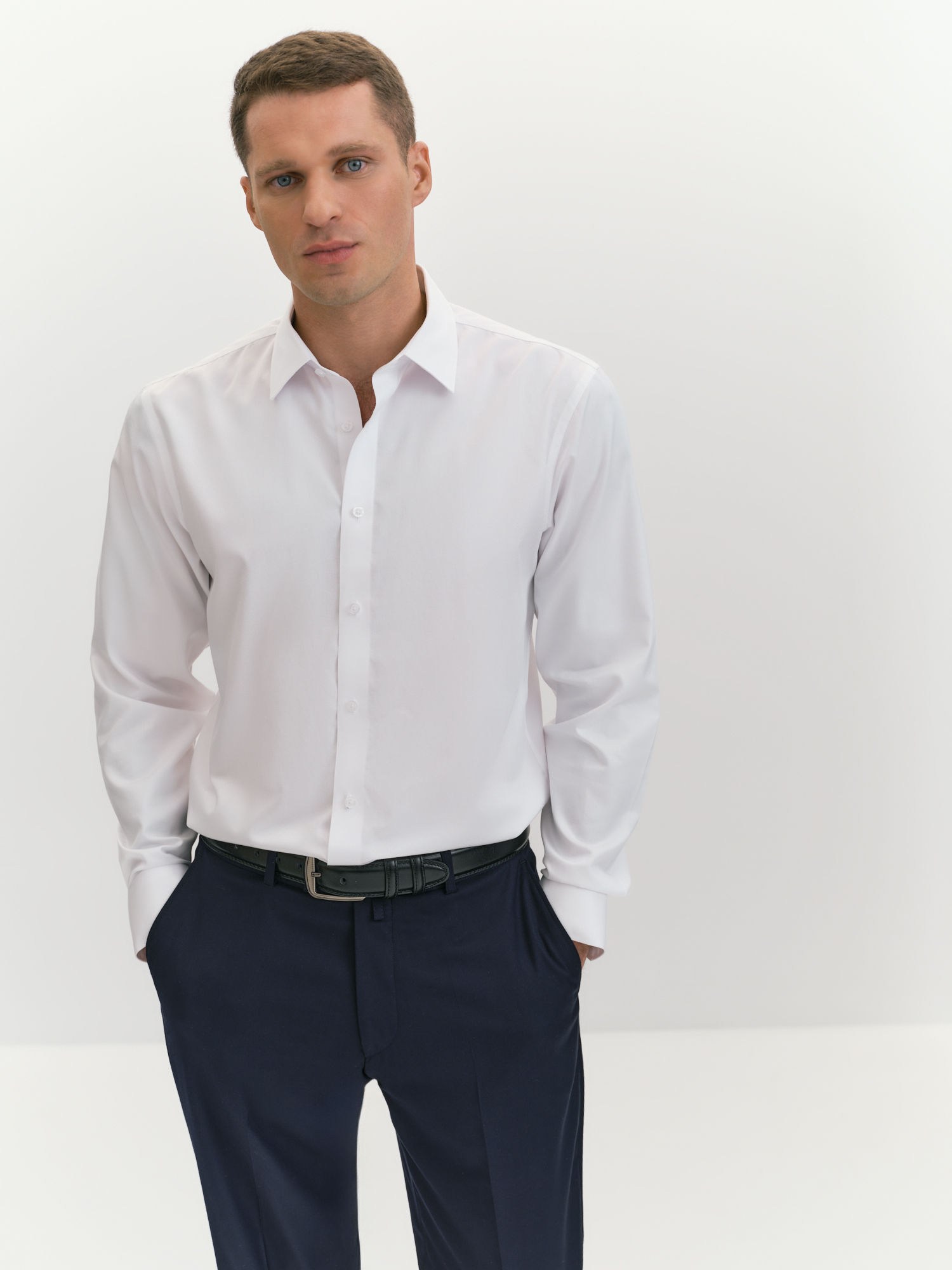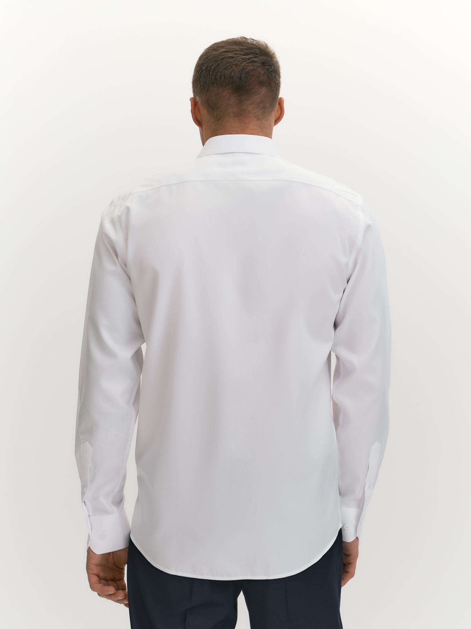 Технология non iron (или "не требует глажки") создана для занятых мужчин, ценящих практичность и стиль, она упрощает уход за рубашкой, сохраняя её опрятный вид даже после стирки. Non iron - это специальная обработка ткани, которая позволяет сохранить опрятный вид рубашки, минимизируя необходимость утюжки. Модель лаконичного дизайна сочетает строгость и современность. Отложной воротник на отрезной стойке и застежка на планку с пуговицами дисциплинируют, а узкая кокетка на спине и закругленный низ придают современный акцент, подчеркивая внимание к деталям. Рубашка выполнена из хлопка, который обеспечивает высокий уровень комфорта, гипоаллергенность и воздухопроницаемость, делая её приятной для ношения в течение всего дня. Белый цвет подчеркивает элегантность и статусность, легко сочетаясь с любым стилем одежды. Он освежает образ и легко комбинируется с другими элементами гардероба. Крой рубашки с силуэтом regular обеспечивает комфортную посадку, не стесняя движений. Отложной воротник на косточках сохраняет форму и добавляет рубашке элегантности, а длинный втачной рукав с манжетом позволяет регулировать длину, создавая аккуратный вид. Узкая кокетка на спине улучшает посадку, а закругленный низ добавляет удобство при ношении навыпуск. Такая рубашка подчеркнет стиль и добавит образу элегантности в любой ситуации.