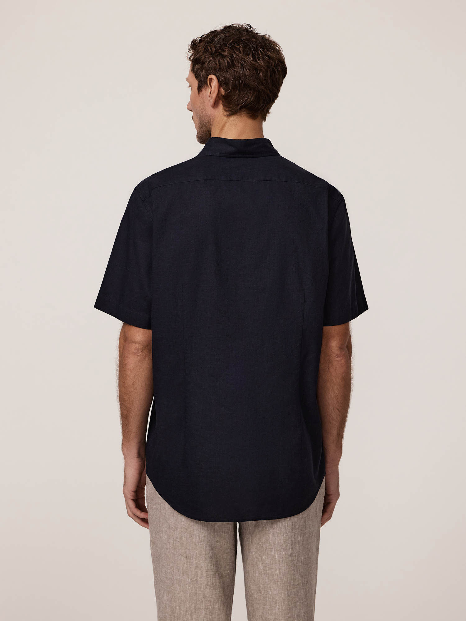 Рубашка повседневного стиля с элементами классической эстетики легко составит основу базового гардероба теплого сезона. Отложной воротник на невысокой отрезной стойке дисциплинирует образ и расширяет стилистические возможности, позволяя с легкостью трансформировать лук от офисного варианта до расслабленного городского образа просто расстегнув верхние пуговицы. Качественный дуэт хлопка и льна отвечает за комфорт: хлопок обеспечивает мягкость и гипоаллергенность, а лен добавляет благородную фактуру и уникальную способность к терморегуляции. Такая ткань создана для того, чтобы кожа дышала, оставаясь при этом сухой, несмотря на жаркую погоду. Строгий темно-синий — это воплощение универсальной элегантности, прекрасно сочетающееся с базовыми оттенками гардероба. Крой slim подчеркивает фигуру, создавая аккуратный силуэт без стесненности движений. Отметим внимание к деталям: небольшая кокетка на спине анатомически правильную посадку, а нагрудный карман с брендированной вышивкой, выполненной на собственном производстве, добавляет индивидуальности и узнаваемости. Такая рубашка - идеальный выбор для тех, кто ценит в одежде сочетание практичности и эстетики.