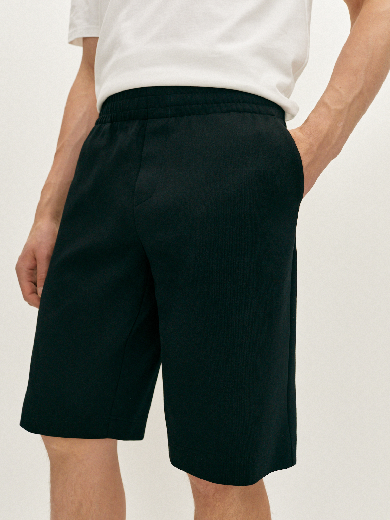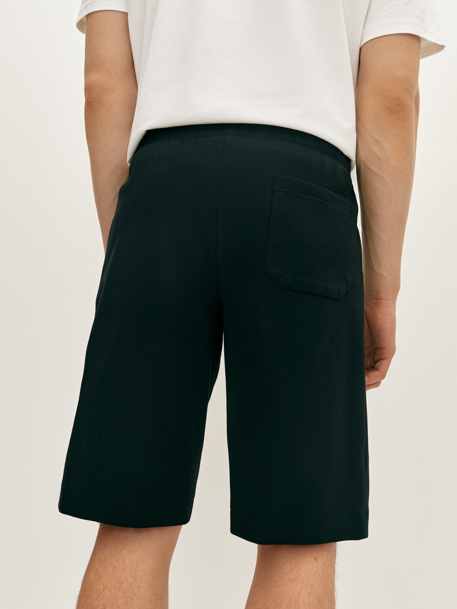 Черные шорты свободного кроя станут отличным выбором для базового гардероба. Выполненные из плотного смесового трикотажа на основе хлопка, они обладают гигроскопичными свойствами и отлично держат форму, а свободный силуэт обеспечивает свободу движений. Модель длиной до колена с имитацией гульфика, с комфортным поясом на резинке и потайным шнуром, с косыми боковыми карманами и накладным карманом сзади. Шорты прекрасно сочетаются с футболками из нашей коллекции и составят актуальный образ на каждый день.