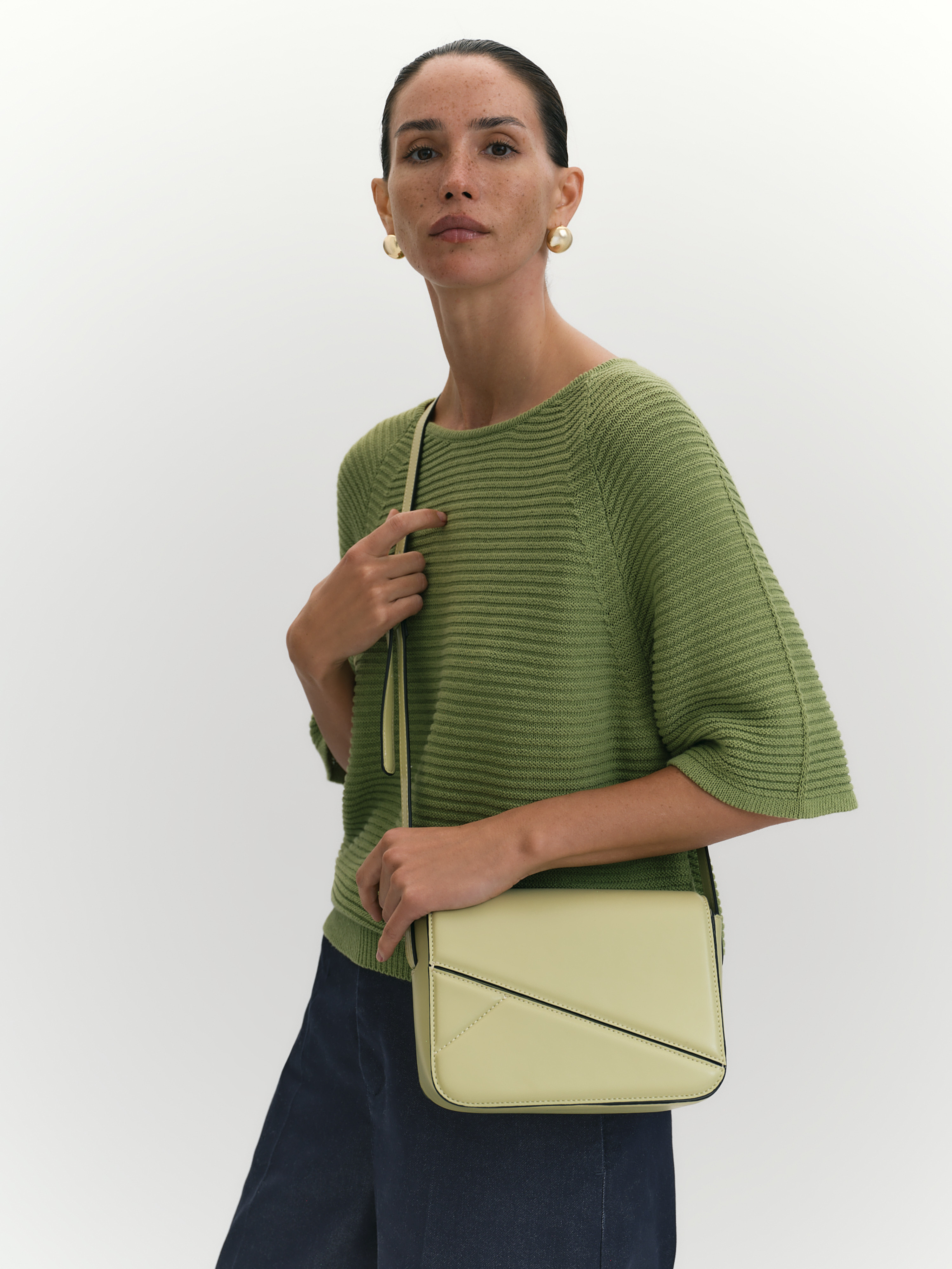 Вариация на тему flap bag, или сумки-конверта, имеет жесткий каркас, широкий асимметричный откидной клапан и ремень с возможностью регулировки длины. Стильную сумку с таким ремнем удобно носить и на плече, и в руках, она аксессуар и офисный, и вечерний. Такую модель легко сочетать с поясами и ремнями в ярких или базовых цветах, она подойдет на весну, лето, осень, на подарок маме, сестре, подруге.