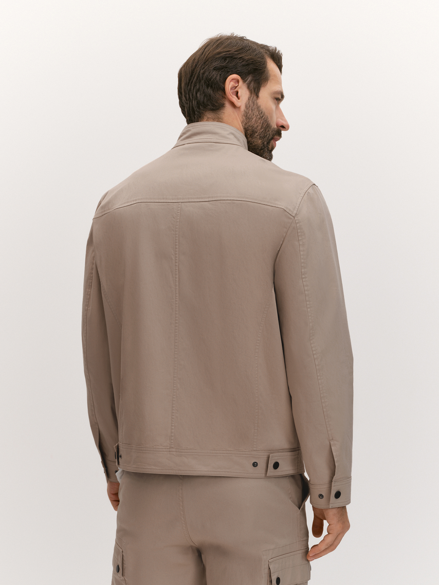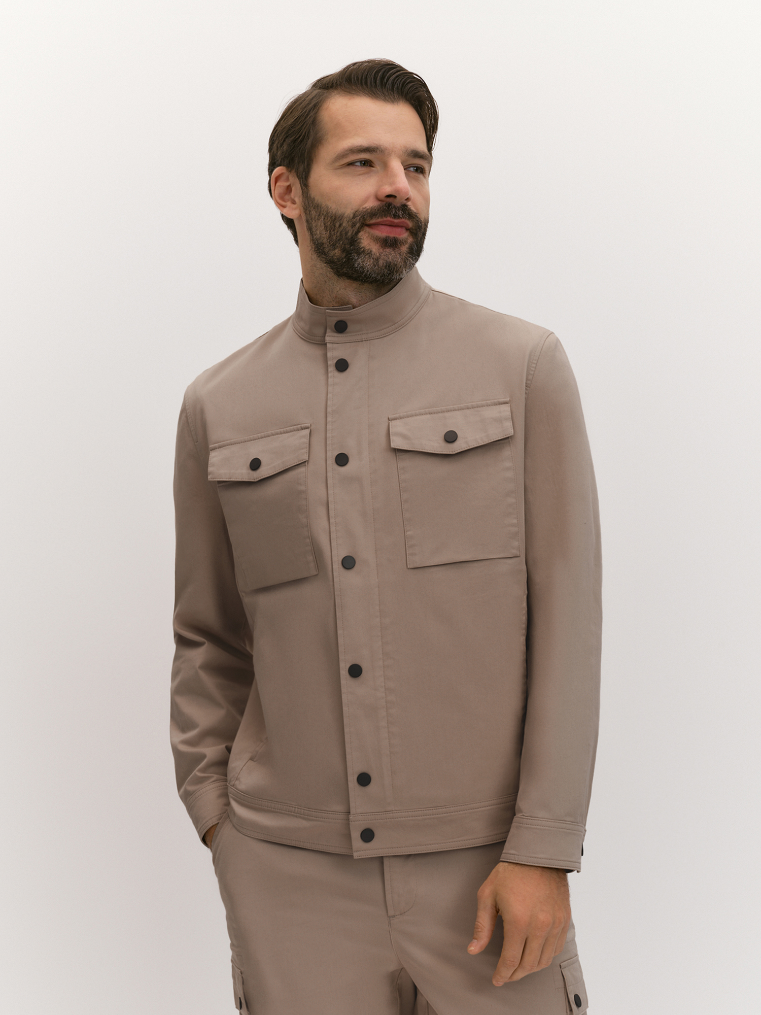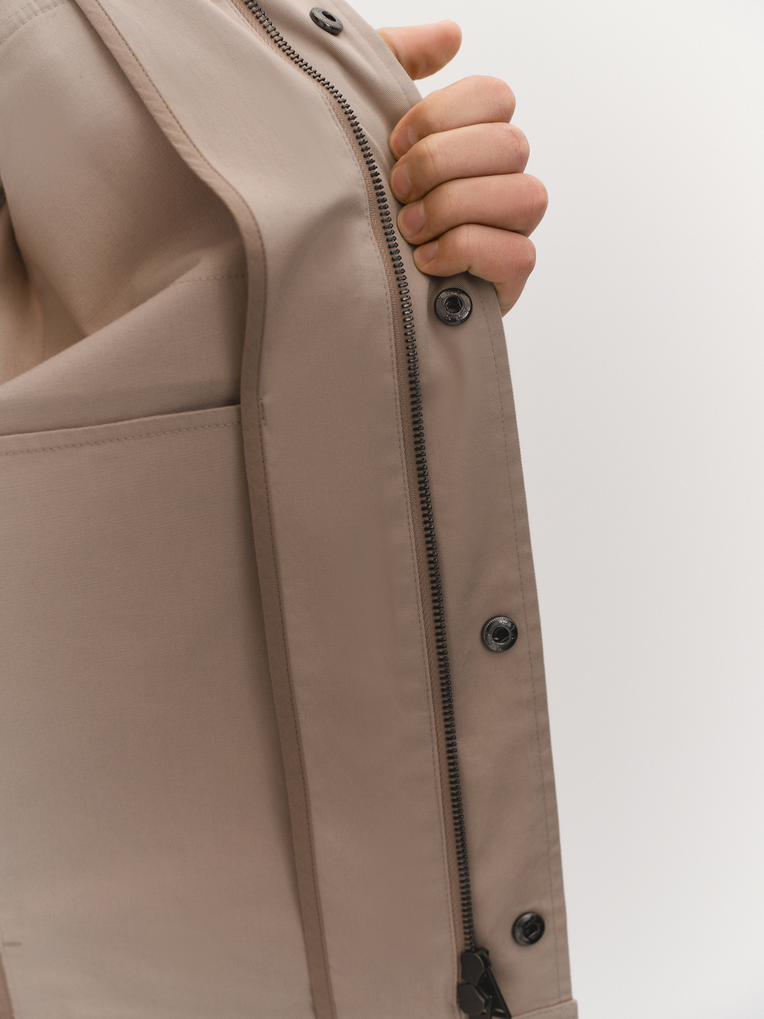 Куртка силуэта regular обеспечивает хорошую защиту от прохладного весеннего ветра благодаря актуальному в этом сезоне отрезному воротнику-стойке, застежке на молнии, дополненной ветрозащитным клапаном на кнопках и планке по низу изделия, обеспечивающей комфортное прилегание по бедрам и имеющей возможность регуляции. Дополнили модель вертикальными рельефами и кокеткой по спине для лучшей посадки, а также накладными функциональными карманами с клапанами для необходимых мелочей. Темные матовые кнопки контрастны к основному цвету и придают изделию завершенный вид. Выбрали для ветровки турецкую ткань плотного переплетения на основе хлопка. Хлопок обеспечивает естественность, воздухопроницаемость и комфорт, а небольшой процент эластана придаёт изделию формоустойчивость, что позволяет свободно двигаться. Грейдж — grey(серый) + beige(бежевый) = greige - нейтрален, любим дизайнерами и находится вне времени и трендов, что позволяет ему быть безнаказанно универсальным.