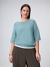 Выбрали для джемпера полуприлегающего силуэта из качественной итальянской хлопковой пряжи фактурное переплетение, формирующее выраженные поперечные полосы. Создали модель с круглым вырезом и прямым рукавом-реглан с удобной длиной 1/2. Горловина, низ изделия и манжеты связаны резинкой, в целом детали вывязаны точно по лекалу на японской плосковязальной машине Shima Seiki и соединены на кеттельном оборудовании особым эластичным швом по технологии "петля в петлю". Благодаря такому способу производства, джемпер в актуальном бирюзовом оттенке "брызги прибоя" будет хорошо держать форму и долго прослужит.