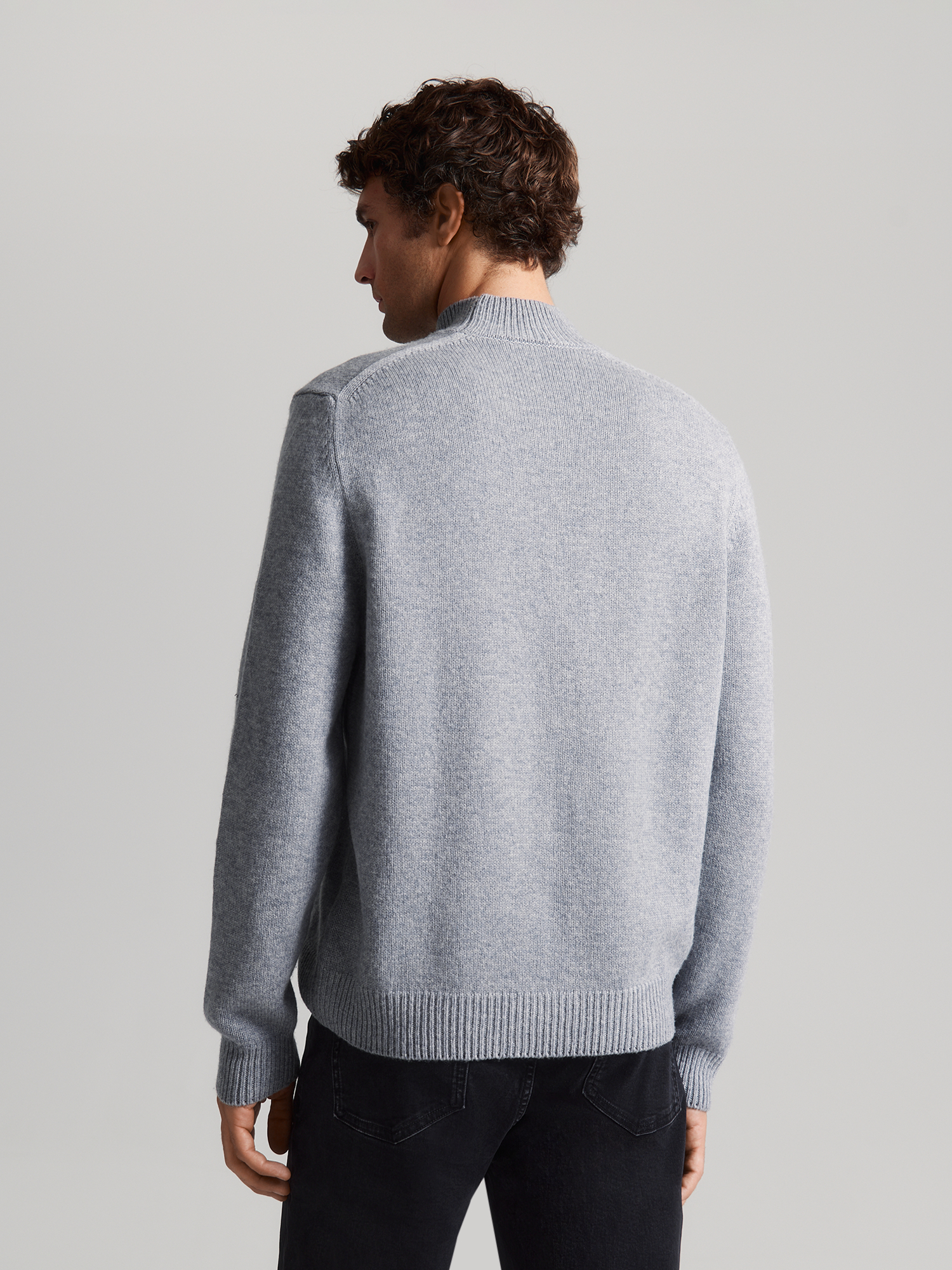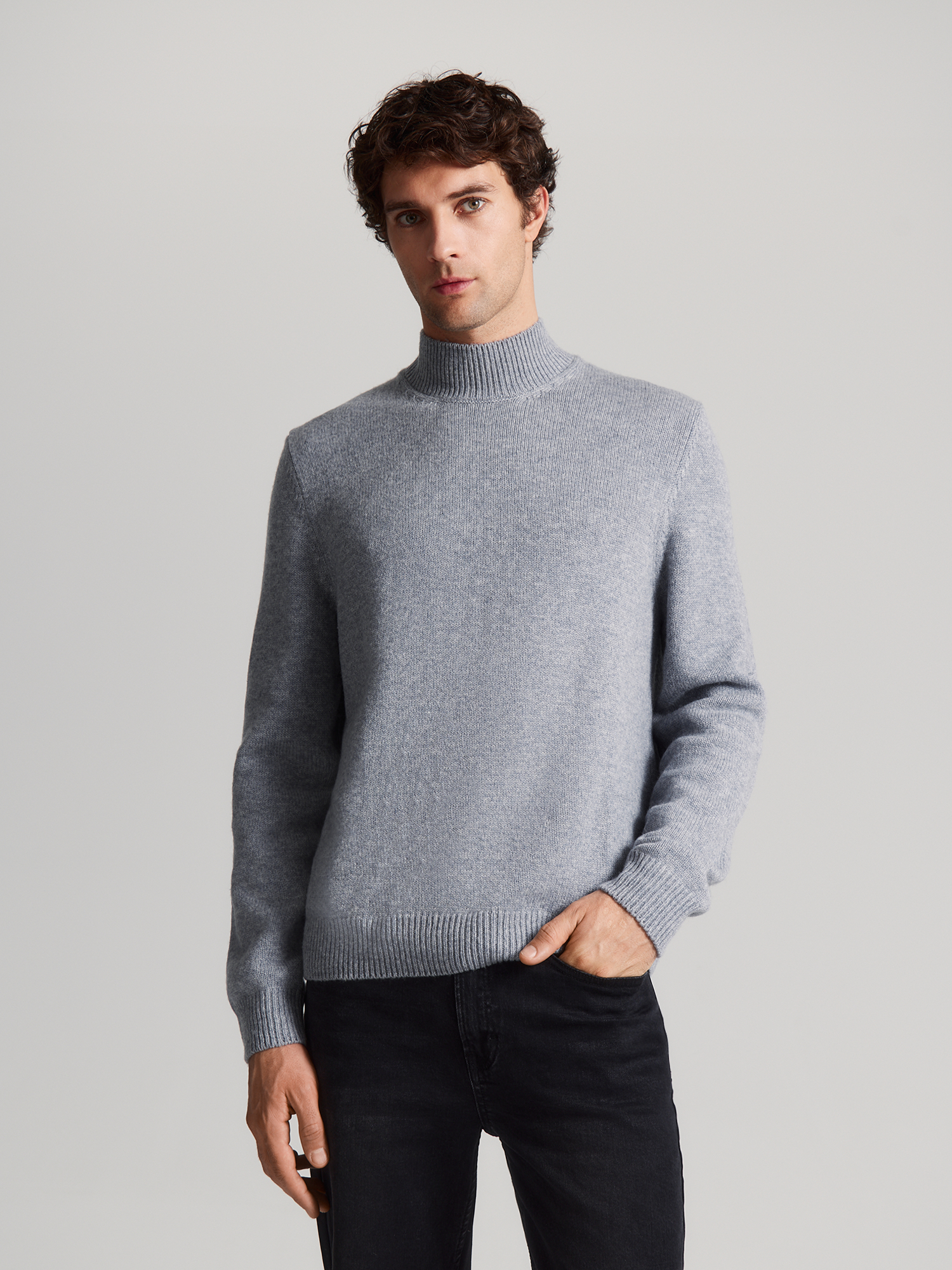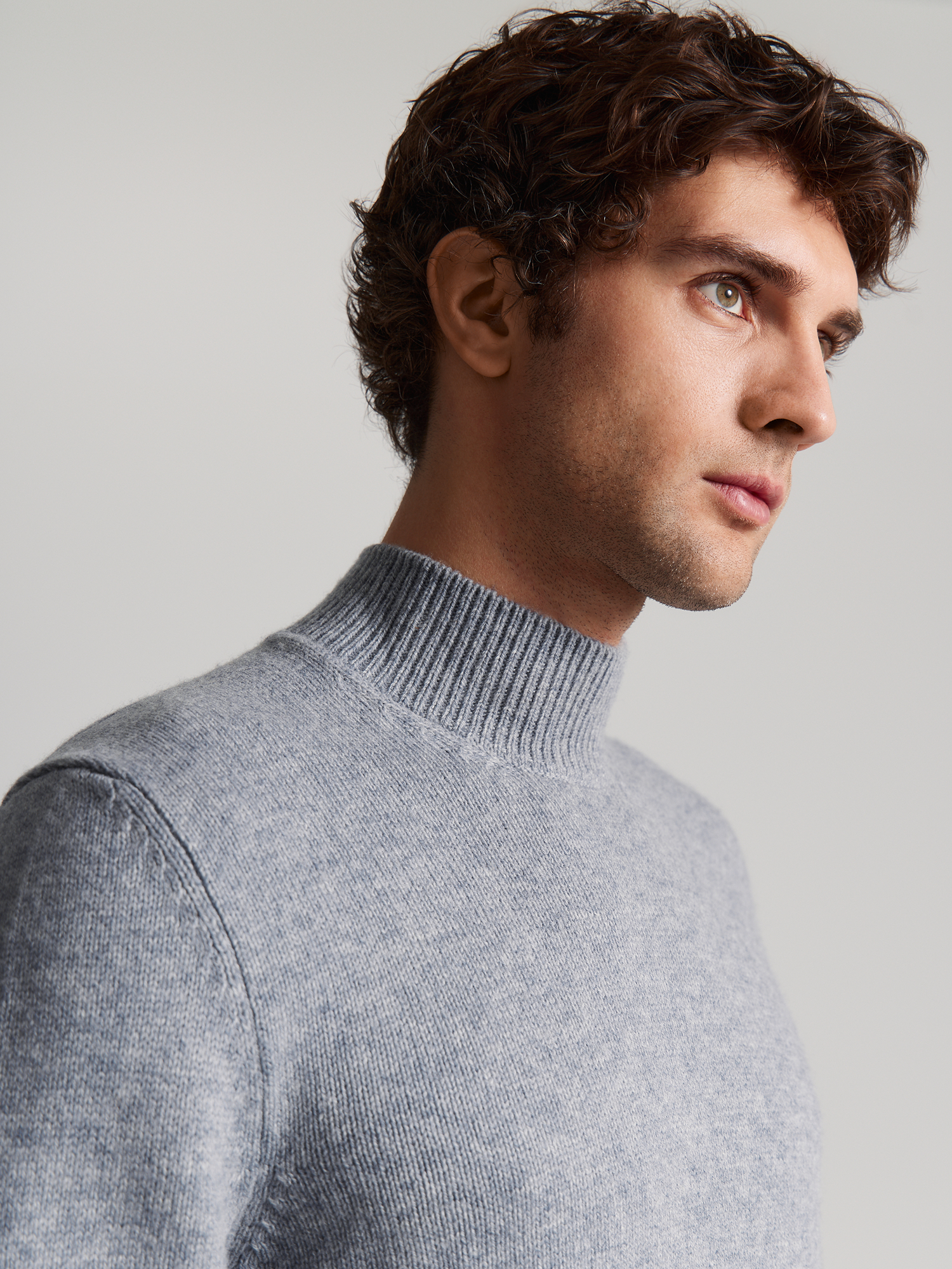Свитер среднего объема с воротником-стойкой и длинным рукавом. Джемпер с закрытым горлом связан гладью на японской плосковязальной машине Shima Seiki из теплой шерсти мериноса. Горловина, манжеты и низ изделия связаны резинкой. Вязаные изделия из шерсти мериноса обеспечивают комфортную температуру для тела, хорошо тянутся и не сковывают движения. Качественной пряже соответствует премиальная обработка - все соединительные швы выполнены на кеттельной машине - это дорогая обработка без потери эластичности. Теплый, однотонный, в базовом светло-сером, свитер подойдет для деловой встречи, офиса, школы, прогулки, встречи с друзьями.