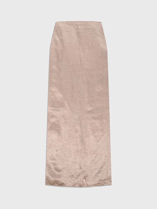 Юбка с эффектом крэш прекрасно подходит для создания как повседневных, так и вечерних образов. Длина миди делает юбку универсальной, позволяя легко сочетать ее с различными топами, блузами и обувью, от кроссовок до элегантных туфель. Изготовленная из 100% ацетата, юбка обладает всеми преимуществами этого материала. Ацетат — это ткань, которая напоминает натуральный шелк, создавая приятный атласный блеск и легкость. Сырьем для ацетата служит древесная целлюлоза, что делает его экологически чистым выбором. Ткань не только приятно ощущается на коже, но и хорошо дышит, обеспечивая комфорт в носке в любое время года. Эффект крэш придает юбке интересную текстуру, создавая динамичность и объем. Такая фактура не только визуально обогащает модель, но и делает ее более привлекательной при движении, добавляя переливы света. Ацетат хорошо драпируется, что позволяет юбке красиво ложиться по фигуре и подчеркивать женственность. Модель отличается отсутствием притачного пояса, что создает современный и минималистичный силуэт. Вместо традиционного пояса юбка имеет кант по поясу, который добавляет акцент и завершает образ, придавая ему стильный вид. Застежка на потайную молнию обеспечивает удобство и аккуратность, позволяя легко надевать и снимать изделие, что особенно важно для активных женщин. Таким образом, юбка с эффектом крэш — это не просто элемент гардероба, а универсальный предмет, который позволяет создавать множество образов. Она станет отличным дополнением как к повседневным, так и к вечерним нарядам, позволяя выглядеть стильно и уверенно в любой ситуации.