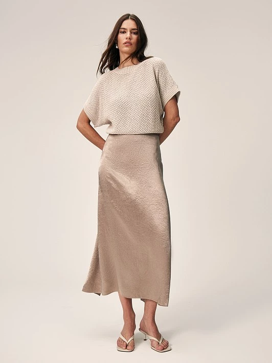Бренд: ElisЦвет: Бежево-серыйСостав: Ацетат - 100%Рост: 177Артикул: SK0523Параметры модели: 85 - 61 - 89Размер на модели: 44Коллекция: A LINE OF BEAUTY