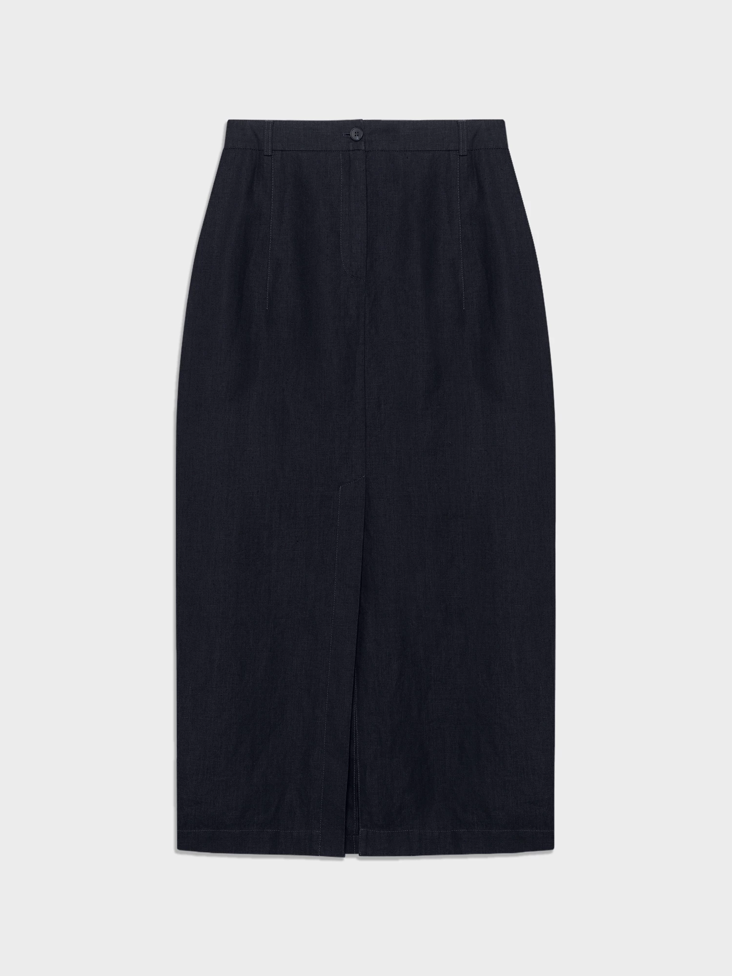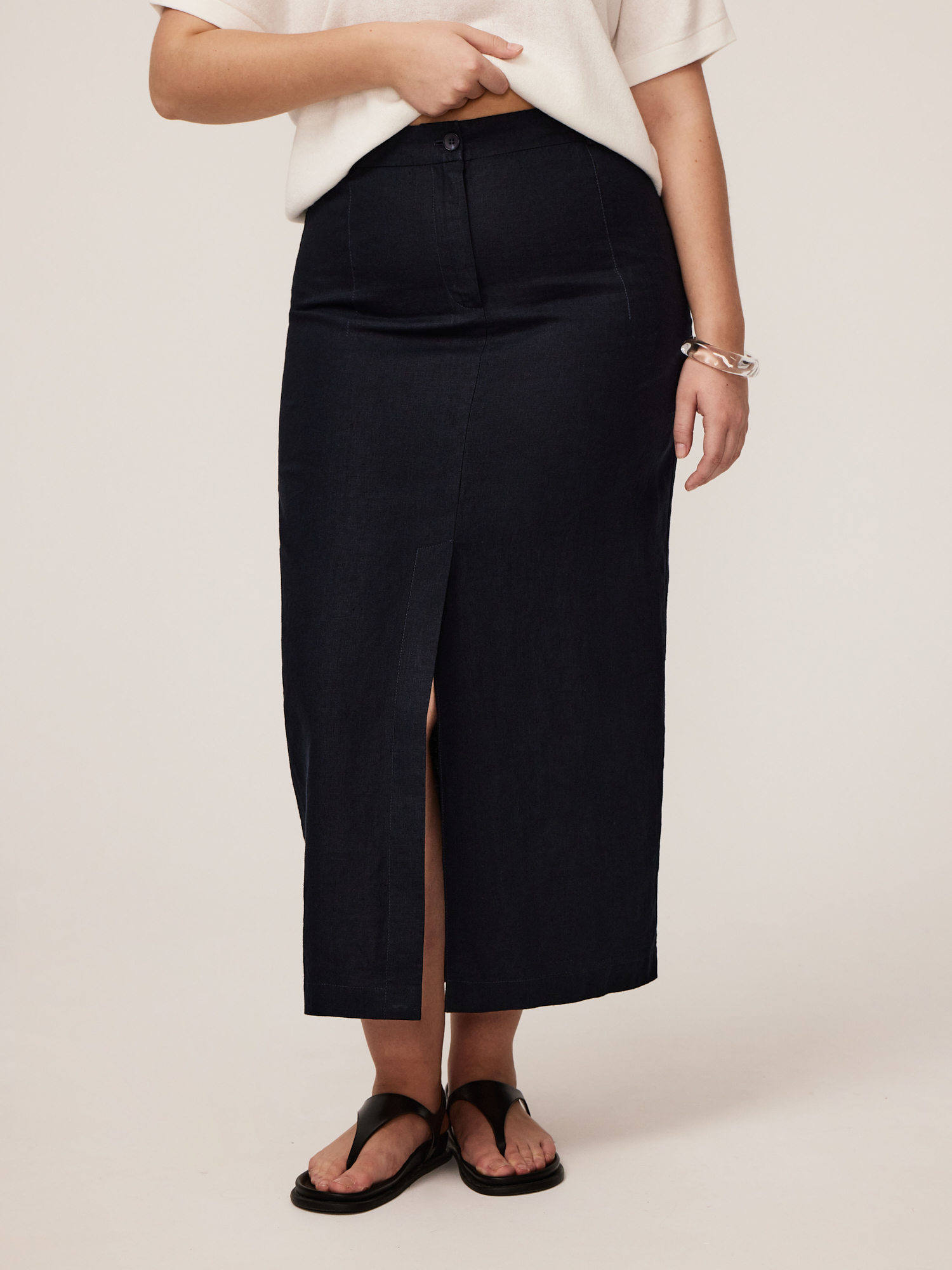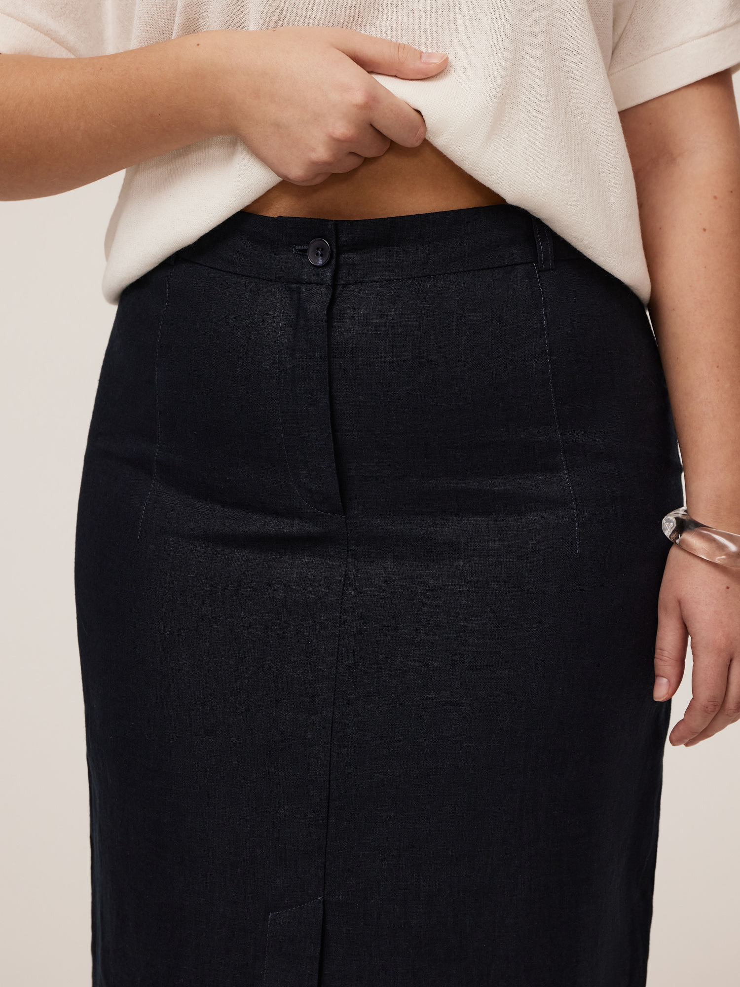 Юбка выполнена в лучших традициях кэжуальной эстетики. Прямой силуэт обеспечивает комфорт и свободу движений, подчеркивая естественные линии фигуры. Он подходит для каждого силуэта, демонстрируя аккуратный и сбалансированный крой. Притачной пояс со шлевками и резинкой по спинке мягко дисциплинирует и подчеркивает талию. Эффектная шлица спереди добавляет элемент дизайна и гарантирует уверенный шаг. Застежка-гульфик обеспечивает аккуратность и удобство при надевании, а также улучшает посадку в области живота. Модель выполнена из премиальной ткани, на 100% состоящей изо льна. Лен обеспечивает натуральность, экологичность, воздухопроницаемость и комфорт, что делает юбку приятной для носки в теплое время года. Терморегуляционные свойства такого натурального полотна поддерживают комфортную температуру тела, охлаждая или согревая в зависимости от условий. Выбранный для модели лаконичный и элегантный темно-синий цвет "вулкан" дает неограниченные возможности для создания образов самой разной стилистики.