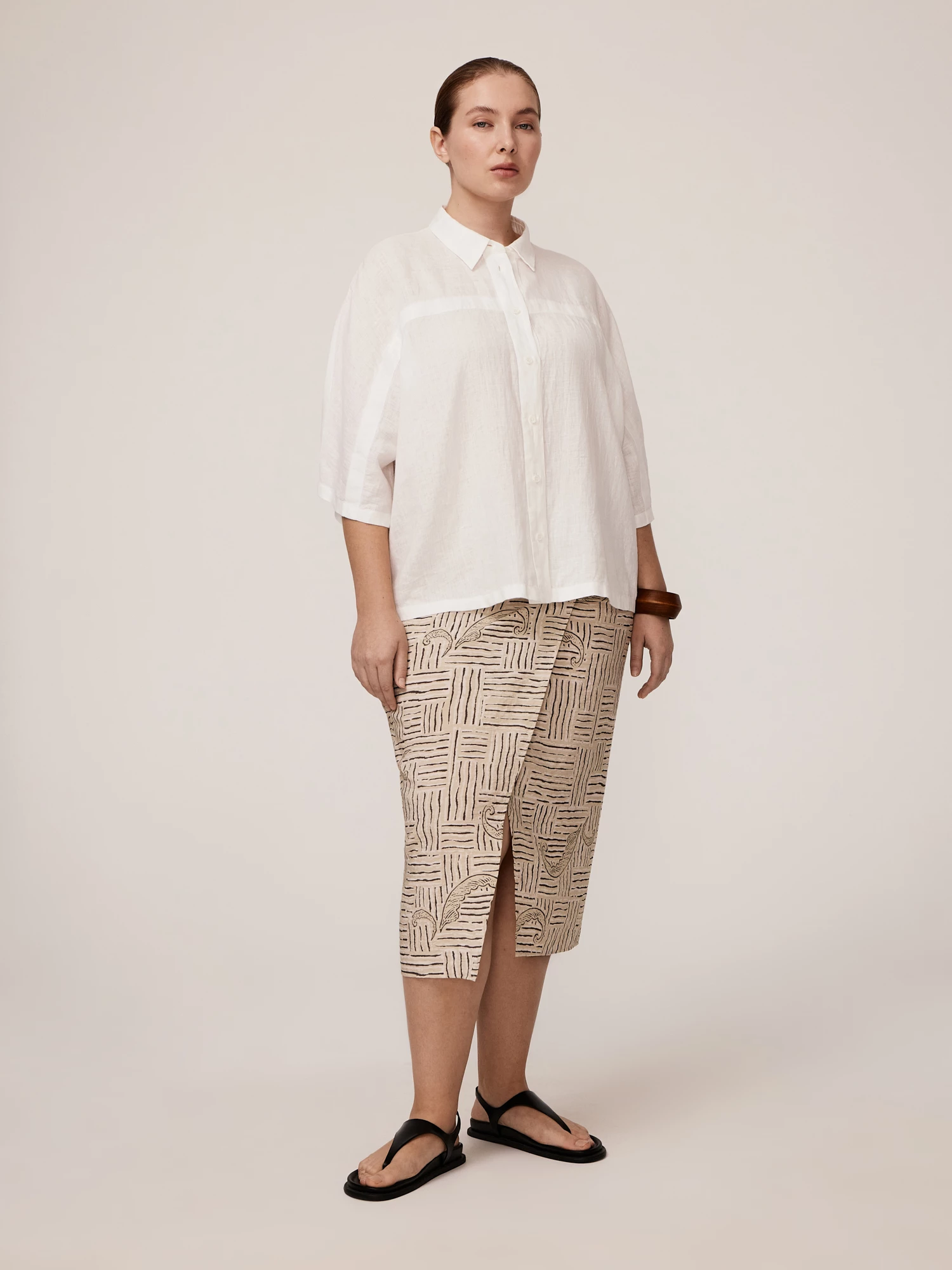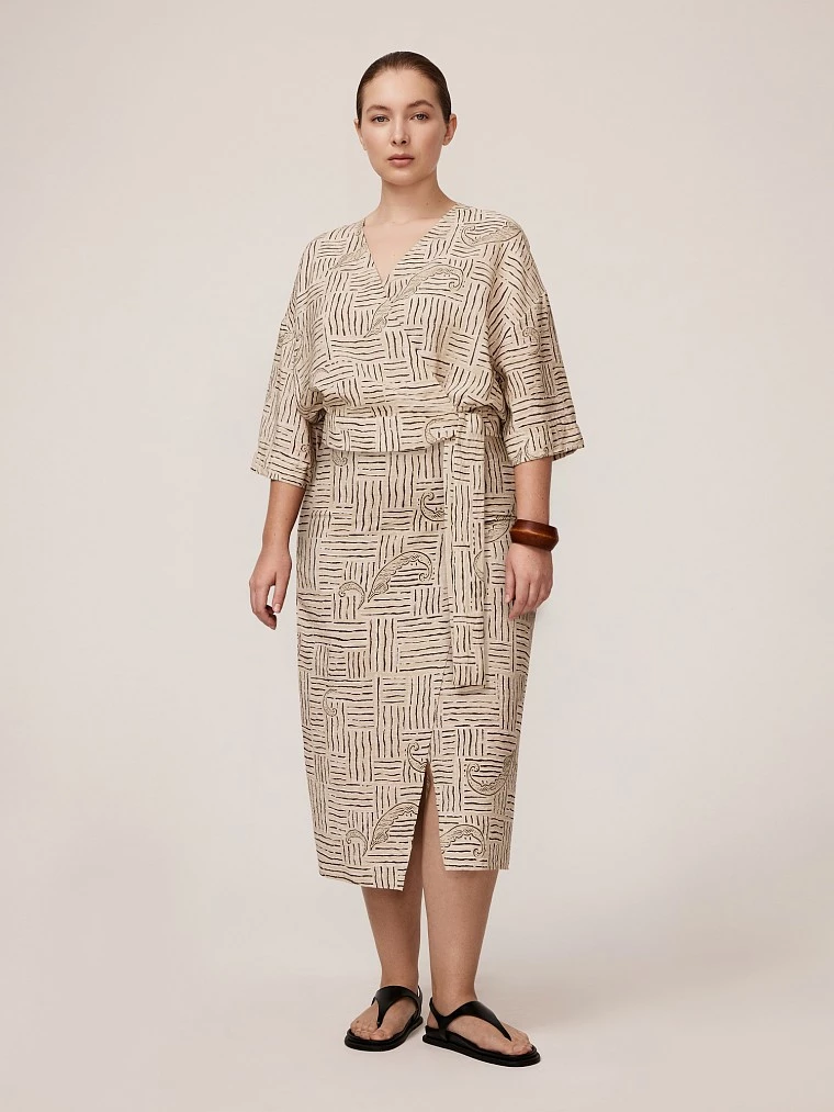 Бренд: LalisЦвет: БежевыйСостав: Вискоза - 84%, Полиамид - 16%Рост: 177Артикул: SK0543Параметры модели: 96 - 76 - 108Размер на модели: 50Коллекция: THE ENDLESS SEA